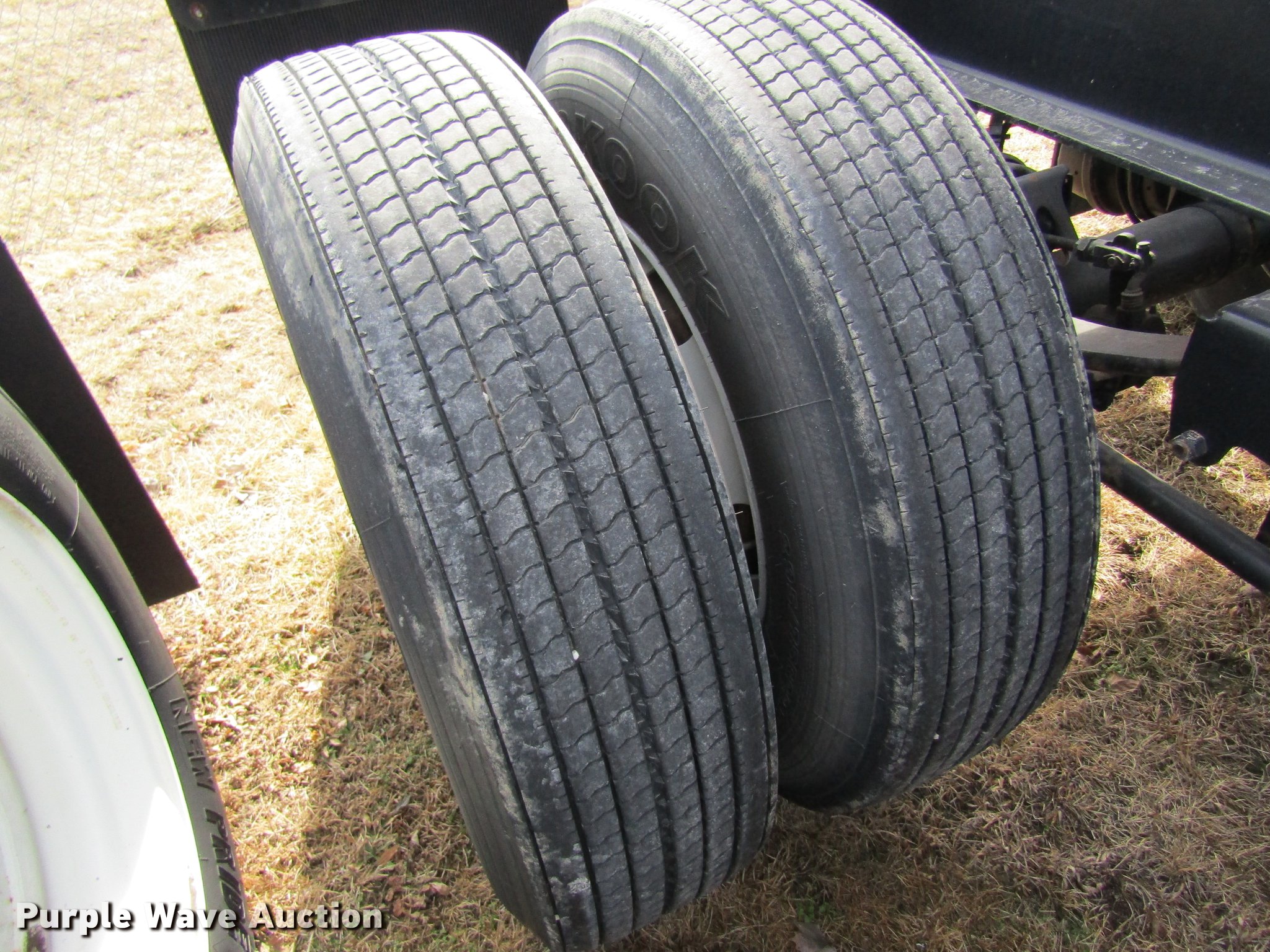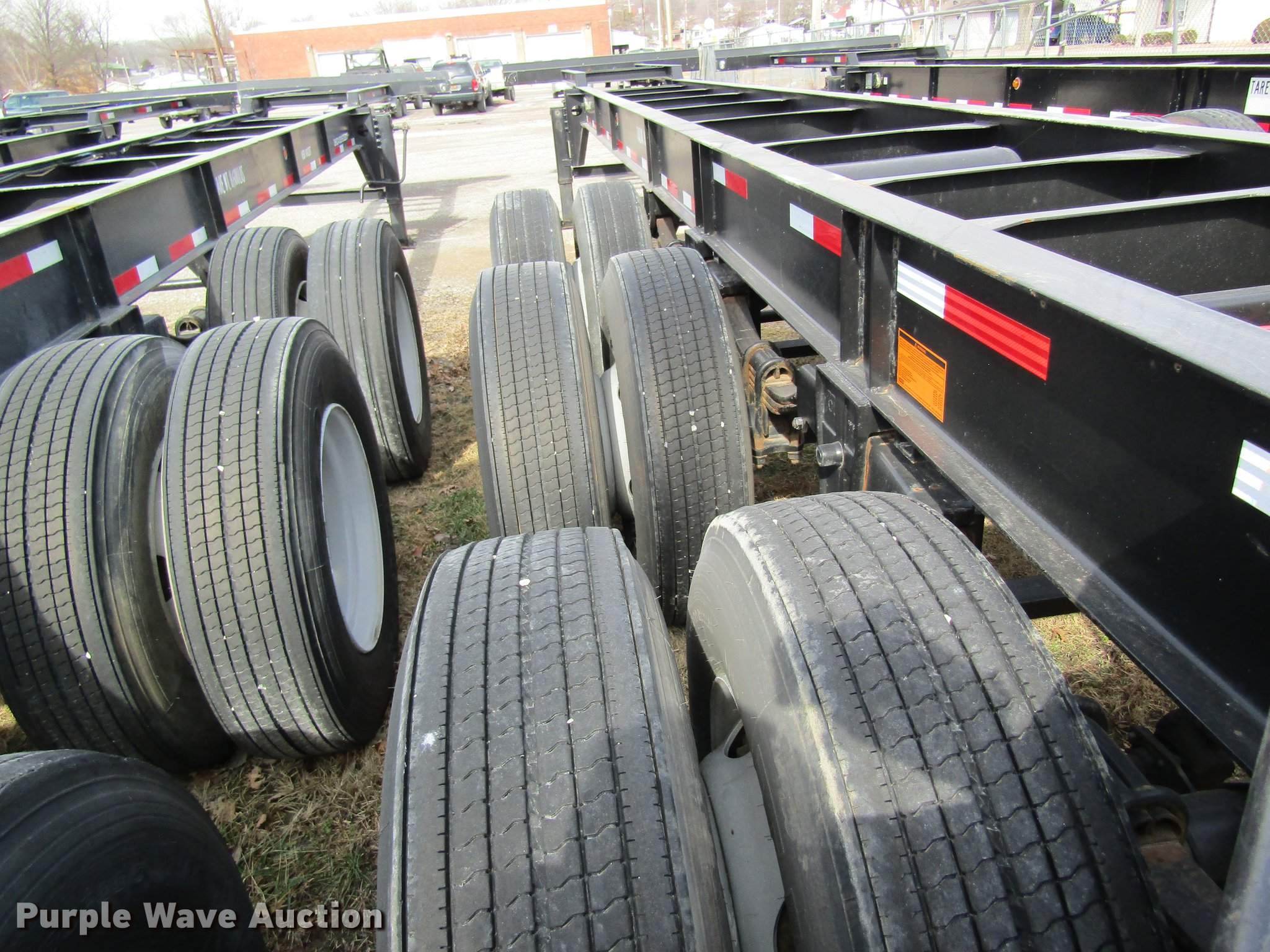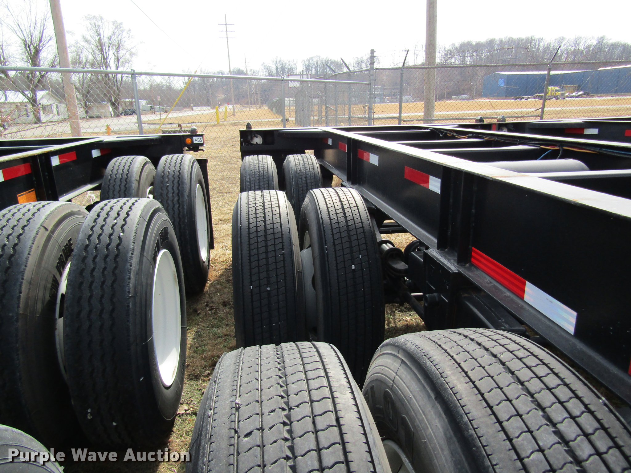 Purple Wave is selling a used Flat or Drop Deck Trailer in Missouri. This item is a 2010 Hyundai CGN403-516 trailer chassis with the following: 40'L x 8'W, Fifth wheel plate, Dual leg landing gear, Spring suspension, Air brakes, Triple axle, Steel wheels, 295/75R22.5 tires, GVWR 80,000 lbs