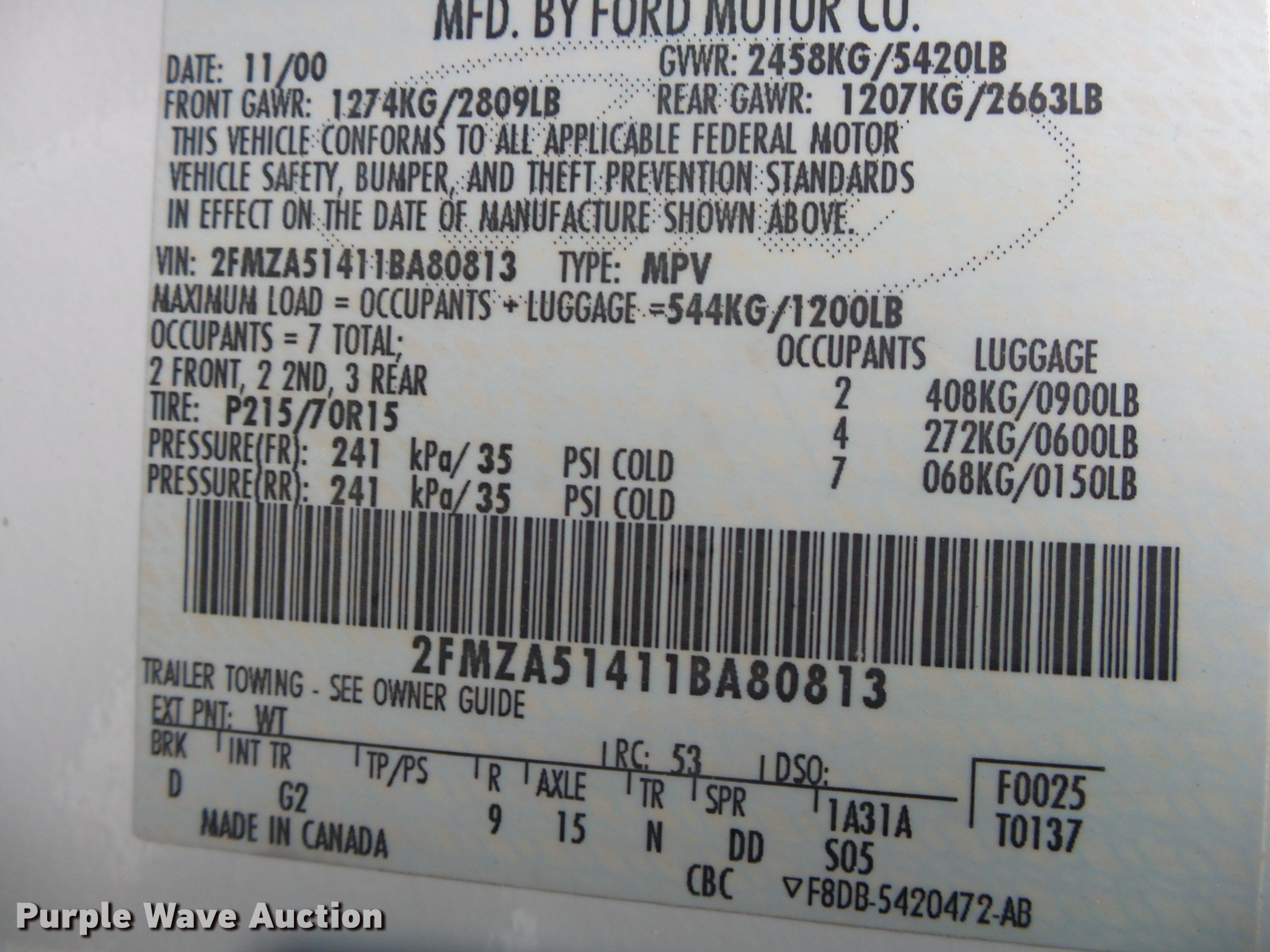Take a look at this used 2001 Ford Windstar LX van being sold on March 20th, 2018 in the SOLD! March 20 Government Auction made by Ford. Take a look at all of the item information below or take a look at similar auctions for Passenger Vehicles.