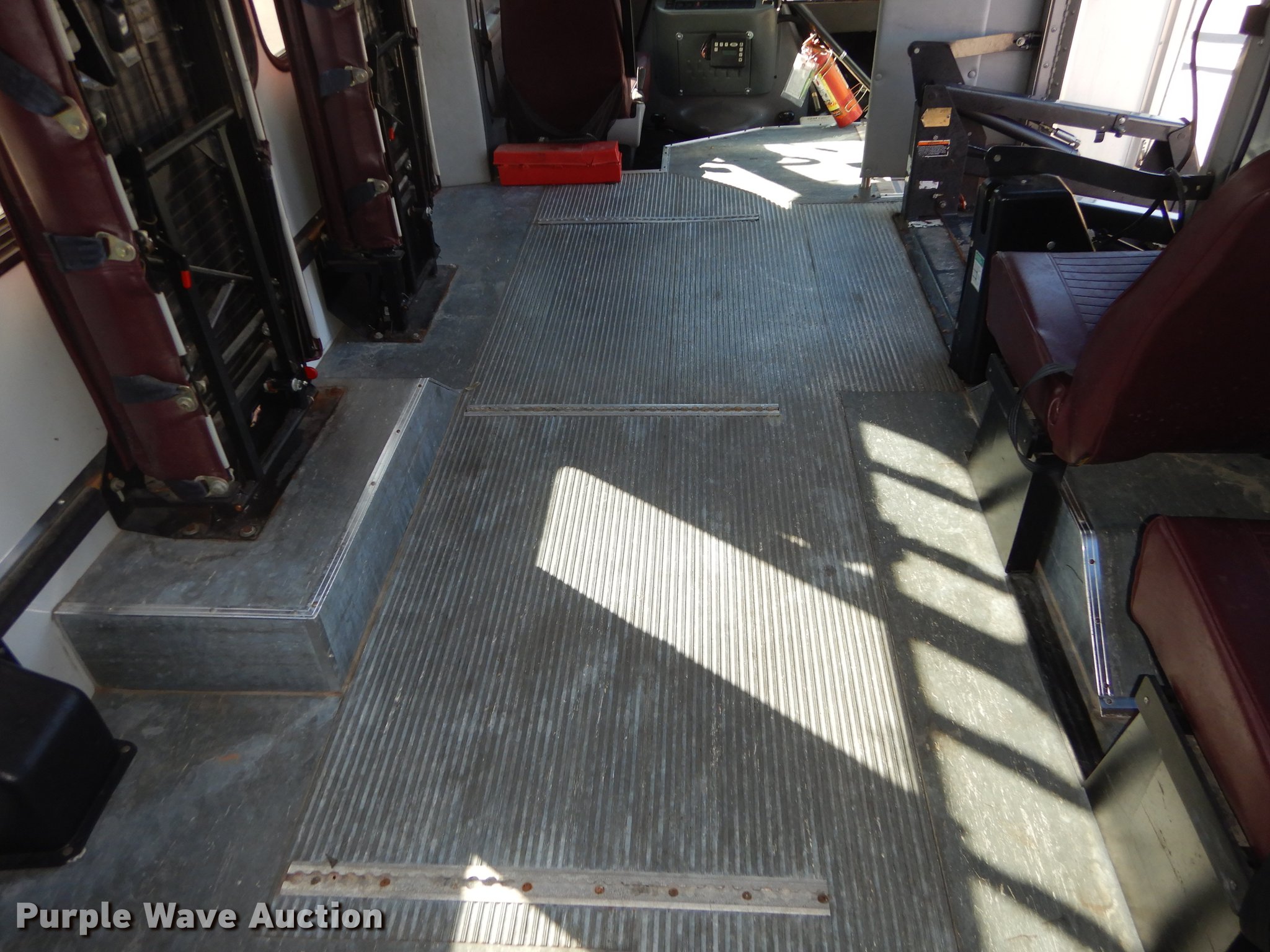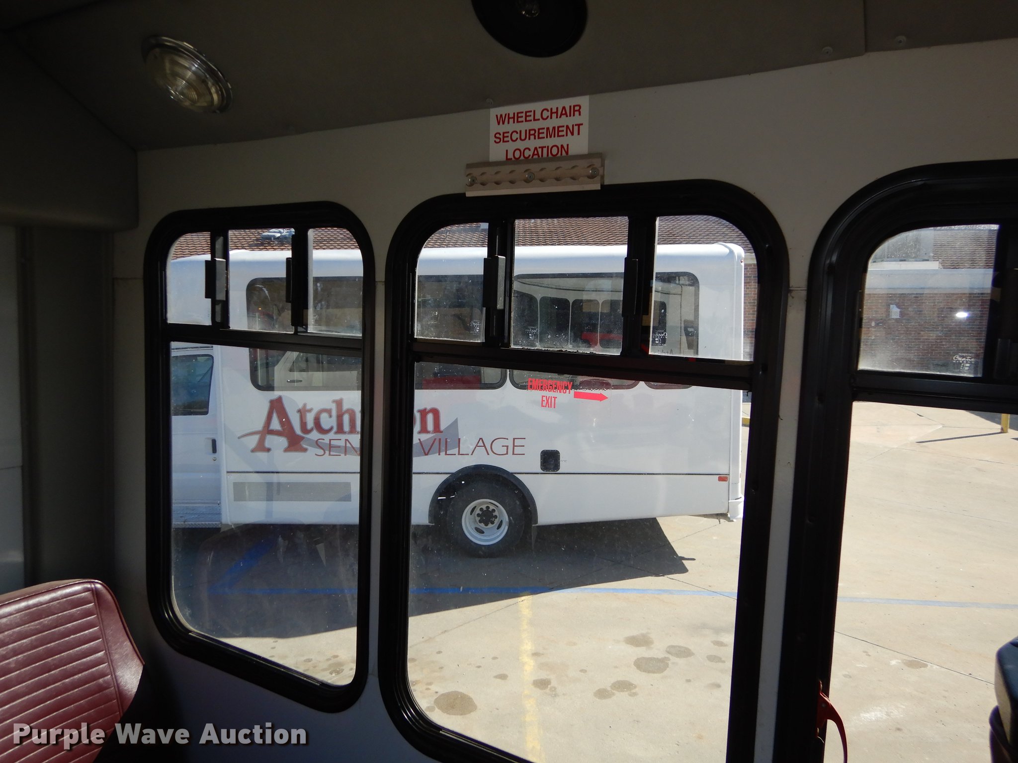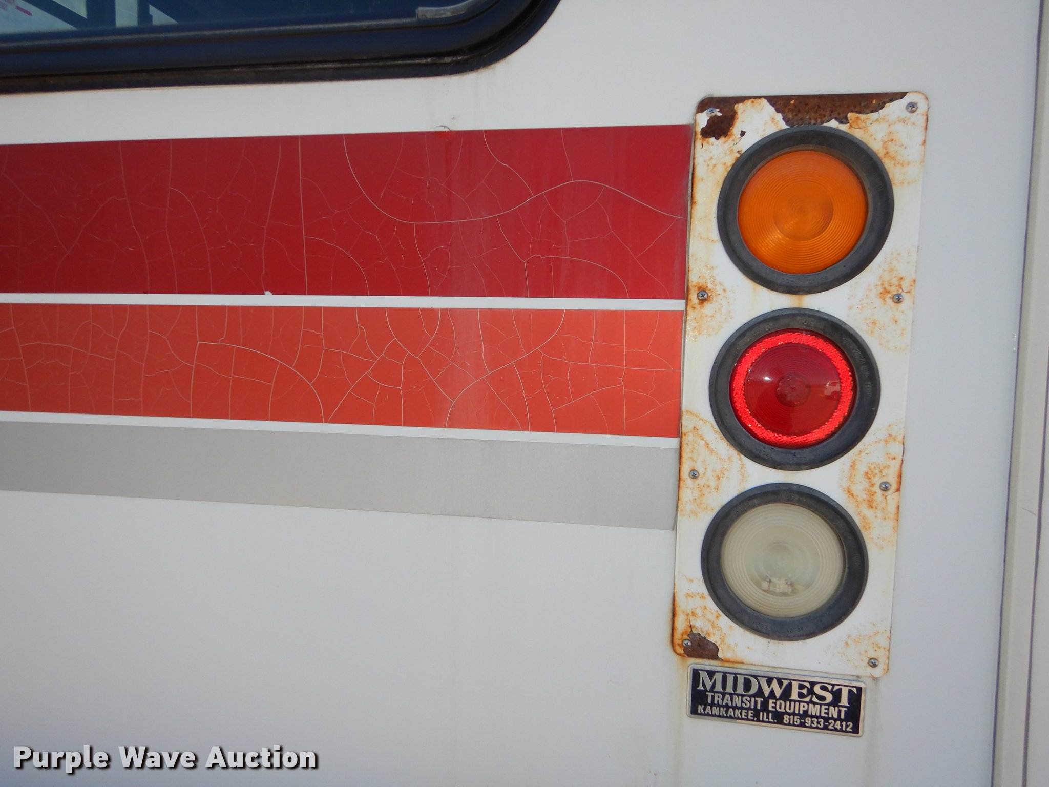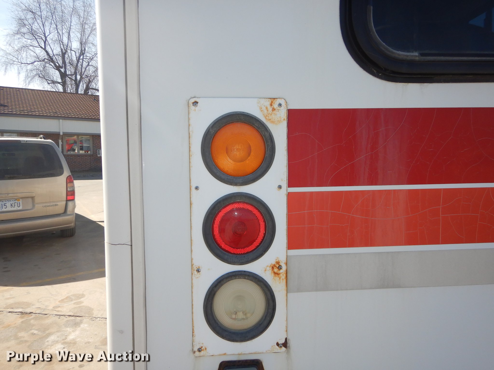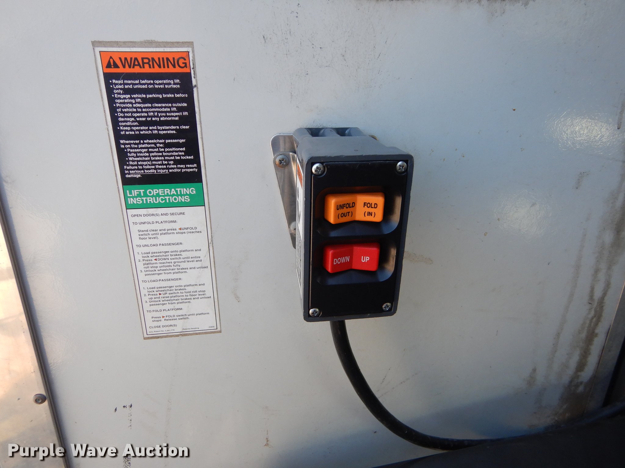 Purple Wave is selling a used Bus in Kansas. This item is a 2000 Ford Econoline E350 Super Duty Goshen Coach shuttle bus with the following: 96,942 miles on odometer, 7.3L V8 OHV 16V turbo diesel engine, Automatic transmission, Single axle, AC and heat, AM/FM/CD, Rear AC, Vinyl interior, Nine passenger capacity, Seat belts, Braun L915 wheelchair lift, Serial A107022214C8, (2) wheelchair tie down areas, Rear and side emergency exits, Carrier roof AC units, Receiver hitch, Spring suspension, Hydraulic brakes, 144" wheelbase, 225/75R16 tires, GVWR 10,700 lbs, Drivers seat torn, Decals will be removed prior to auction