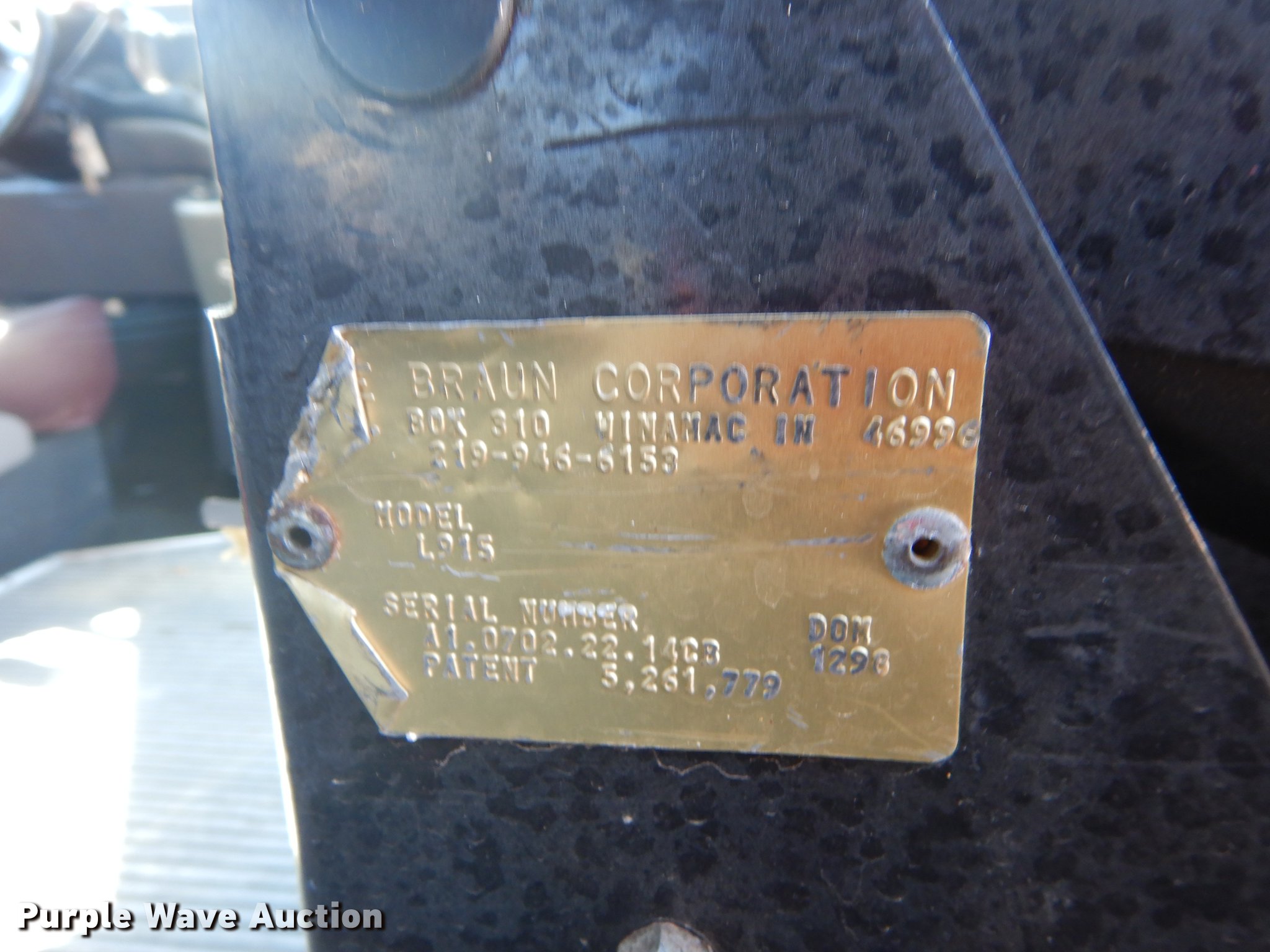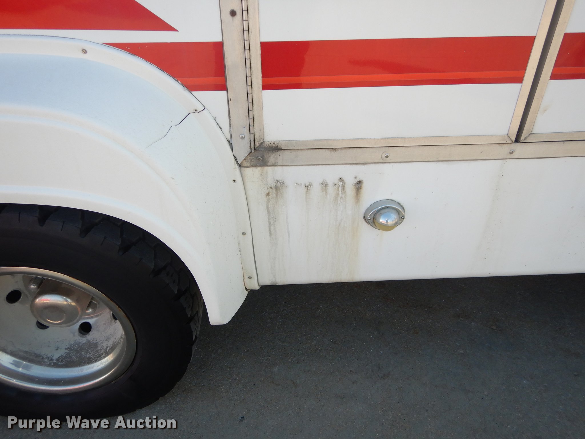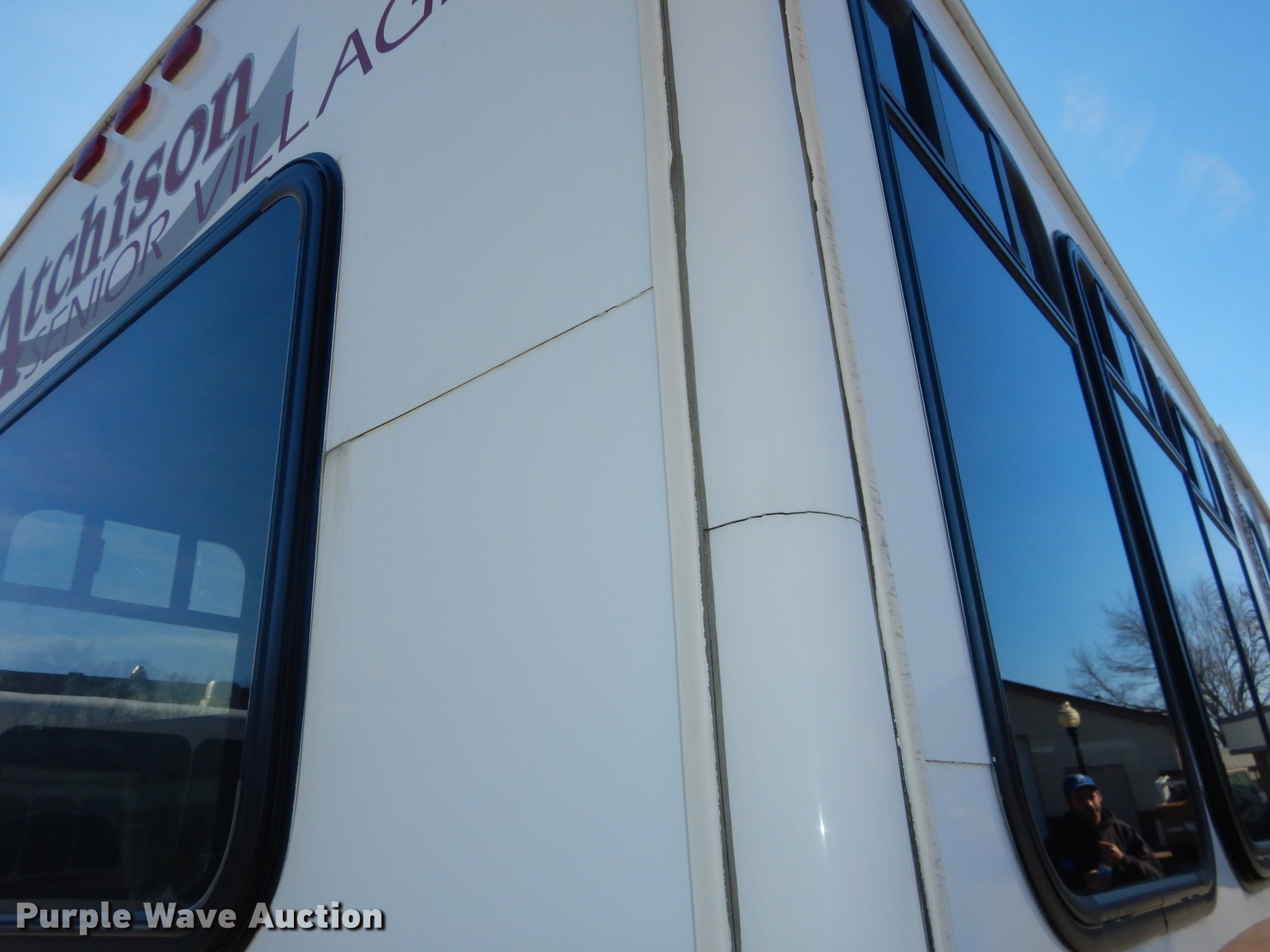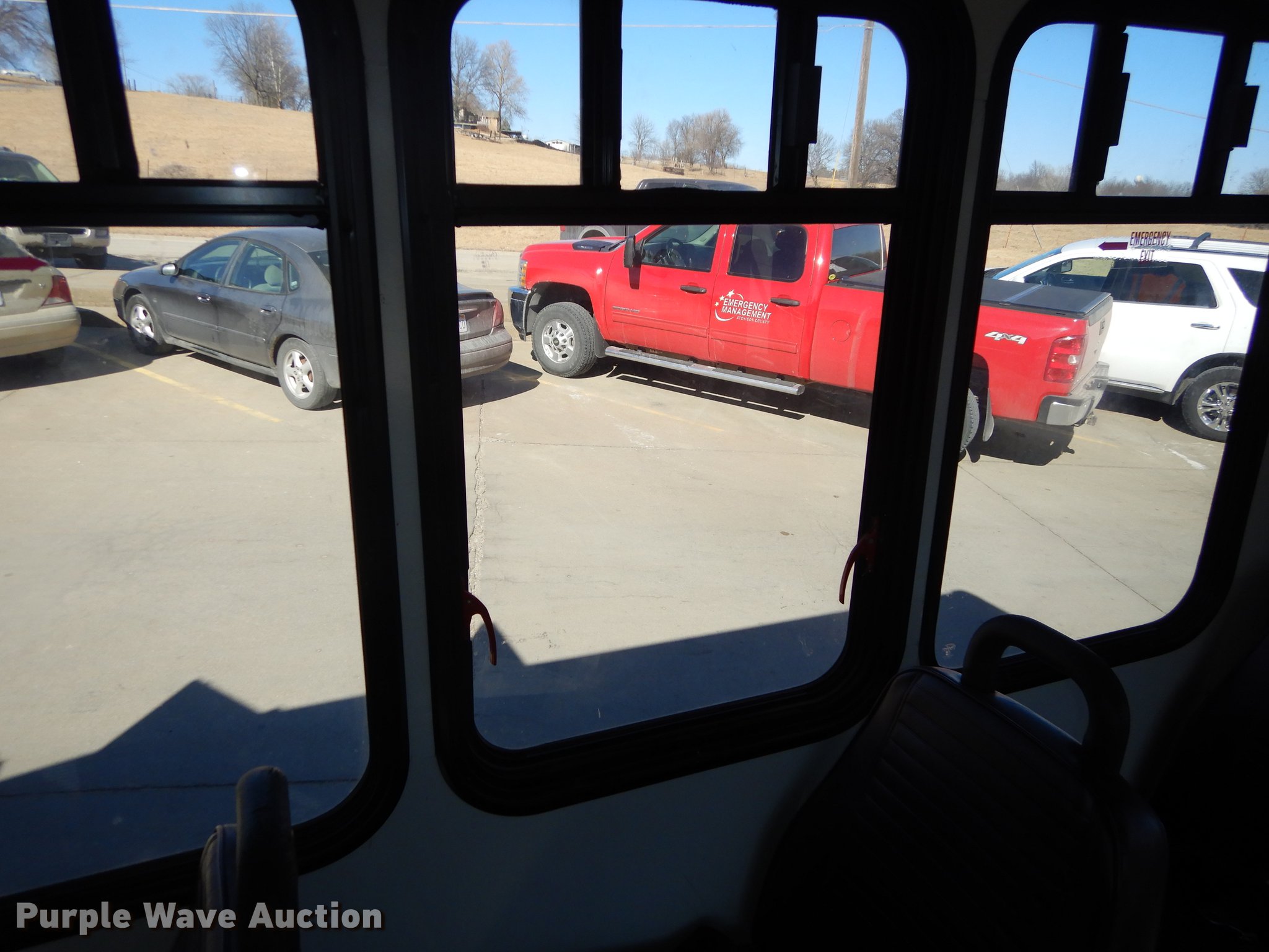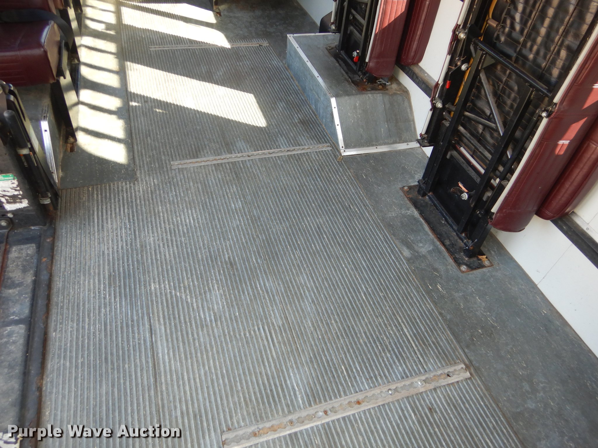 Purple Wave is selling a used Bus in Kansas. This item is a 2000 Ford Econoline E350 Super Duty Goshen Coach shuttle bus with the following: 96,942 miles on odometer, 7.3L V8 OHV 16V turbo diesel engine, Automatic transmission, Single axle, AC and heat, AM/FM/CD, Rear AC, Vinyl interior, Nine passenger capacity, Seat belts, Braun L915 wheelchair lift, Serial A107022214C8, (2) wheelchair tie down areas, Rear and side emergency exits, Carrier roof AC units, Receiver hitch, Spring suspension, Hydraulic brakes, 144" wheelbase, 225/75R16 tires, GVWR 10,700 lbs, Drivers seat torn, Decals will be removed prior to auction