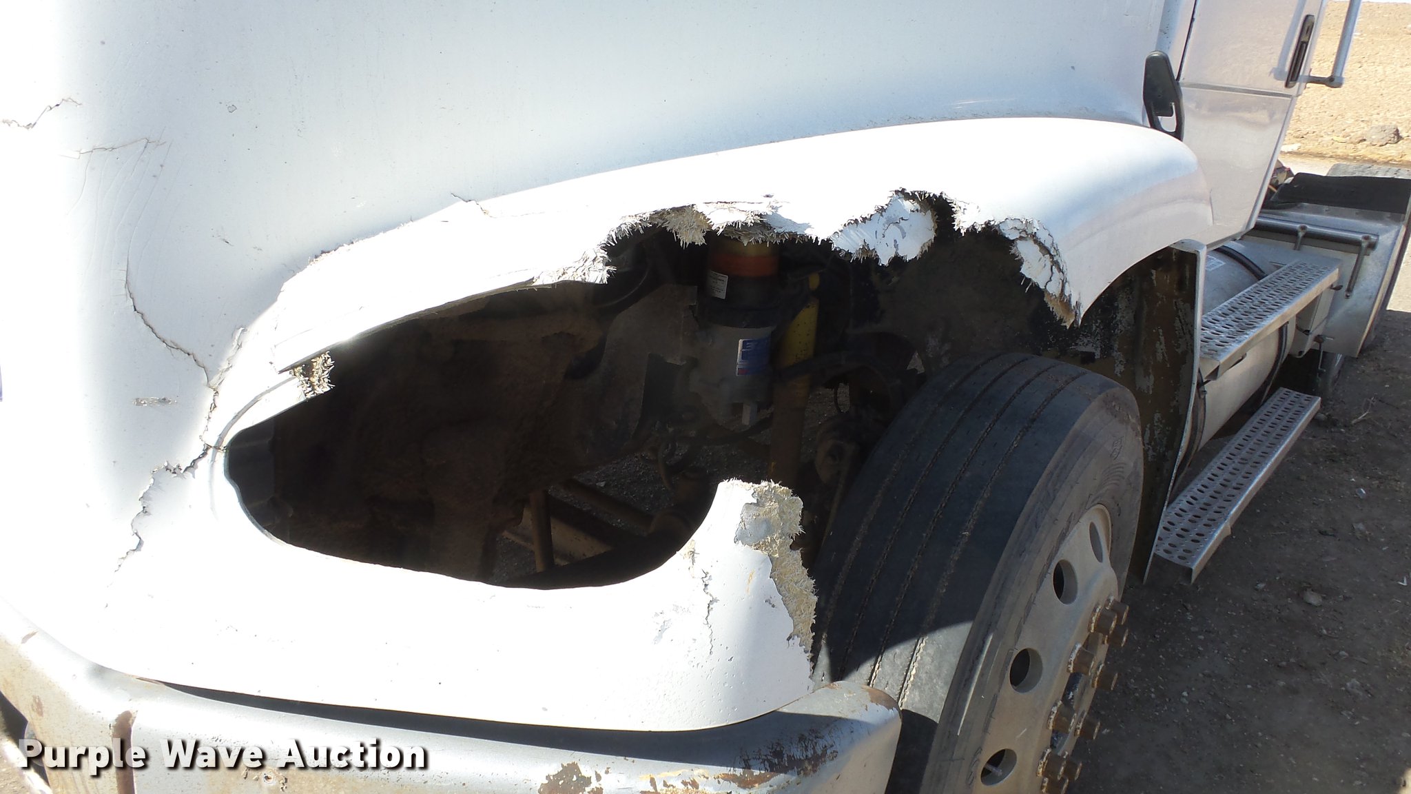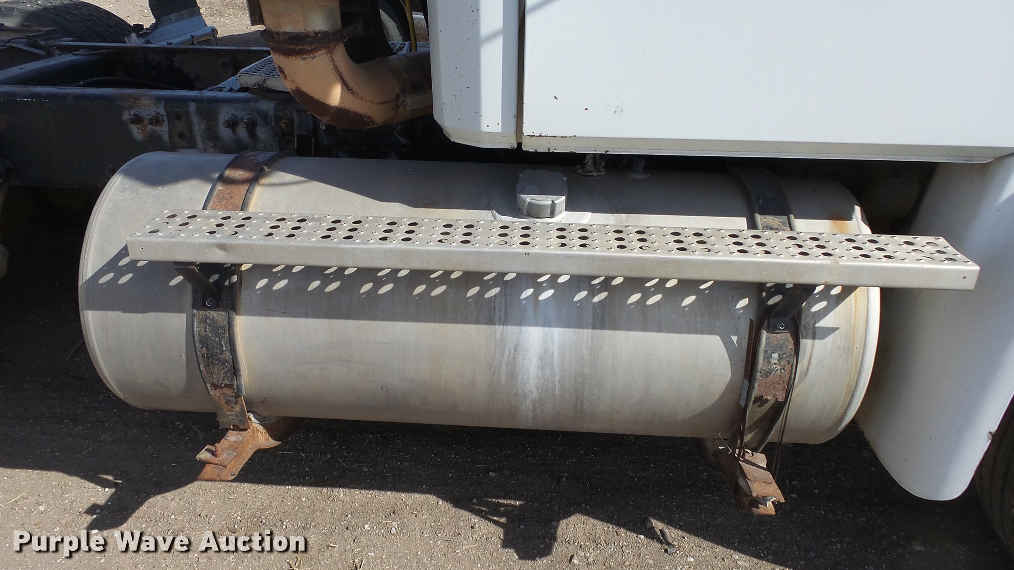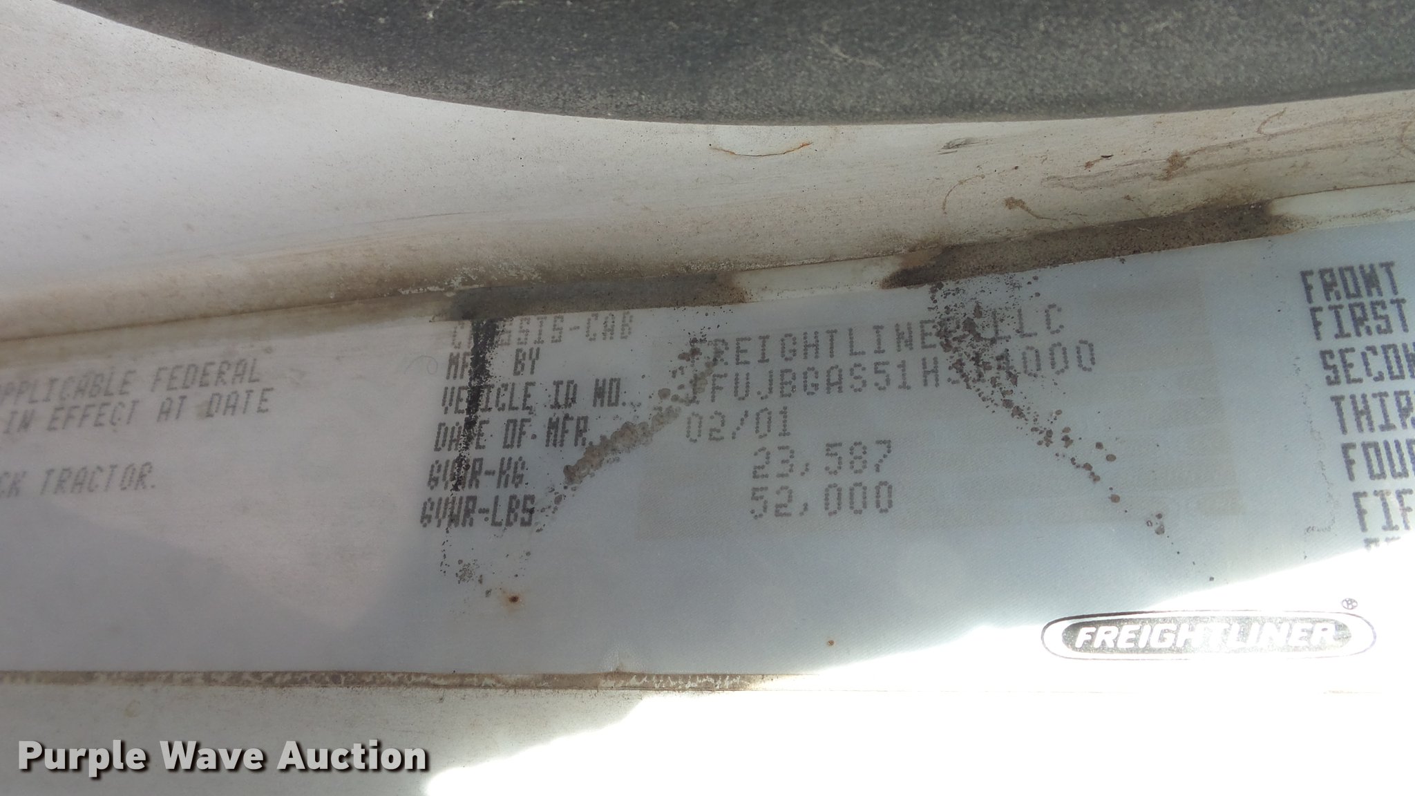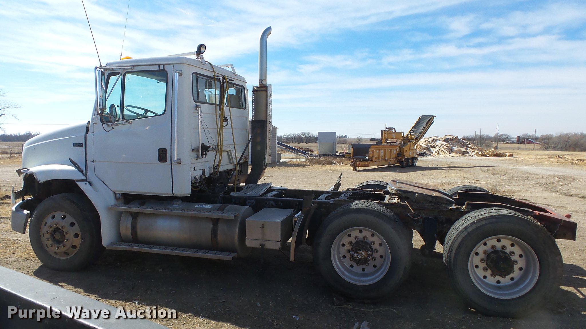 Purple Wave is selling a used Truck Tractor in Kansas. This item is a 2001 Freightliner FL-1 semi truck with the following: Approximately 500,000 miles on vehicle, Caterpillar C12 diesel engine, 410 HP, Eaton Fuller manual transmission, AC and heat, Front tow hooks, Dual fuel tanks, Single exhaust stack, Air operated fifth wheel plate, Pintle hitch, Air suspension, Air brakes, 3.58 gear ratio, 295/75R22.5 front tires, 445/50R22.5 rear tires, GVWR 52,000 lbs, FAWR 12,000 lbs, IAWR 20,000 lbs, RAWR 20,000 lbs, Non-operational vehicle, Engine issues, Hood cracked, Dead battery