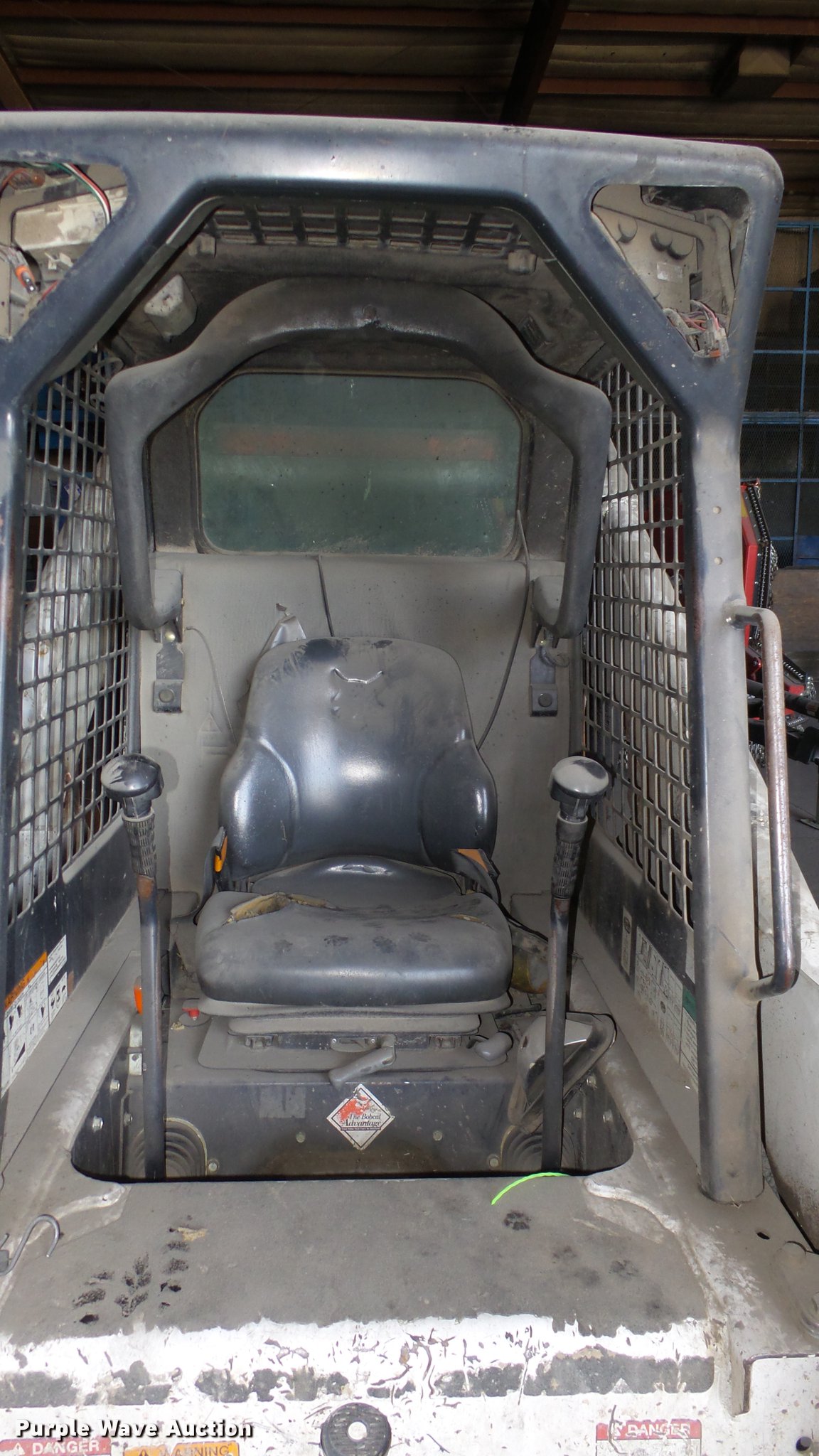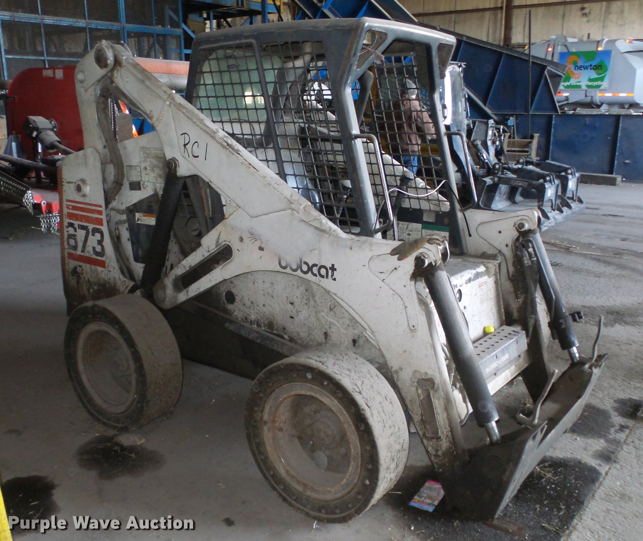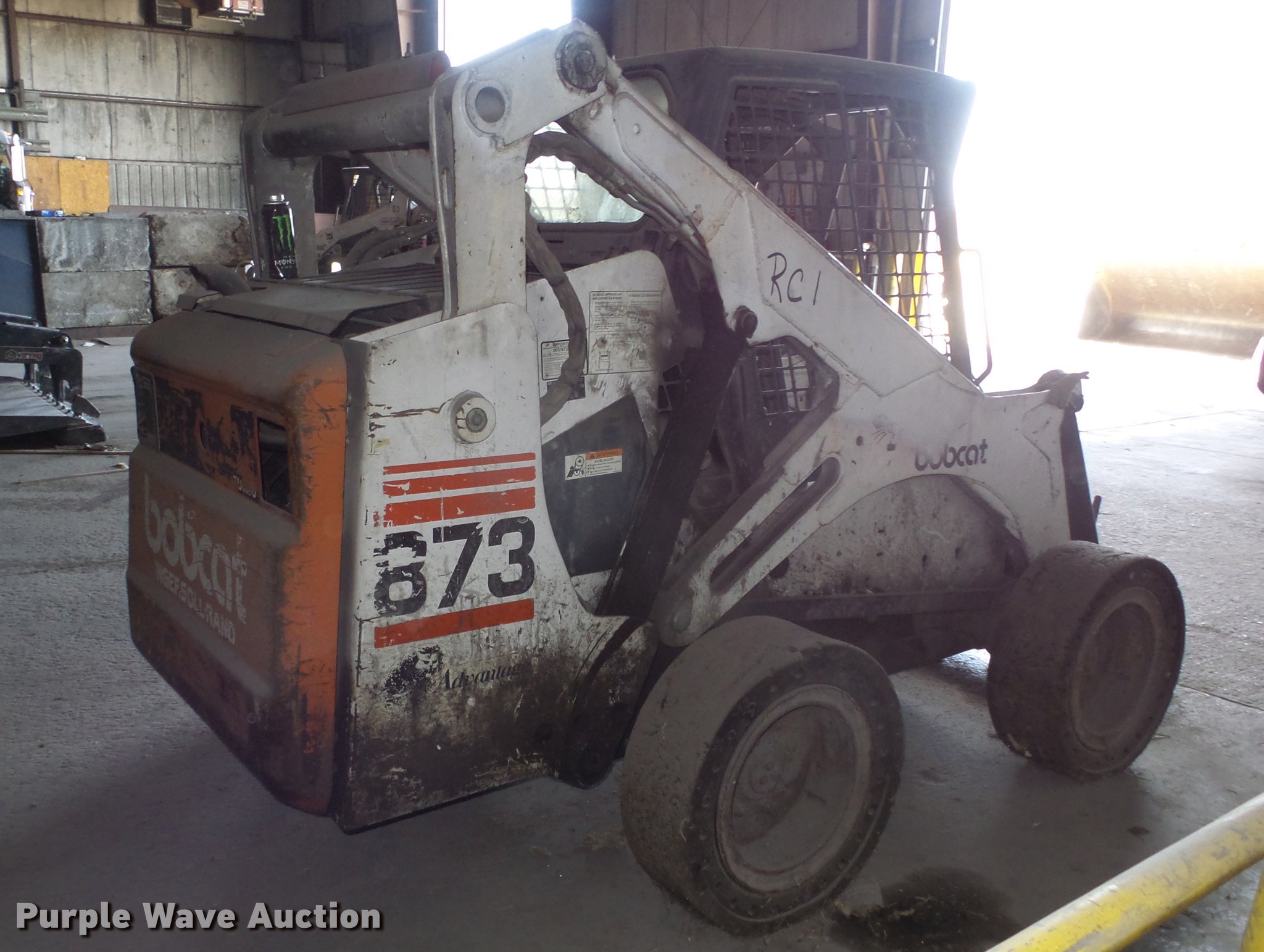 Purple Wave is selling a used Skid Steer Loader in Kansas. This item is a Bobcat 873 skid steer with the following: Approximately 6,000 hours, Four cylinder diesel engine, Hydrostatic transmission, Open station/canopy, Hand and foot controls, Manual quick coupler, High flow auxiliary hydraulics, 7.50-16 tires, Non-operational unit, Battery dead, Front work lights missing, Serial 514140014