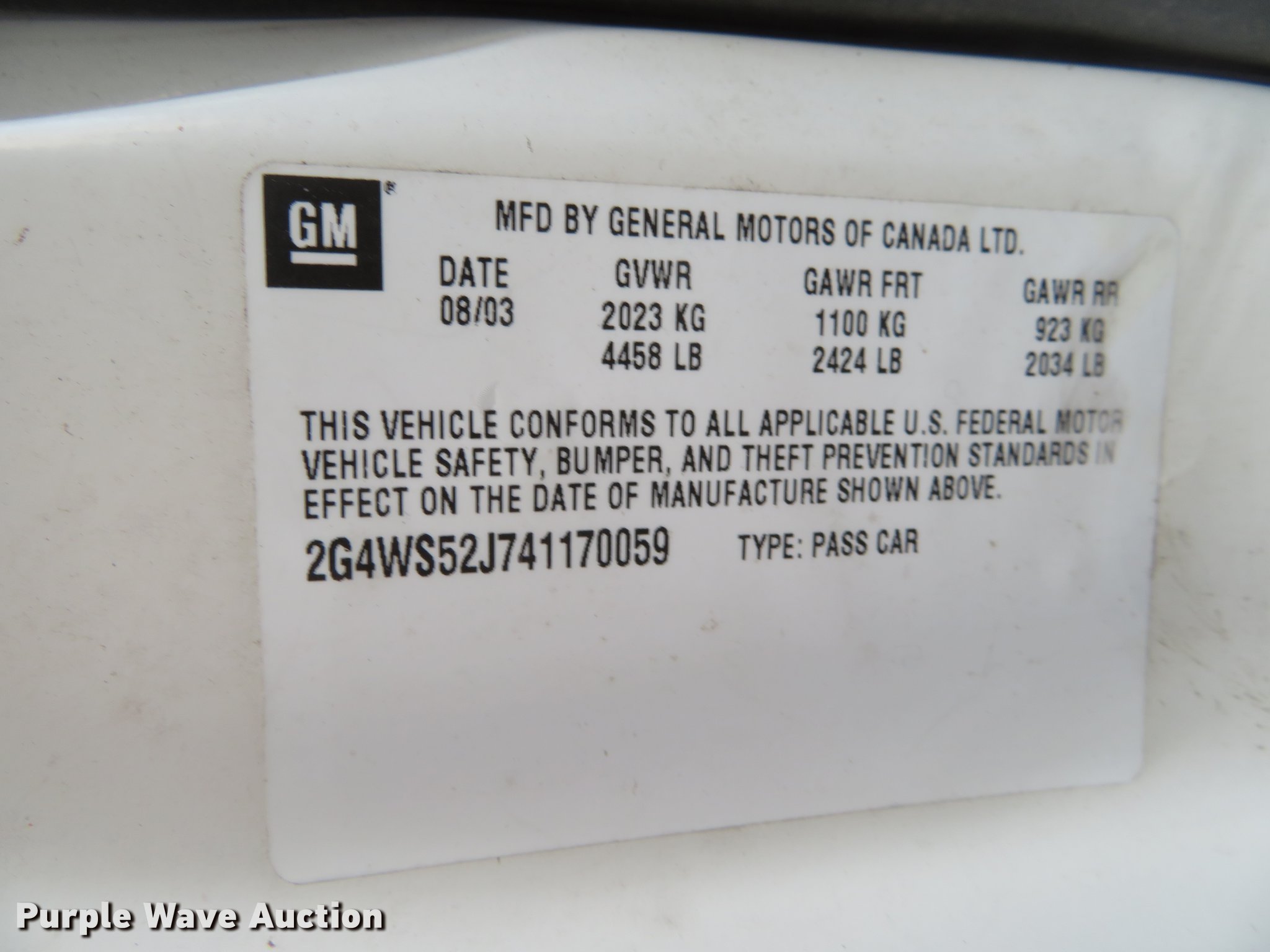 Purple Wave is selling a used Passenger Vehicle in Kansas. This item is a 2004 Buick Century with the following: 89,486 miles on odometer, 3.1L V6 OHV 12V gas engine, Automatic transmission, AC and heat, Tilt, Cruise, AM/FM/CD, Power windows and locks, Cloth interior, 205/70R15 tires, Decals will be removed prior to auction