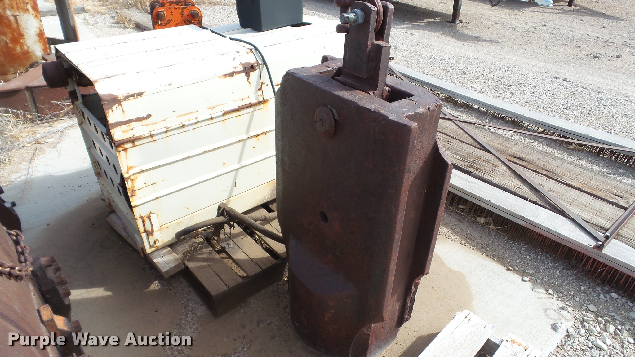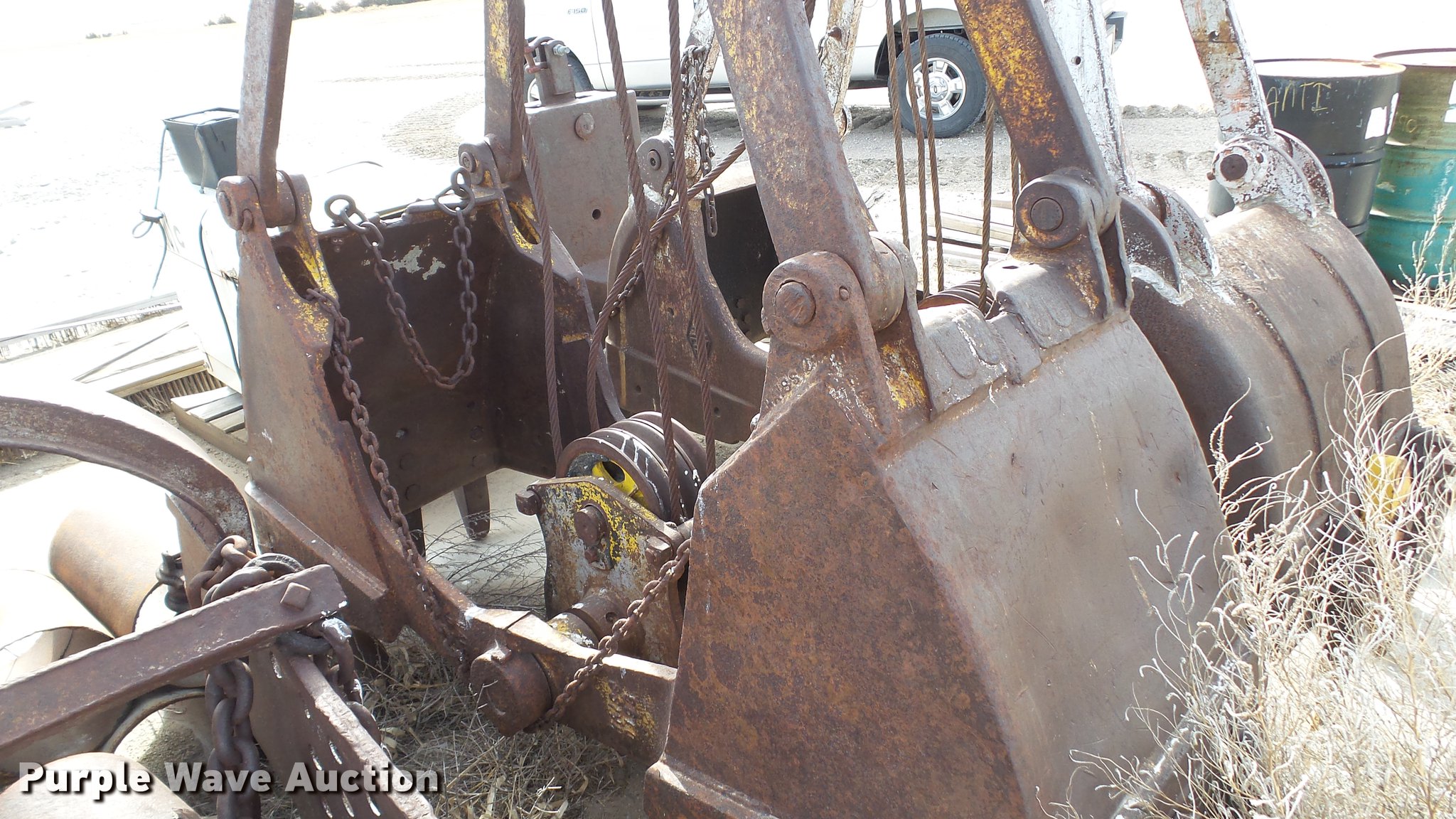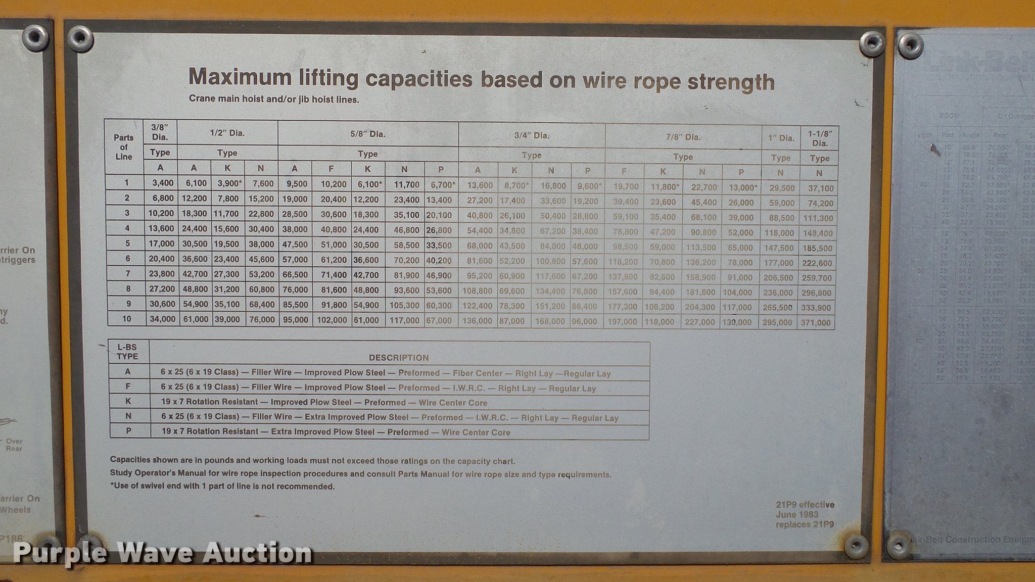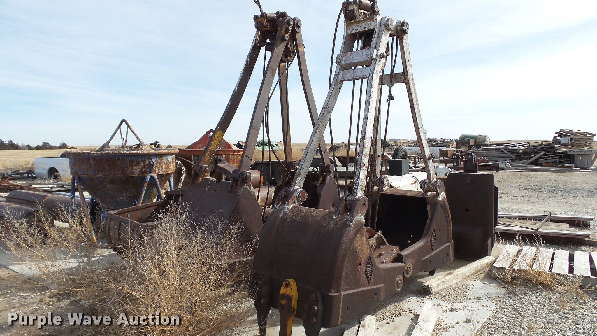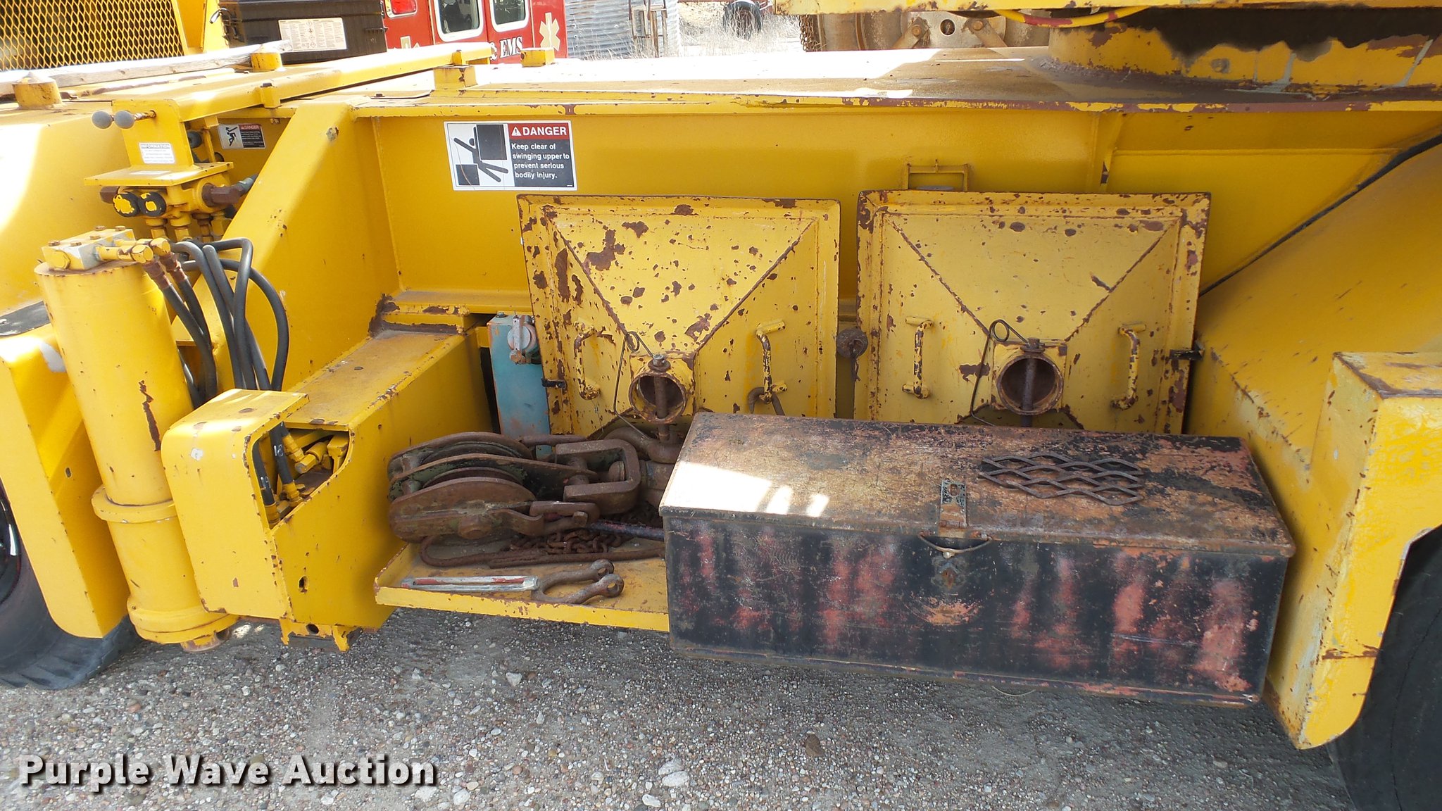 Purple Wave is selling a used Truck Crane in Kansas. This item is a 1991 Link Belt HC-78B crane with the following: 2,765 miles on odometer, Eight cylinder turbo diesel lower engine, Model 40877300, Serial 0860238714, Caterpillar 3304B four cylinder diesel upper engine, Serial 10E03597, Nine speed manual transmission, Tandem axle, Five stick crane controls, In-cab boom controls, Suspension seat, Work lights, Lattice boom, Approx. 61' boom length, Three boom sections, 35 ton max lift capacity, Removable counterweights, (2) winches, Two sheave crane block, (2) MCO 38"W buckets, 34"W drag bucket, (2) concrete buckets, (2) 16" diameter drivers, (2) 10'L crane boom extensions, (4) stabilizers, (2) pallets of assorted parts, Walking beam suspension, Air brakes, 12.00-20 tires, Cracked window, Dead batteries, Unit has not been used in approx. six years, Unknown operating condition, Serial 8HI1-480, Unit# 156
