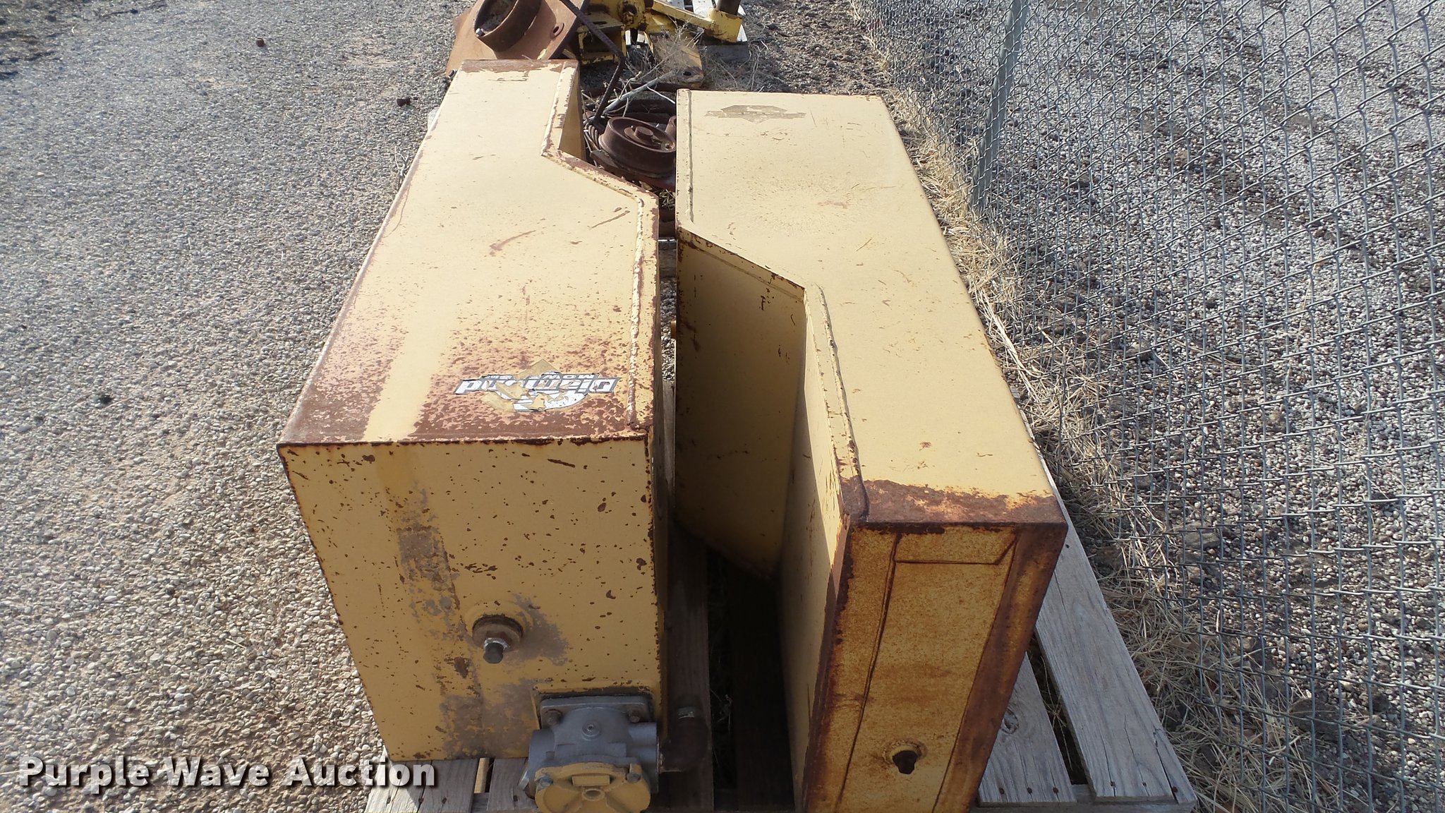 Diamond Mowers side and rear rotary mowers. Side rotary mower 6'W, Drive motor missing, Rear rotary mower 5'W, Three point, Hydraulic drive motor missing, Hydraulic oil tank, Hoses, Mount, Wiring, Removed from John Deere 6000 series tractor. Kiowa County. 1002 S Grove St. Greensburg, KS 67054