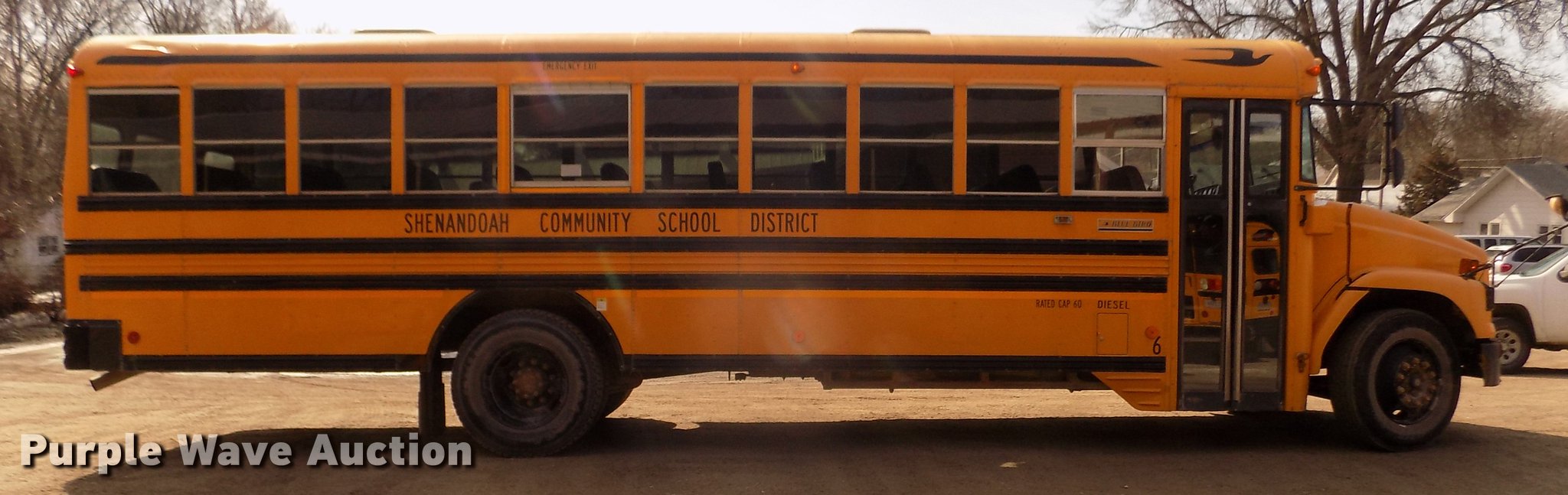 1999 Freightliner FS65 Blue Bird school bus. 42,620 miles on odometer, 4,114 hours on meter Miles and hours may vary, still in use, Caterpillar 3126 7.2L L6 turbo diesel engine Serial 7AS32946, Automatic transmission, Single axle, Heat, AM/FM/cassette, Air suspension seat, Power door, 60 passenger capacity, (20) adult seats, Ceiling, front, rear, and side emergency exits, Lighted stop sign, Exterior light monitor, First-aid kits, Fire extinguisher, Recirculating fans, Backup alarm, Blue Bird body no. M88208 Serial 10009880, Front and rear tow hooks, Air suspension, Air brakes, 10R22.5 tires, GVWR 26,500 lbs, FAWR 9,000 lbs, RAWR 17,500 lbs, CB radio not included, Owners manual, Unit# 6. Iowa title. Seller is a government entity who will be assigning and distributing the title. Please contact the seller for distribution questions. 4UZ6CJAA3XCA65673. Shenandoah Community Schools. 115 E Nishna Rd. Shenandoah, IA 51601