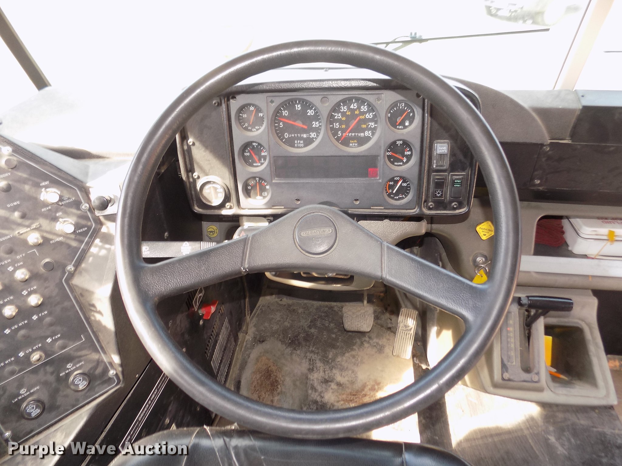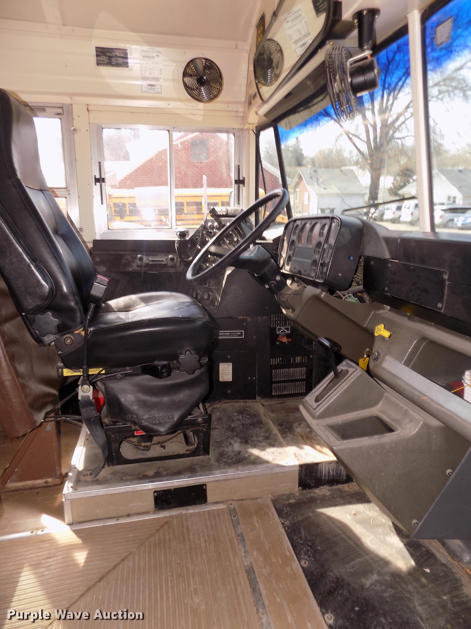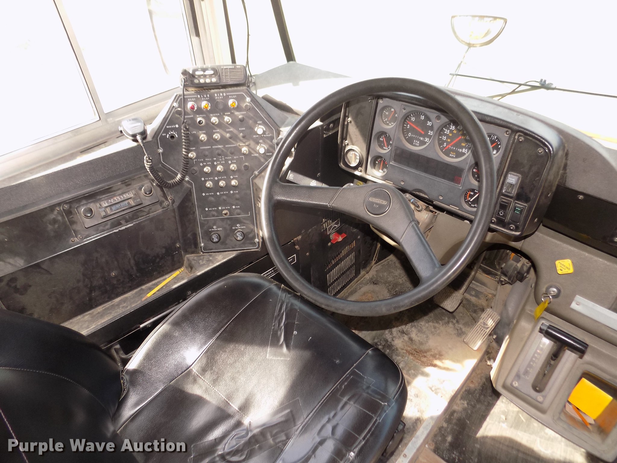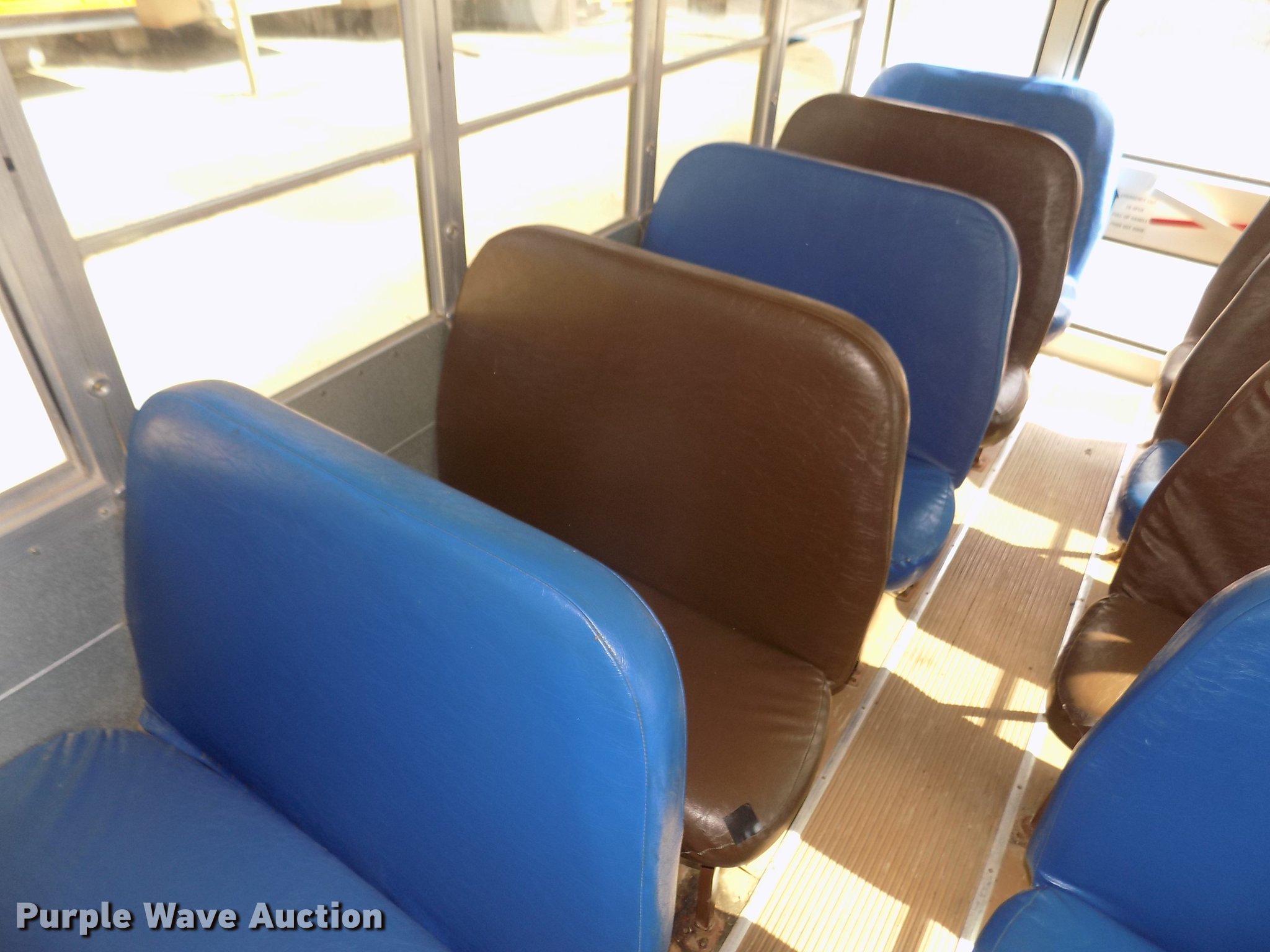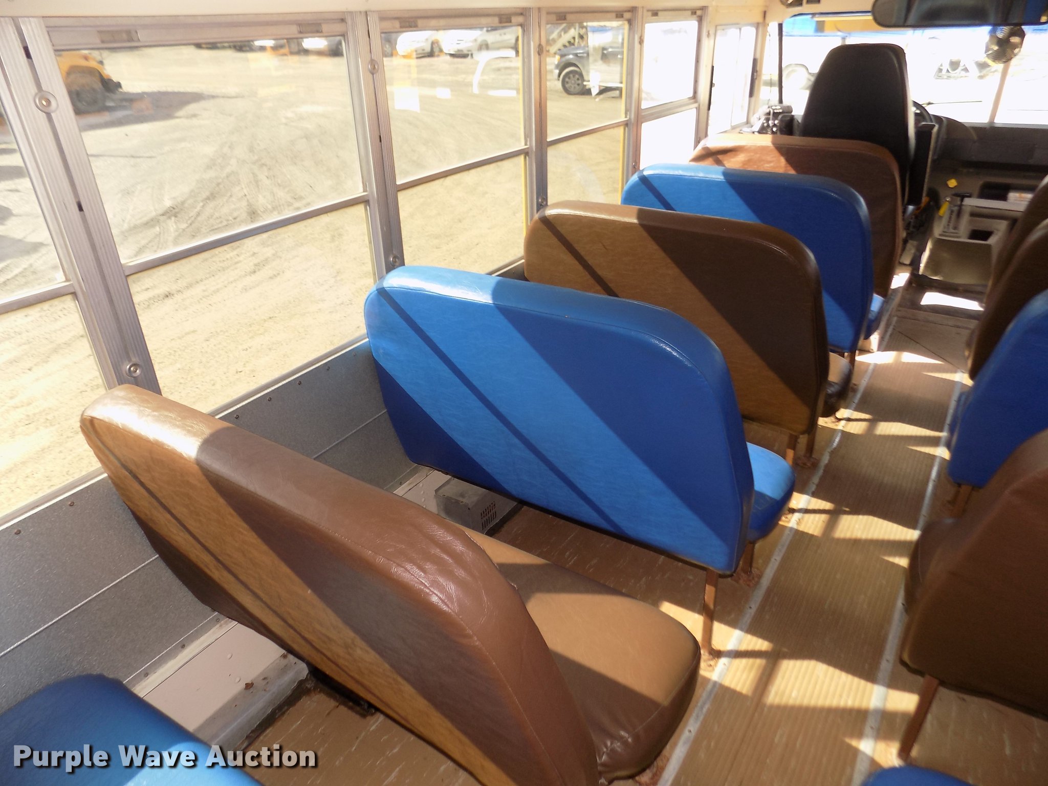 Purple Wave is selling a used Bus in Iowa. This item is a 1999 Freightliner FS65 Blue Bird school bus with the following: 42,620 miles on odometer, 4,114 hours on meter, Miles and hours may vary, still in use, Caterpillar 3126 7.2L L6 turbo diesel engine, Serial 7AS32946, Automatic transmission, Single axle, Heat, AM/FM/cassette, Air suspension seat, Power door, 60 passenger capacity, (20) adult seats, Ceiling, front, rear, and side emergency exits, Lighted stop sign, Exterior light monitor, First-aid kits, Fire extinguisher, Recirculating fans, Backup alarm, Blue Bird body no. M88208, Serial 10009880, Front and rear tow hooks, Air suspension, Air brakes, 10R22.5 tires, GVWR 26,500 lbs, FAWR 9,000 lbs, RAWR 17,500 lbs, CB radio not included, Owners manual, Unit# 6