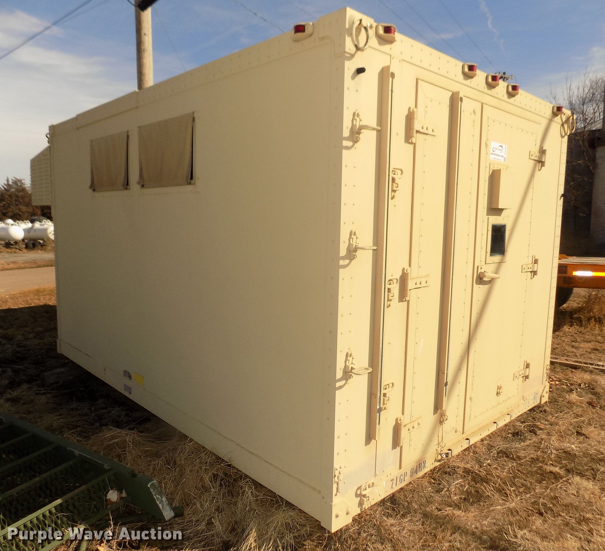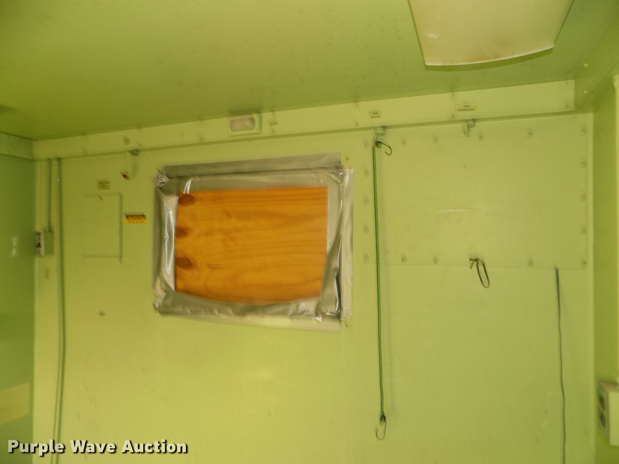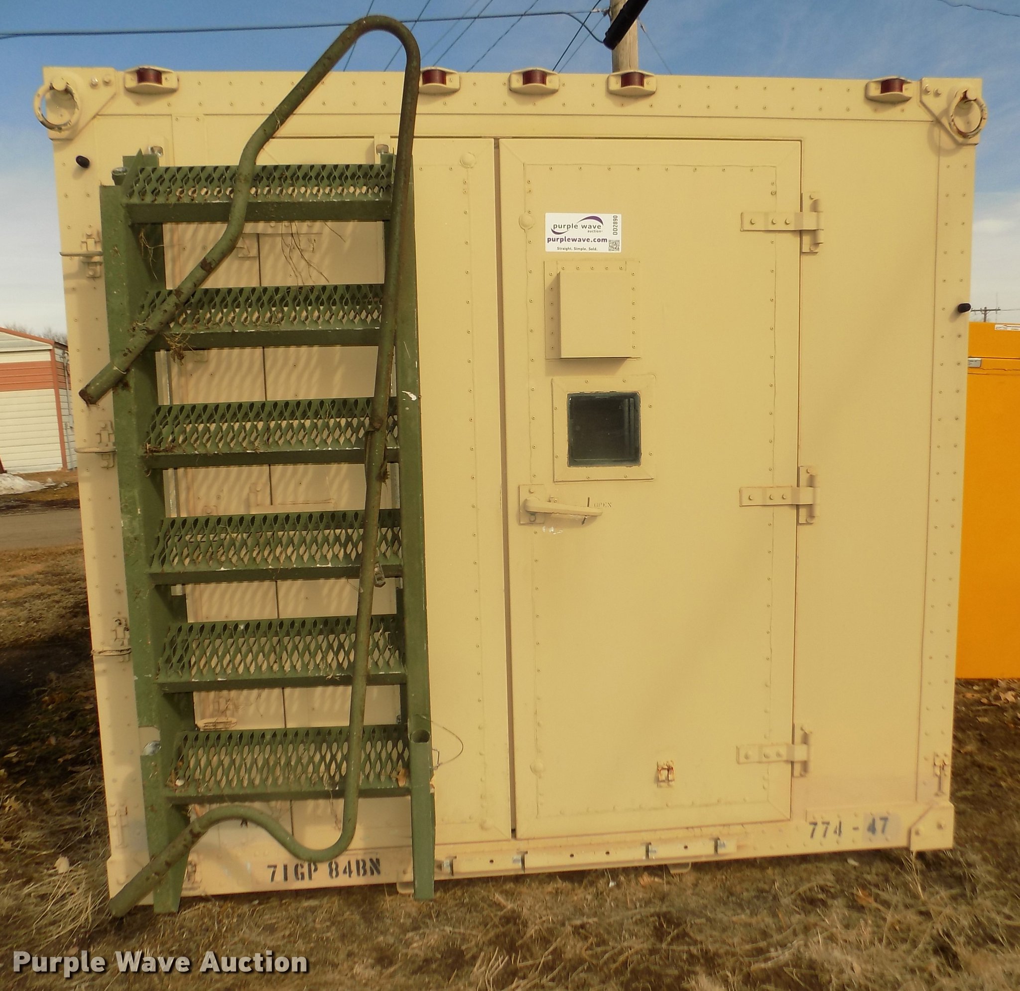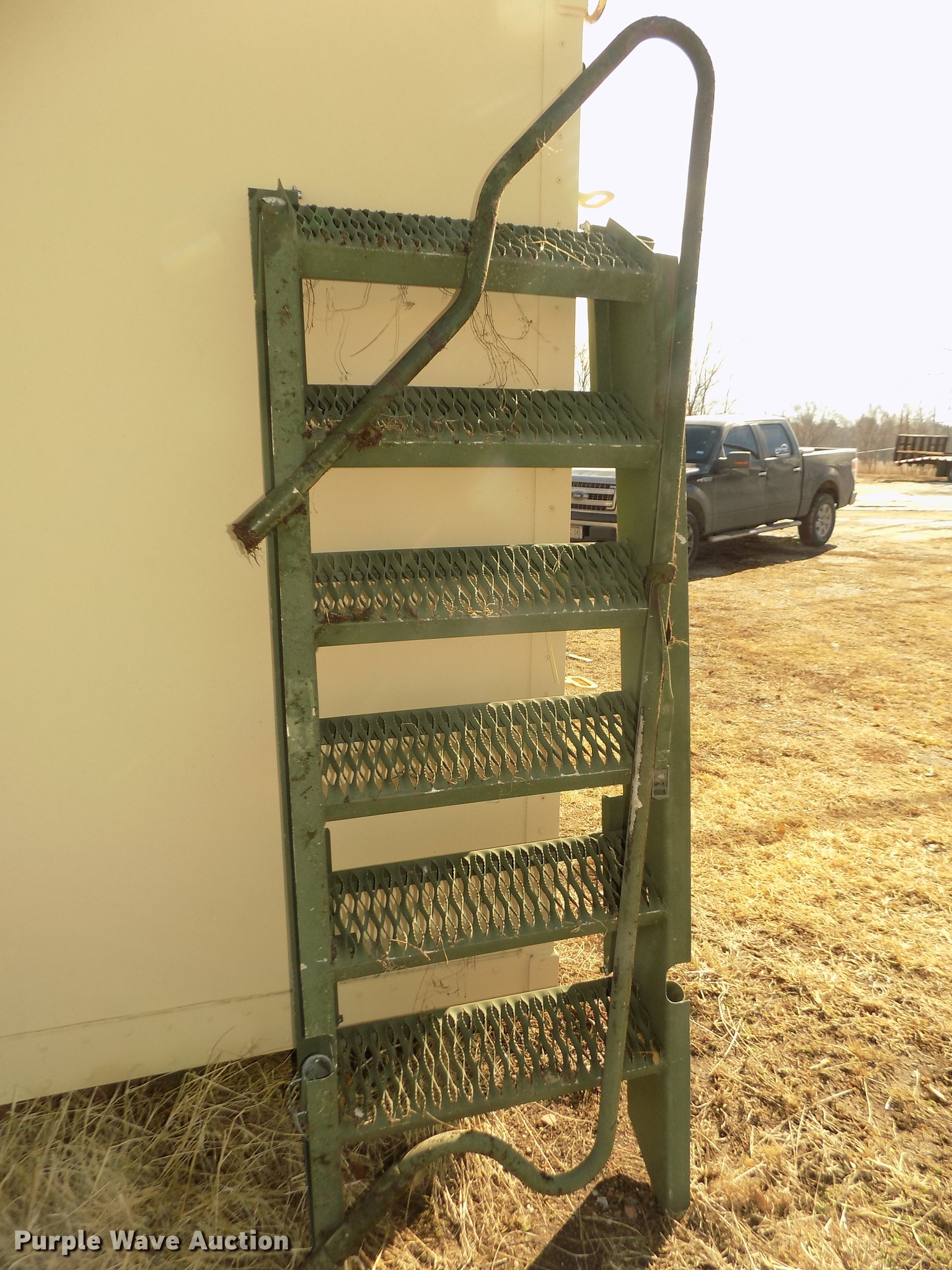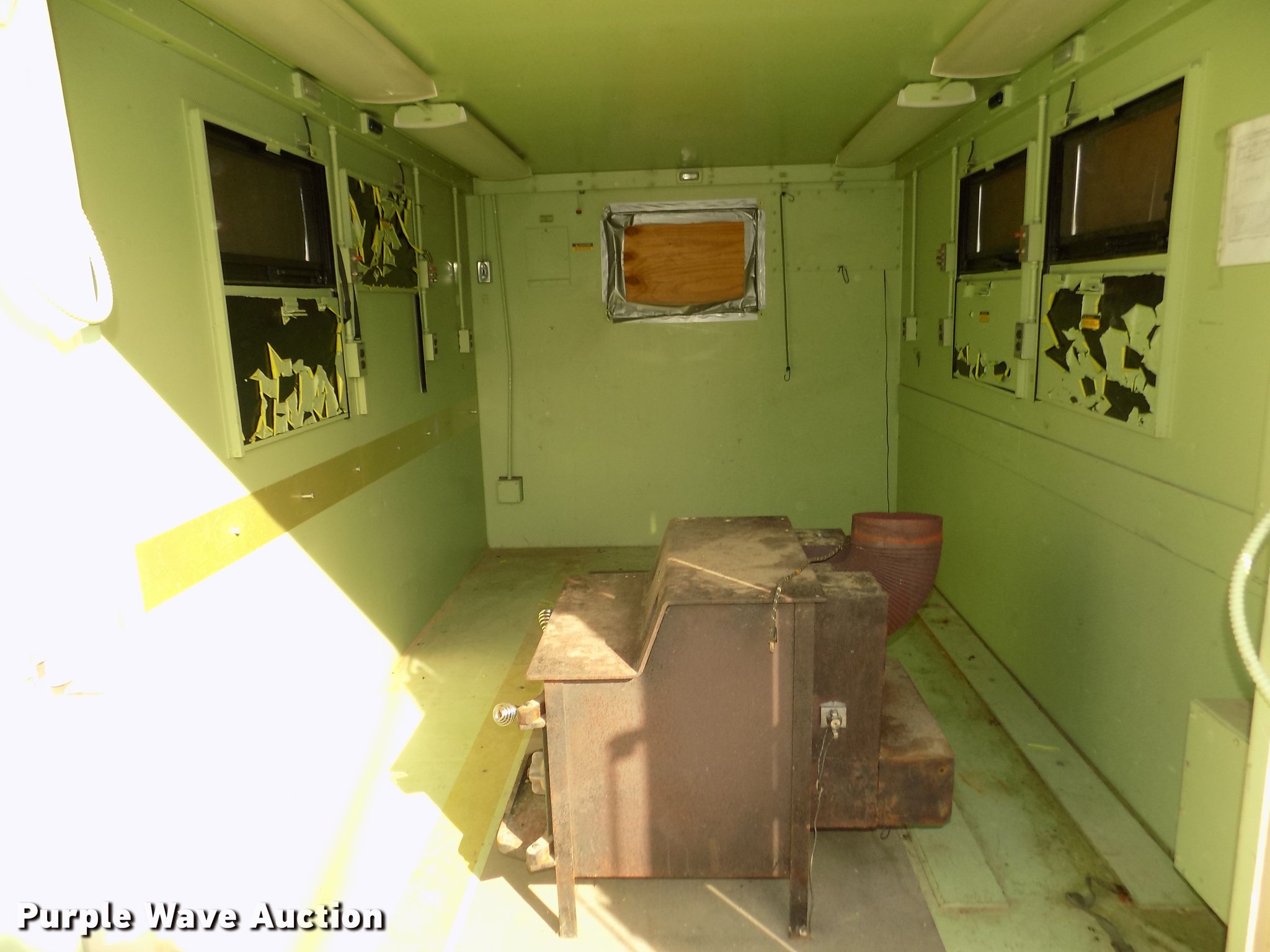 Purple Wave is selling a used Building Materials in Nebraska. This item is a 1999 office building with the following: 12'L x 90"W x 79.5"H I.D., 14'9"L, 12'5"L x 95"W x 89"D main unit, 28"W six step platform, 24"W x 7"D I.D. steps, Handrail,, Pop-out windows with covers, Interior/exterior window covers, Fluorescent lighting, Electrical outlets, Electrical connections, Steps for roof access, Stove not included, 17,722 lbs empty weight, Serial 2510-01-453-8949