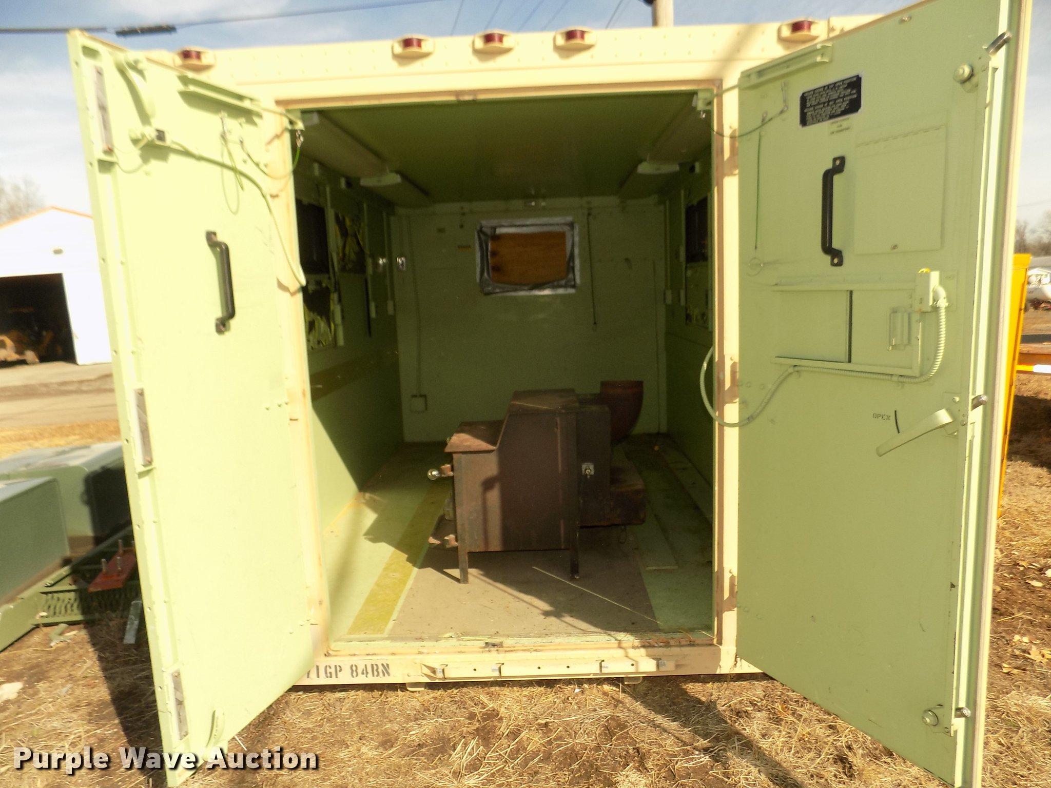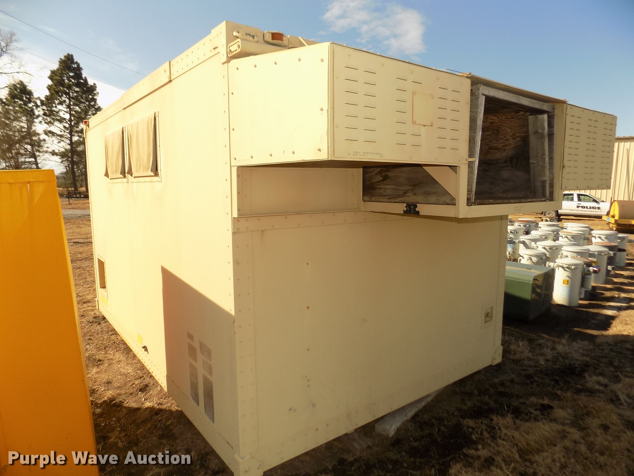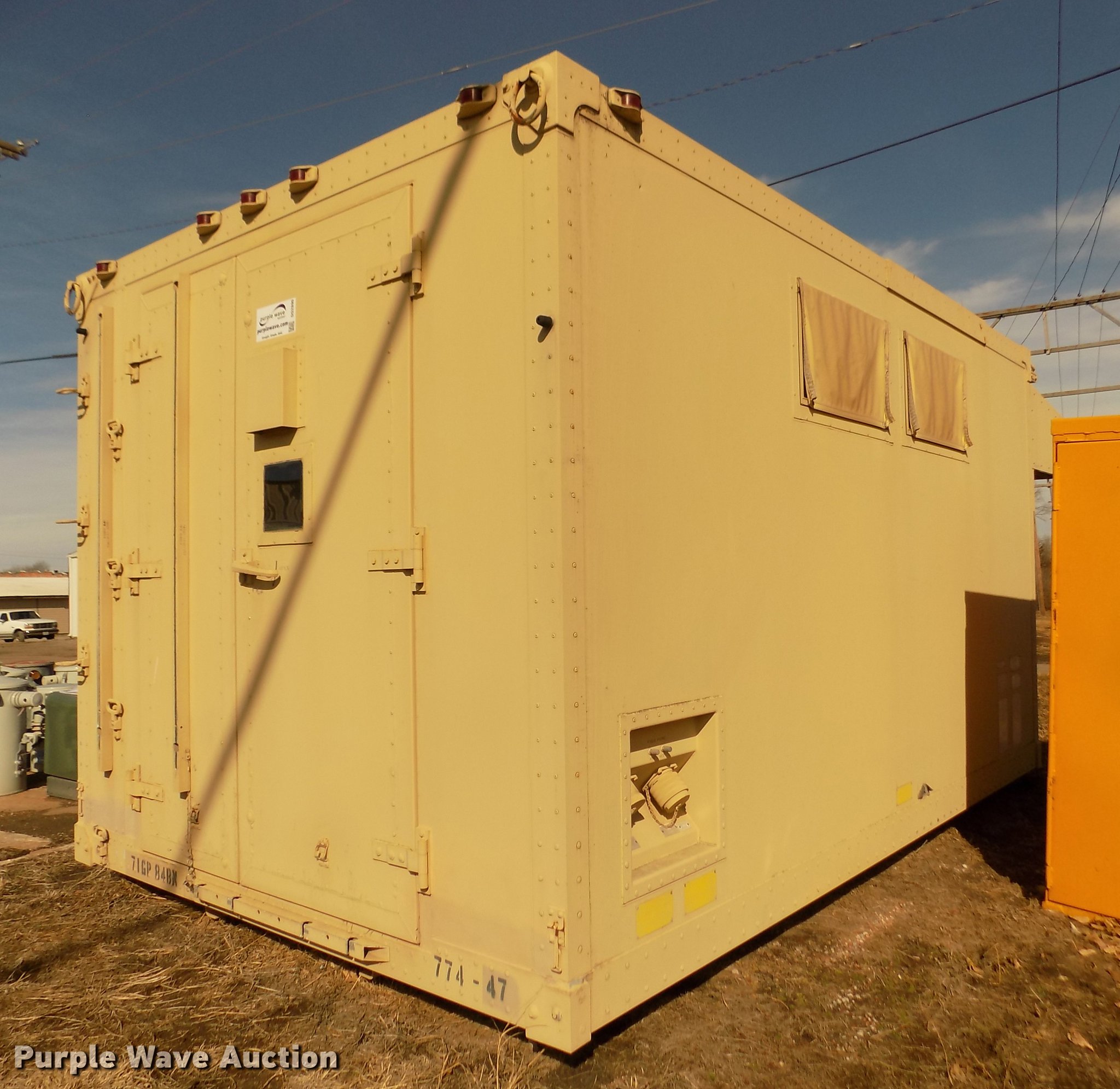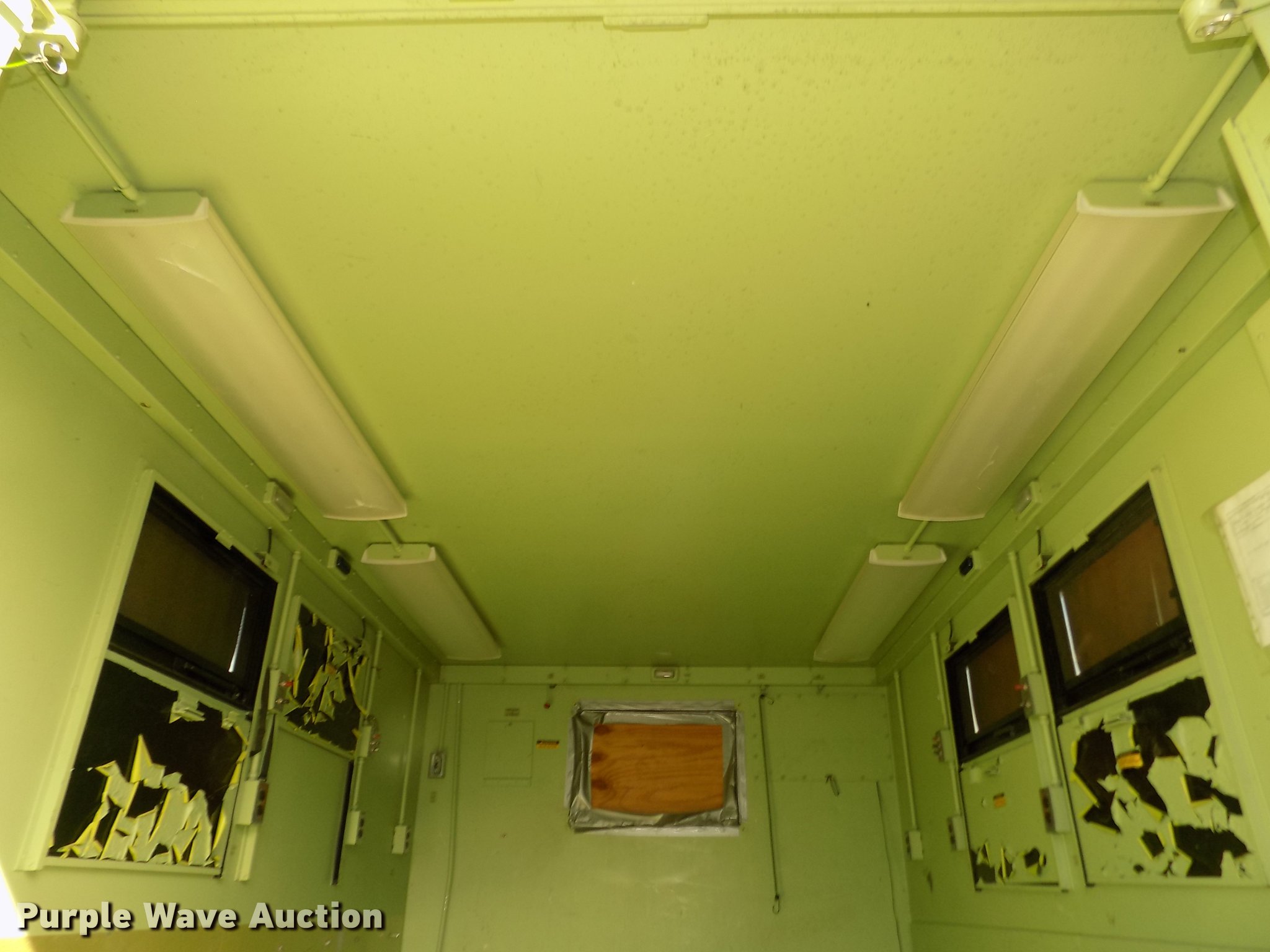 Purple Wave is selling a used Building Materials in Nebraska. This item is a 1999 office building with the following: 12'L x 90"W x 79.5"H I.D., 14'9"L, 12'5"L x 95"W x 89"D main unit, 28"W six step platform, 24"W x 7"D I.D. steps, Handrail,, Pop-out windows with covers, Interior/exterior window covers, Fluorescent lighting, Electrical outlets, Electrical connections, Steps for roof access, Stove not included, 17,722 lbs empty weight, Serial 2510-01-453-8949