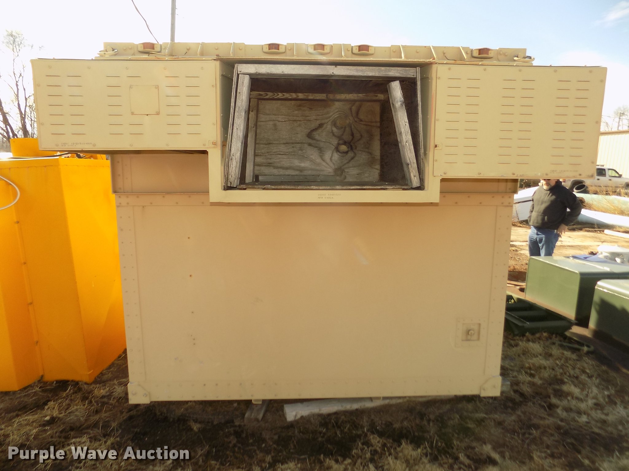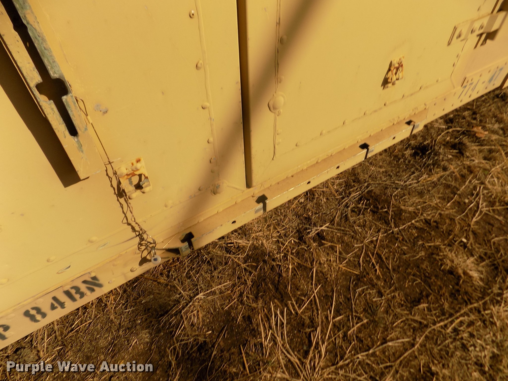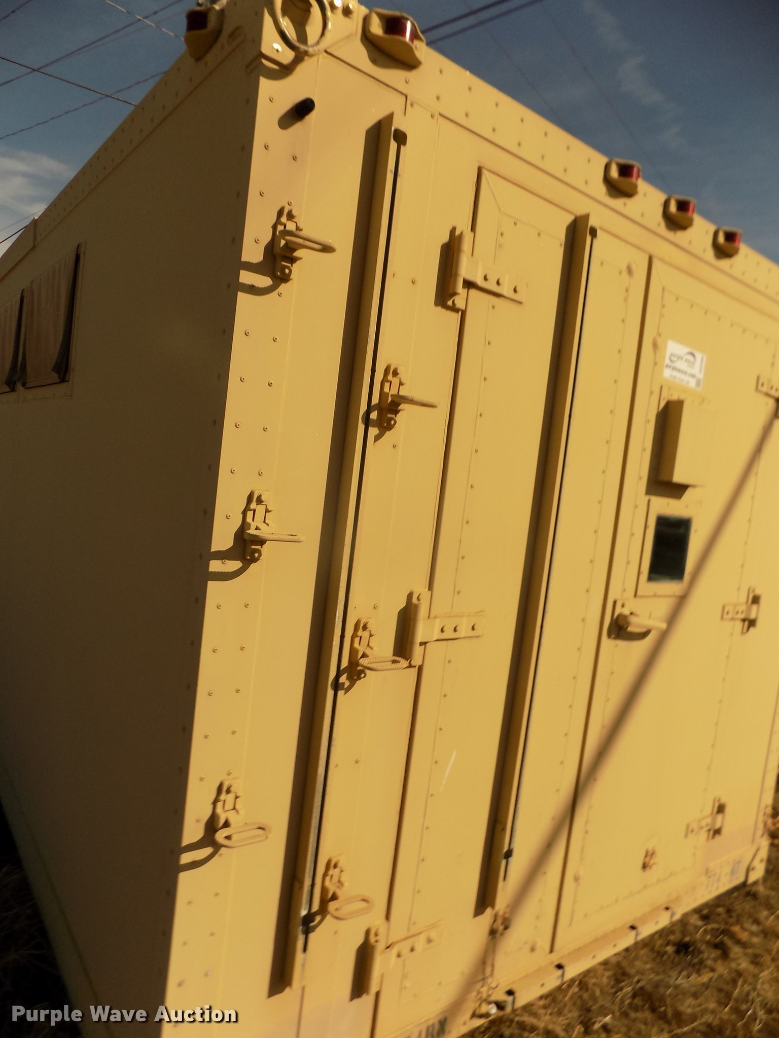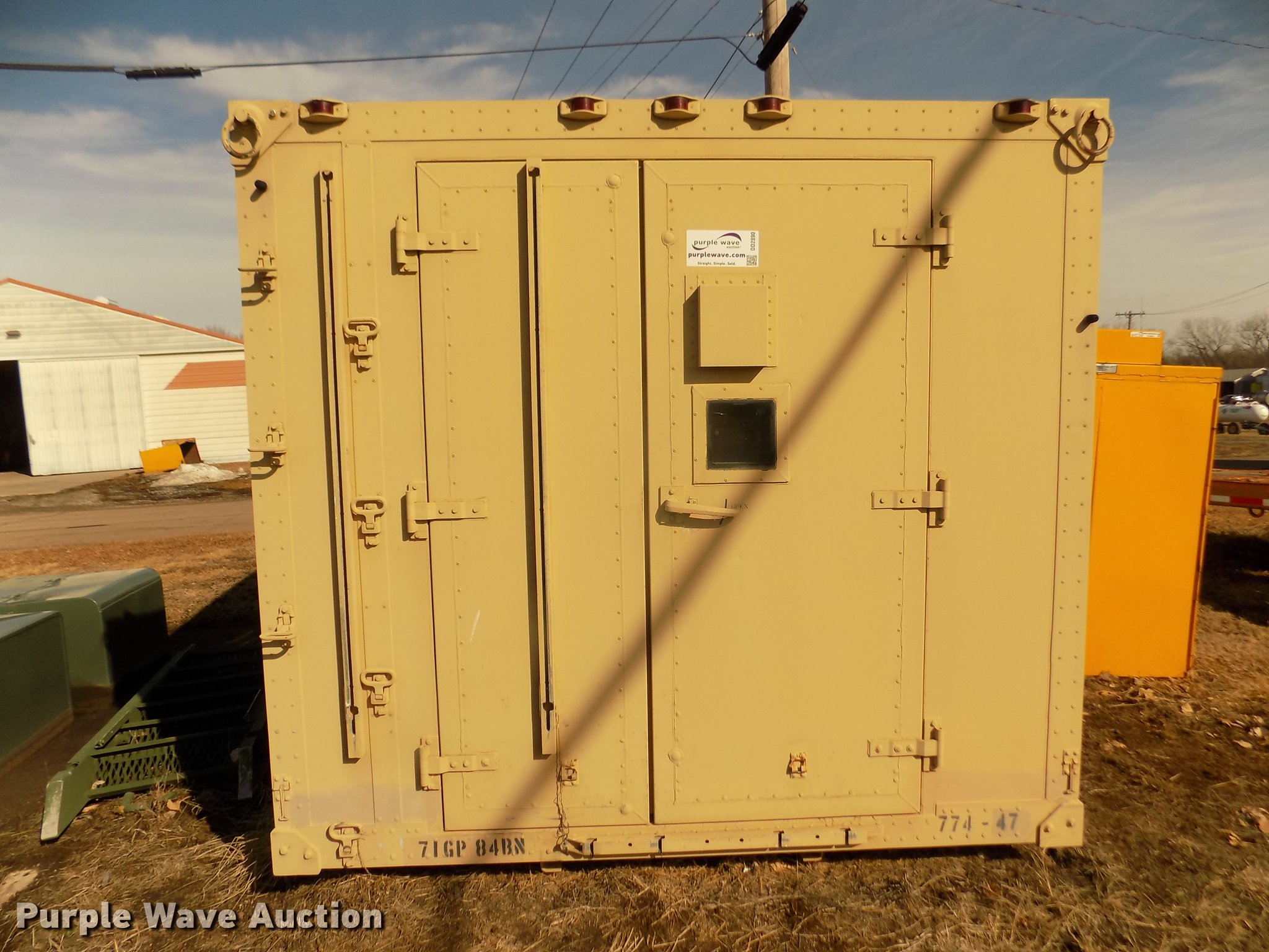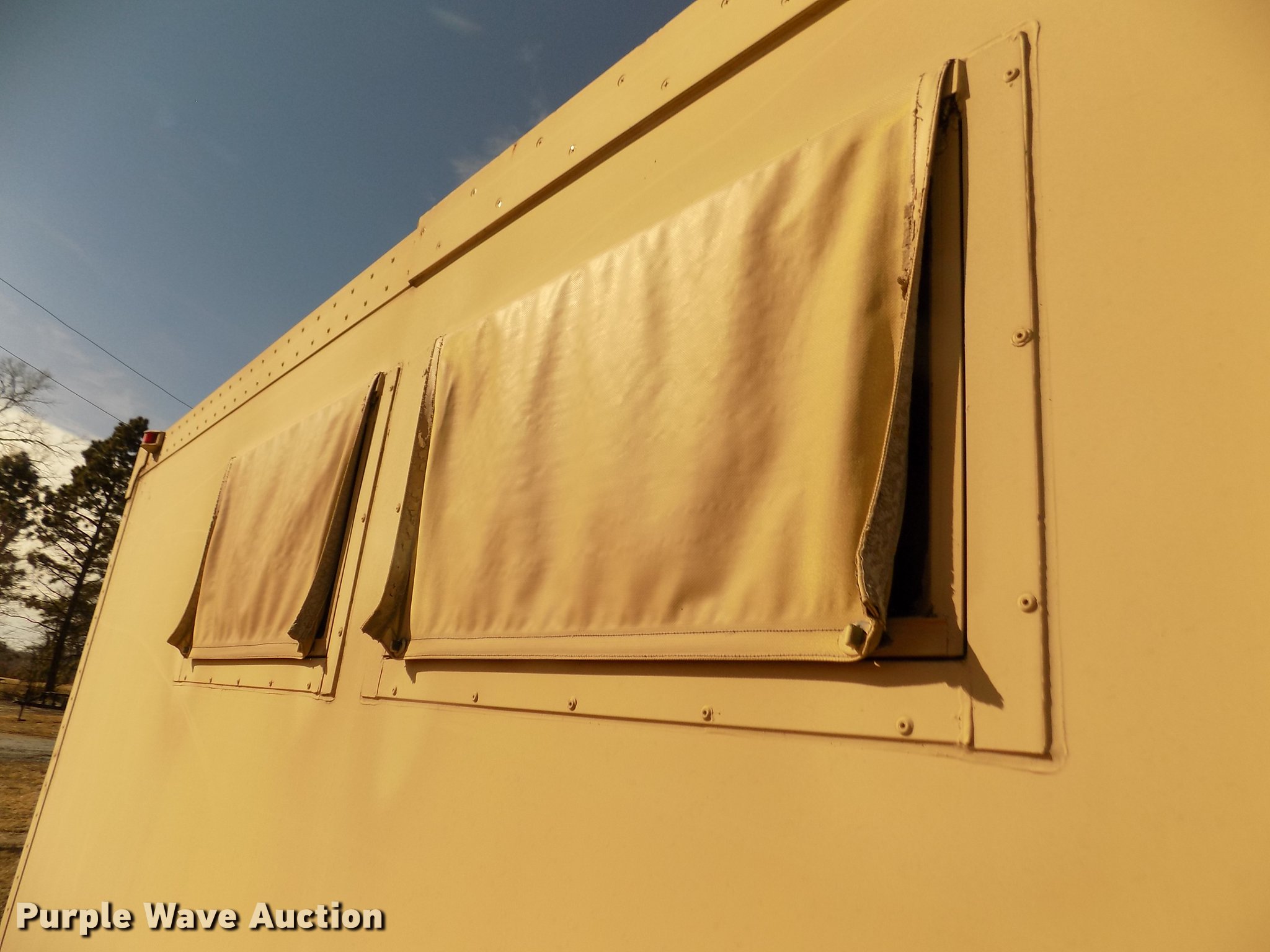 Purple Wave is selling a used Building Materials in Nebraska. This item is a 1999 office building with the following: 12'L x 90"W x 79.5"H I.D., 14'9"L, 12'5"L x 95"W x 89"D main unit, 28"W six step platform, 24"W x 7"D I.D. steps, Handrail,, Pop-out windows with covers, Interior/exterior window covers, Fluorescent lighting, Electrical outlets, Electrical connections, Steps for roof access, Stove not included, 17,722 lbs empty weight, Serial 2510-01-453-8949