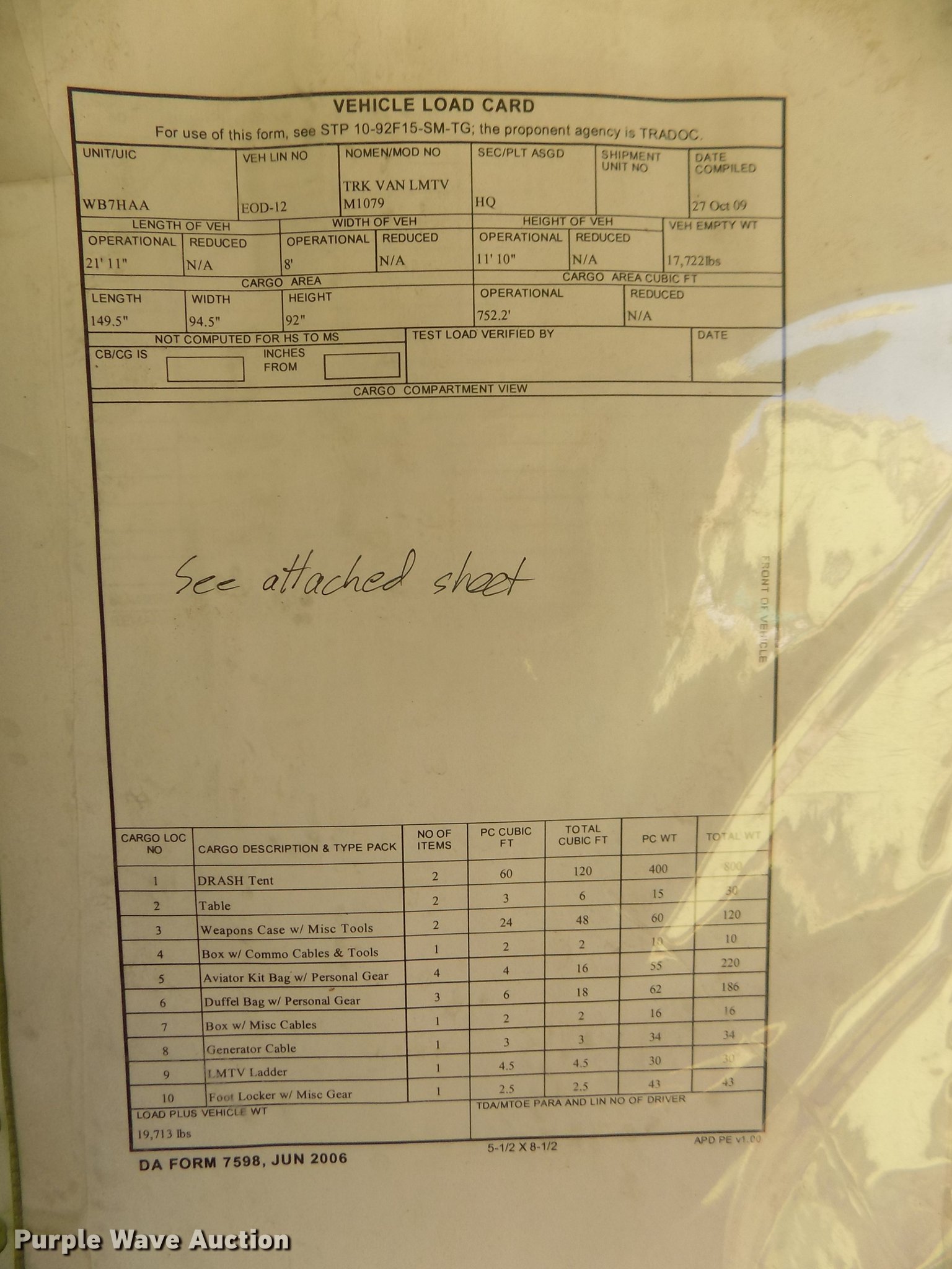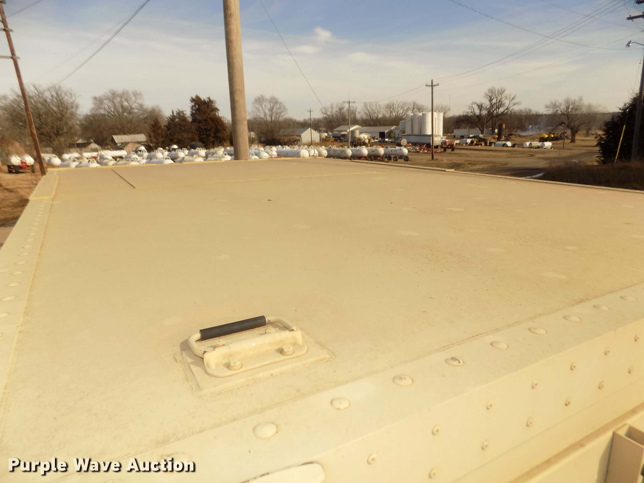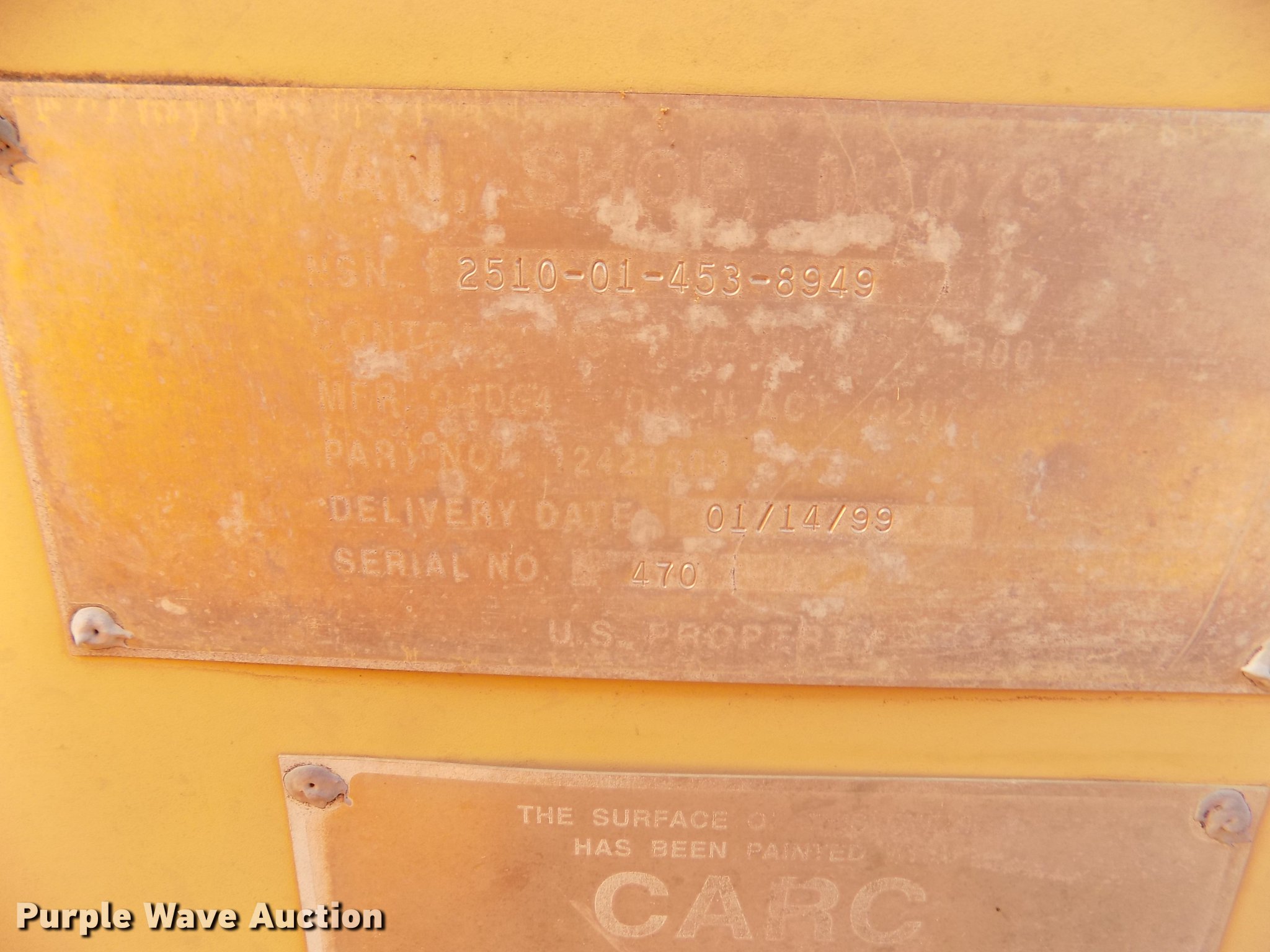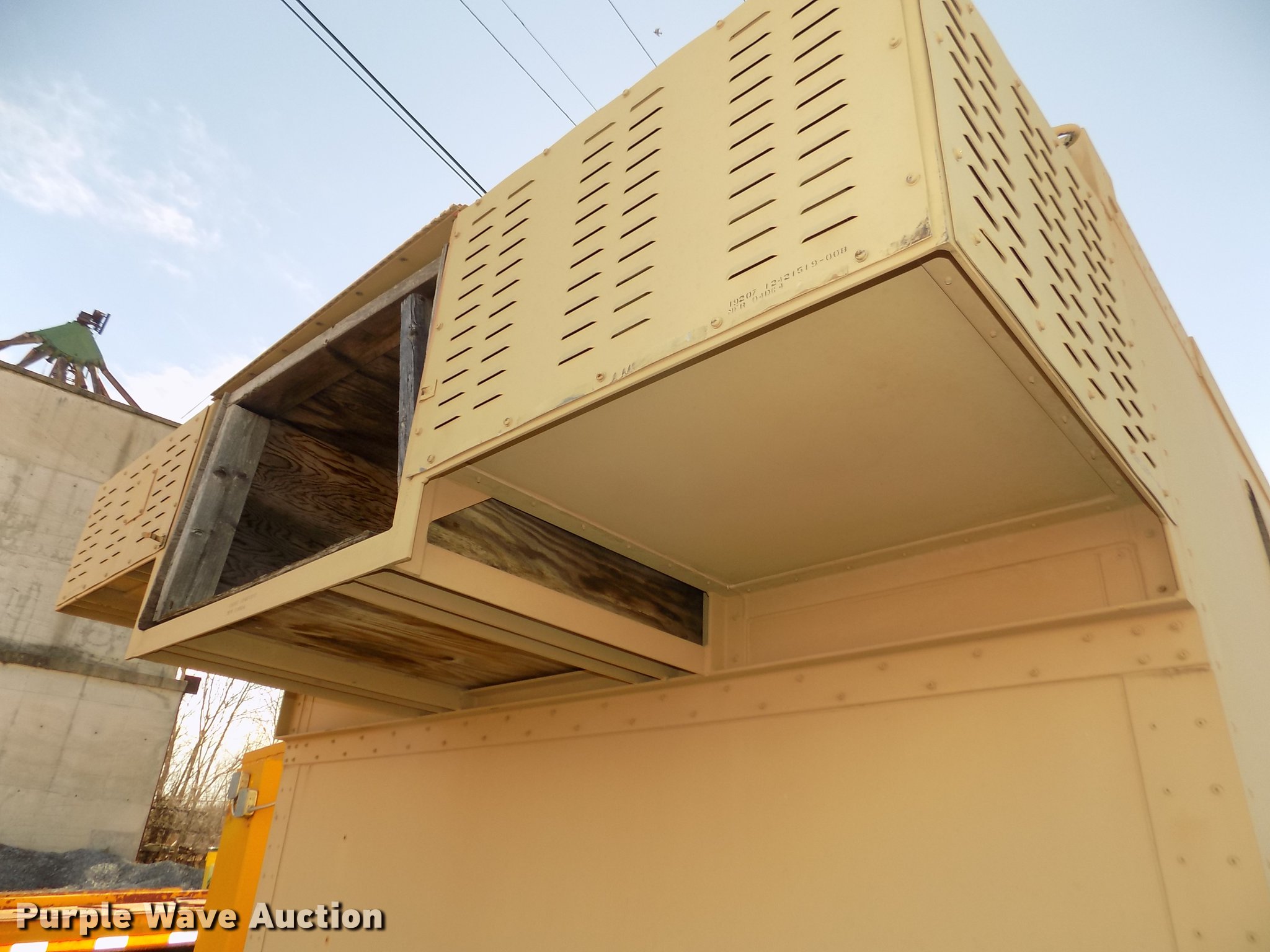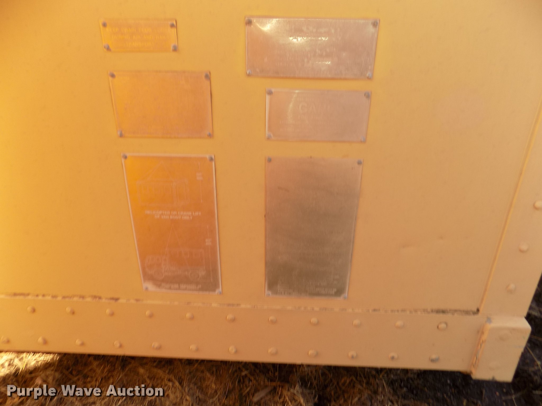 Purple Wave is selling a used Building Materials in Nebraska. This item is a 1999 office building with the following: 12'L x 90"W x 79.5"H I.D., 14'9"L, 12'5"L x 95"W x 89"D main unit, 28"W six step platform, 24"W x 7"D I.D. steps, Handrail,, Pop-out windows with covers, Interior/exterior window covers, Fluorescent lighting, Electrical outlets, Electrical connections, Steps for roof access, Stove not included, 17,722 lbs empty weight, Serial 2510-01-453-8949