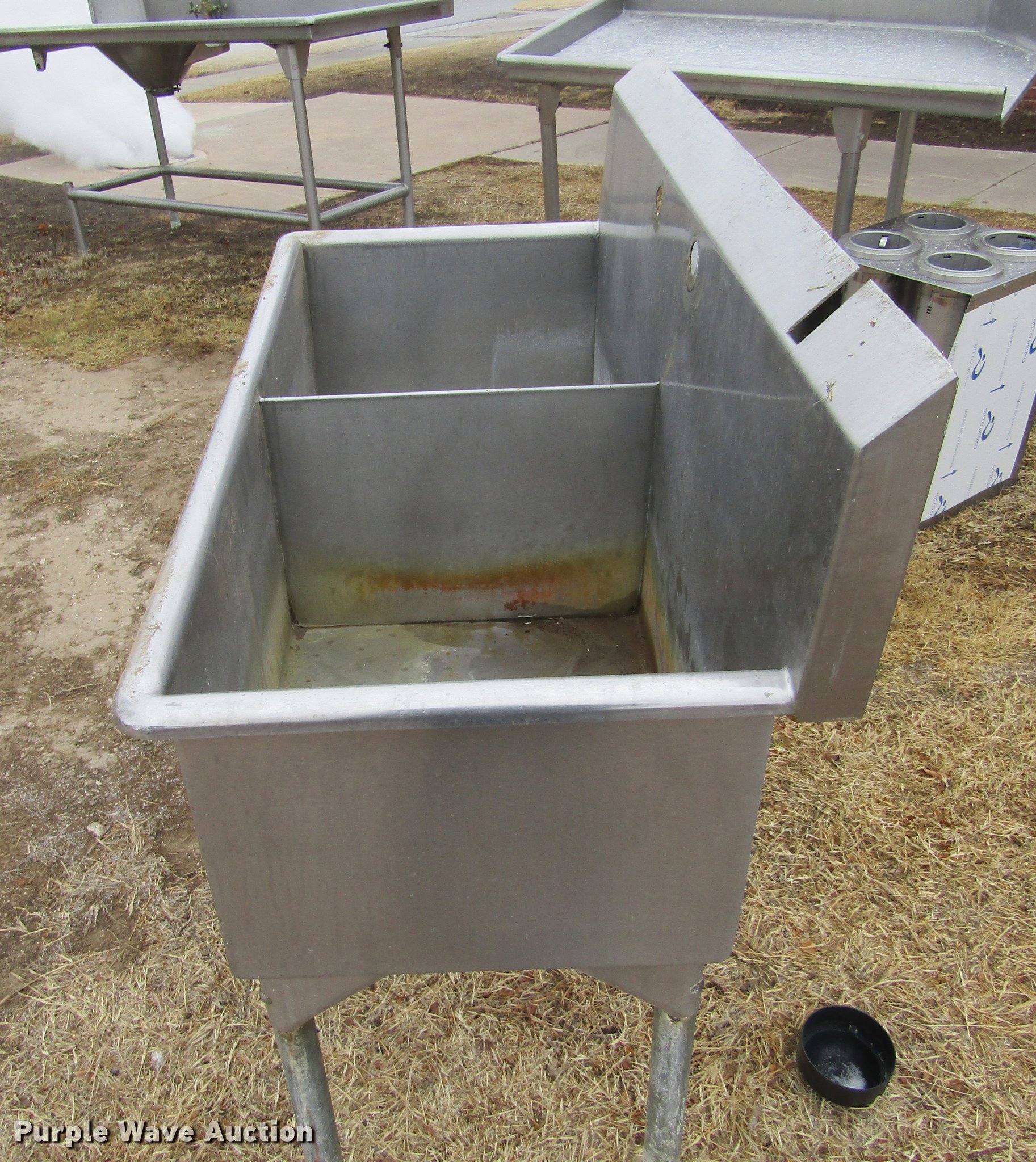 (2) serving islands. Four burners, Stainless steel double sink, (2) stainless steel prep tables, Stainless steel cup dispenser. Kansas Soldiers Home. 101 Pershing St. Fort Dodge, KS 67843