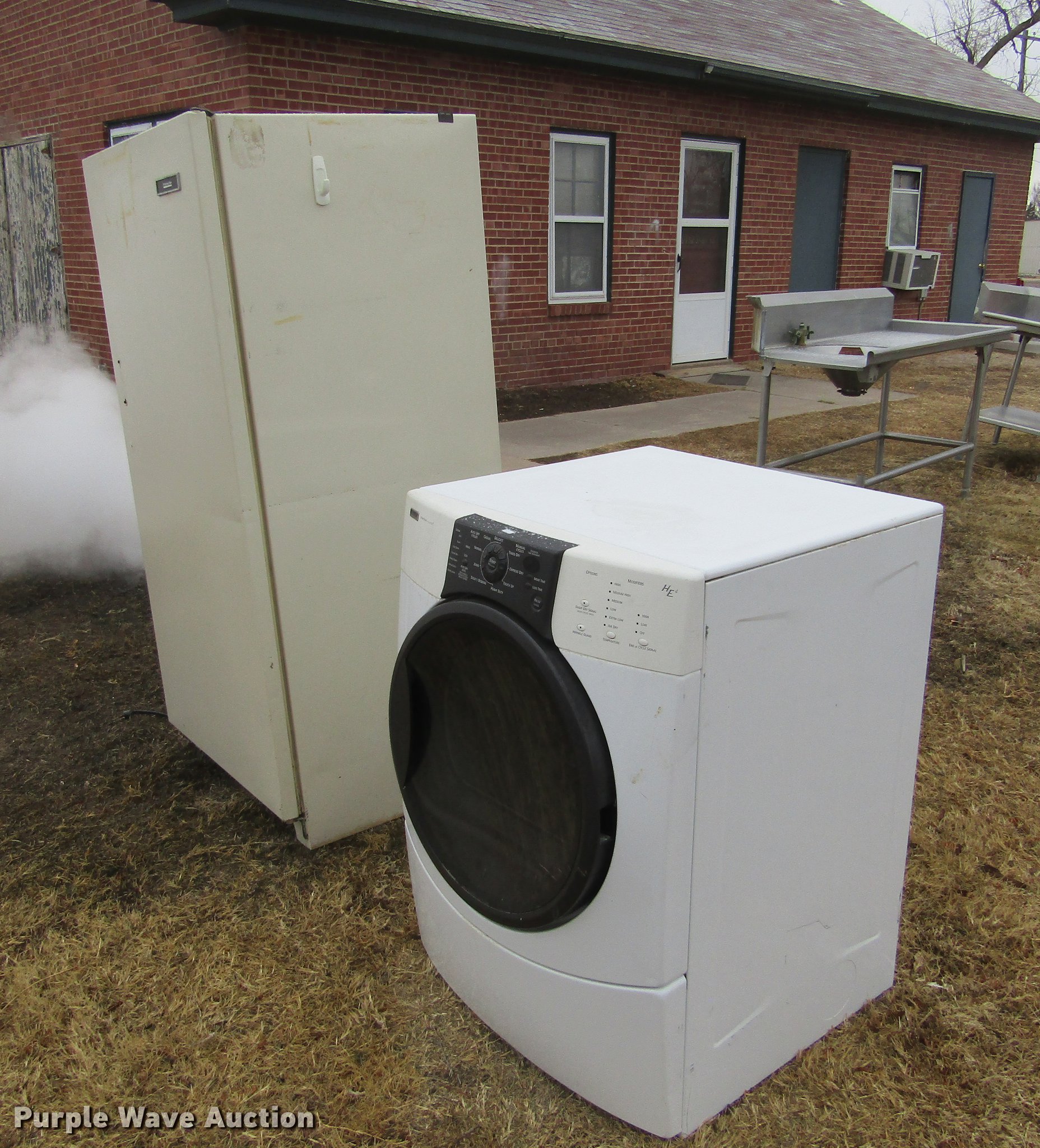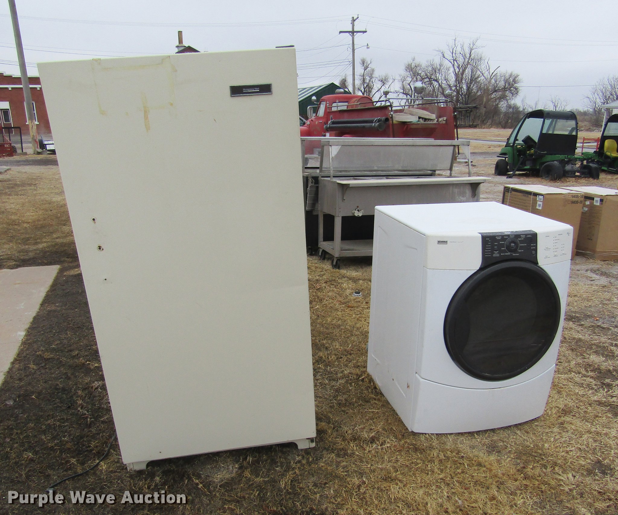 Purple Wave is selling a used Appliances in Kansas. This item is a Appliances with the following: True double door refrigerator, Kenmore dryer, Montgomery Ward refrigerator, Scottsman water dispenser, Unknown operating condition