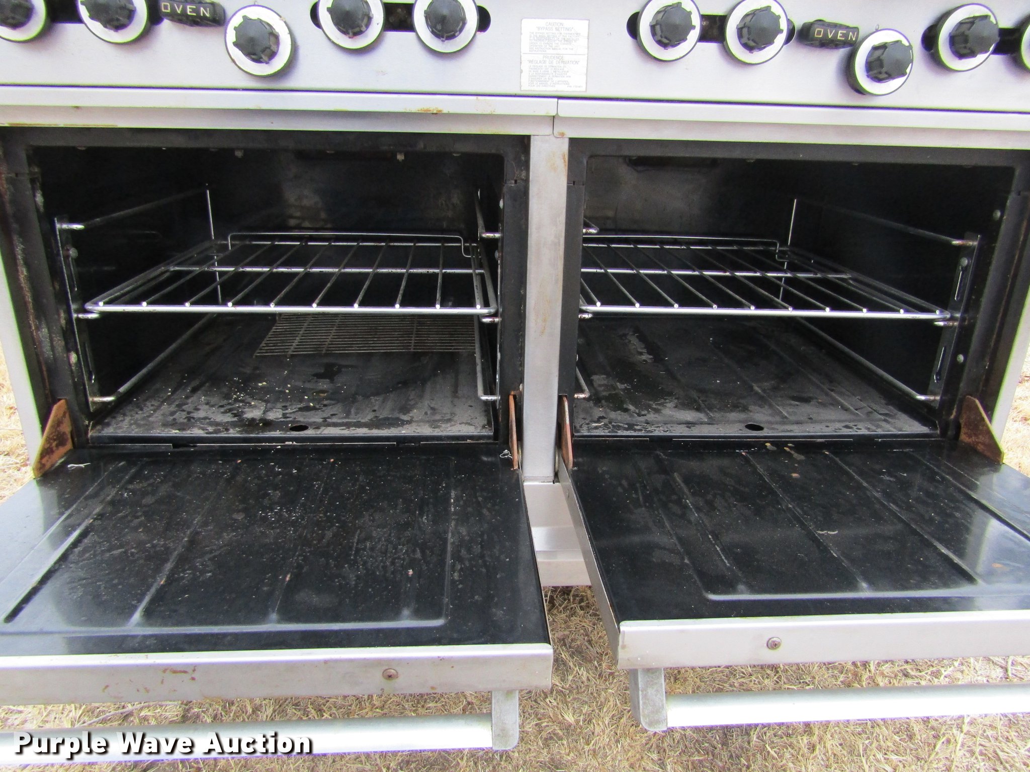 Purple Wave is selling a used Restaurant Equip. in Kansas. This item is a (3) ovens with the following: (2) Garland eight burner double door ovens, Unknown operating condition, Stainless steel oven, Non-operational unit