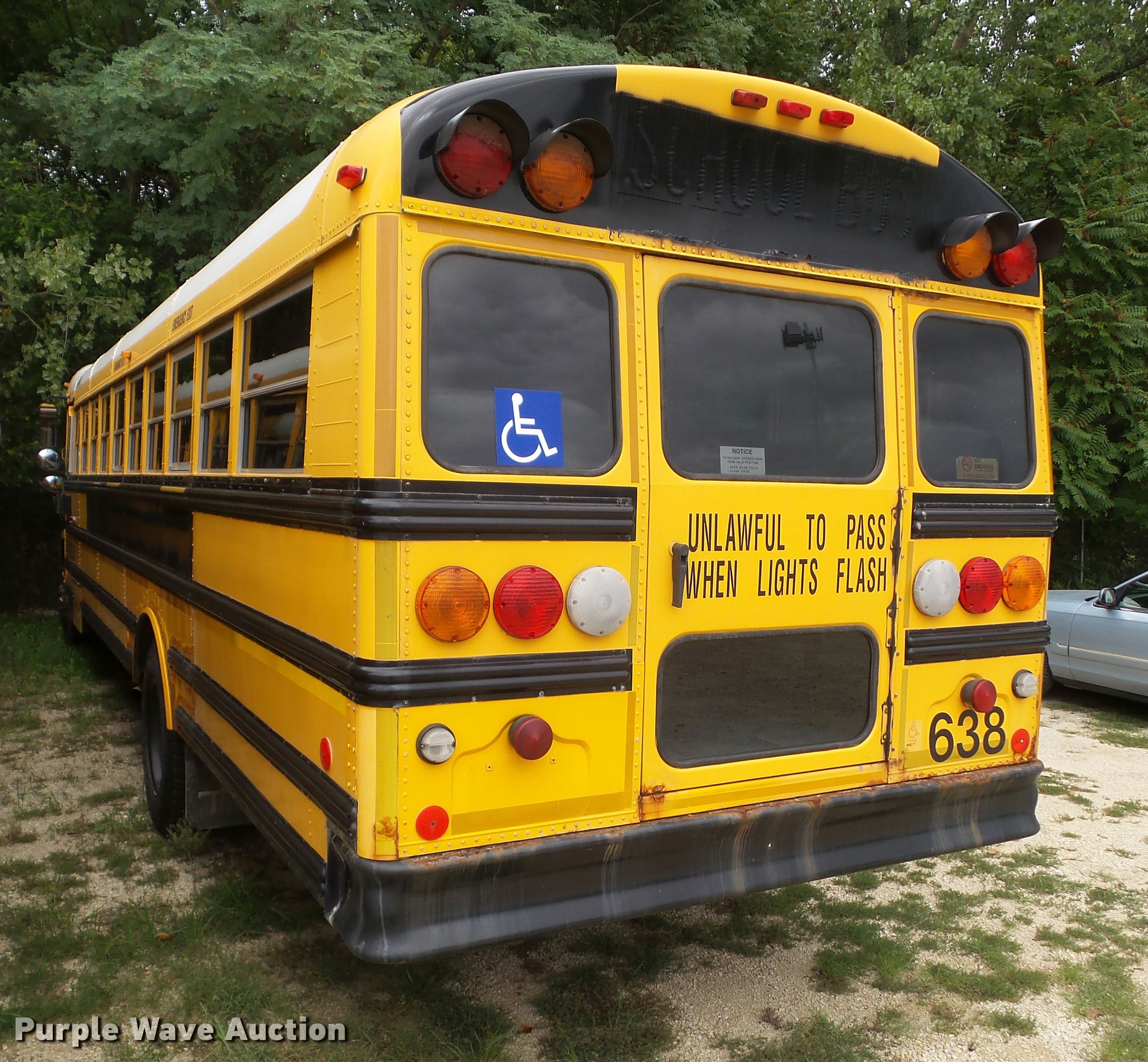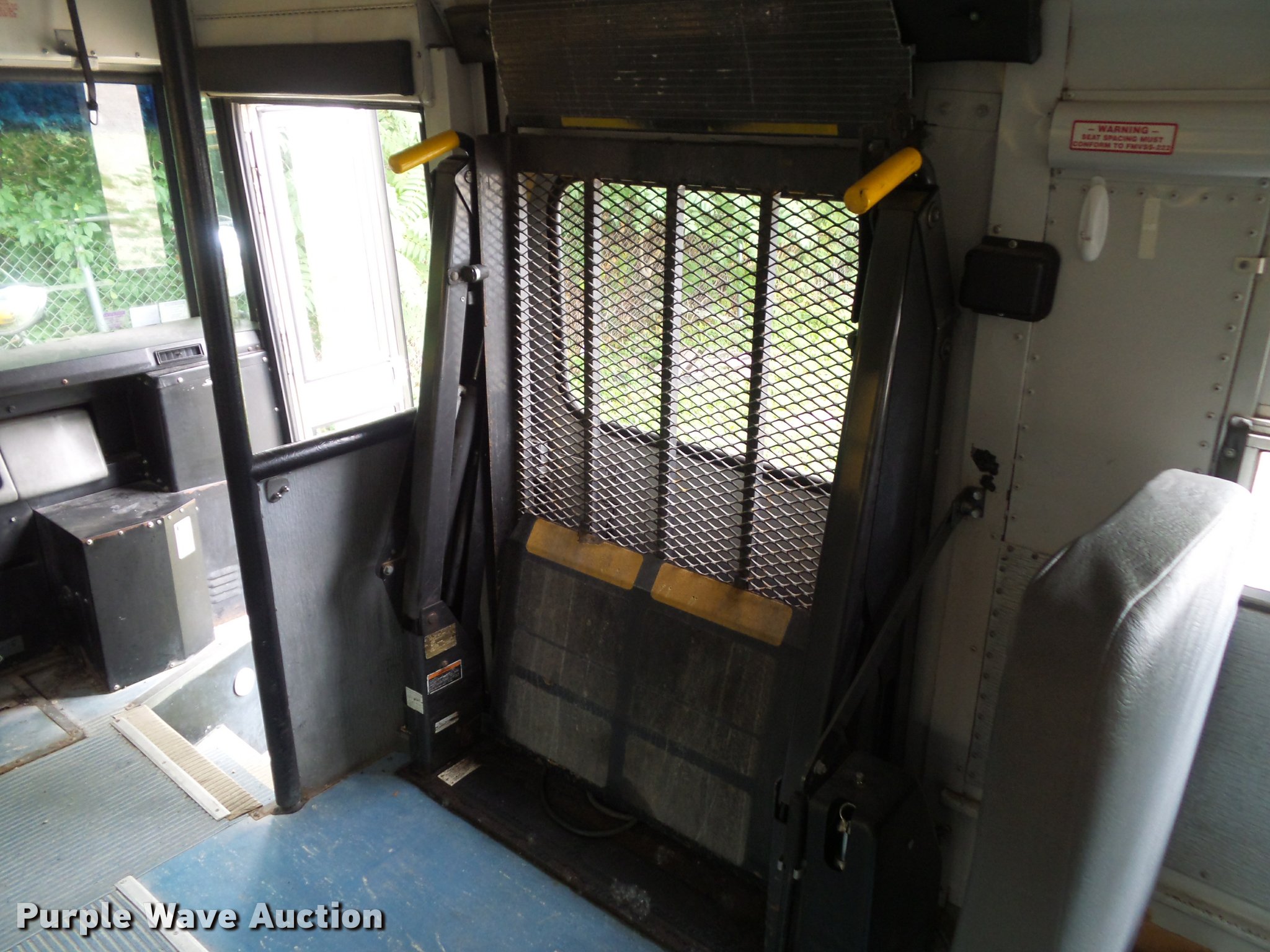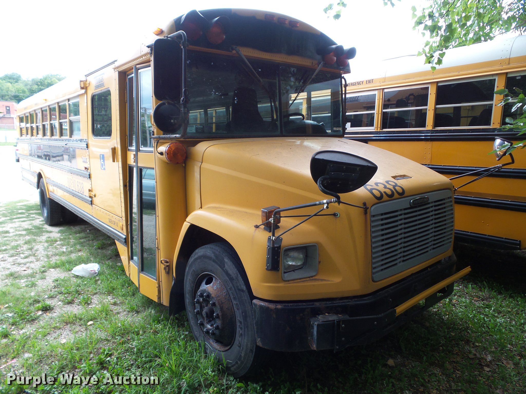 Purple Wave is selling a used Bus in Iowa. This item is a 2001 Freightliner FS65 school bus with the following: 159,731 miles on odometer, Cummins ISB 5.9L L6 turbo diesel engine, Automatic transmission, Single axle, Heat, Heated mirrors, Air suspension seat, Block heater, 42 passenger capacity, Braun L917 wheel chair lift, Serial A1-03602, (5) wheelchair tie down areas, Ceiling, front, rear, and side emergency exits, Emergency door alarms, Front tow hook, Air suspension, Air brakes, Goodyear 10R22.5 tires, GVWR 28,960 lbs, Engine has a scored cylinder