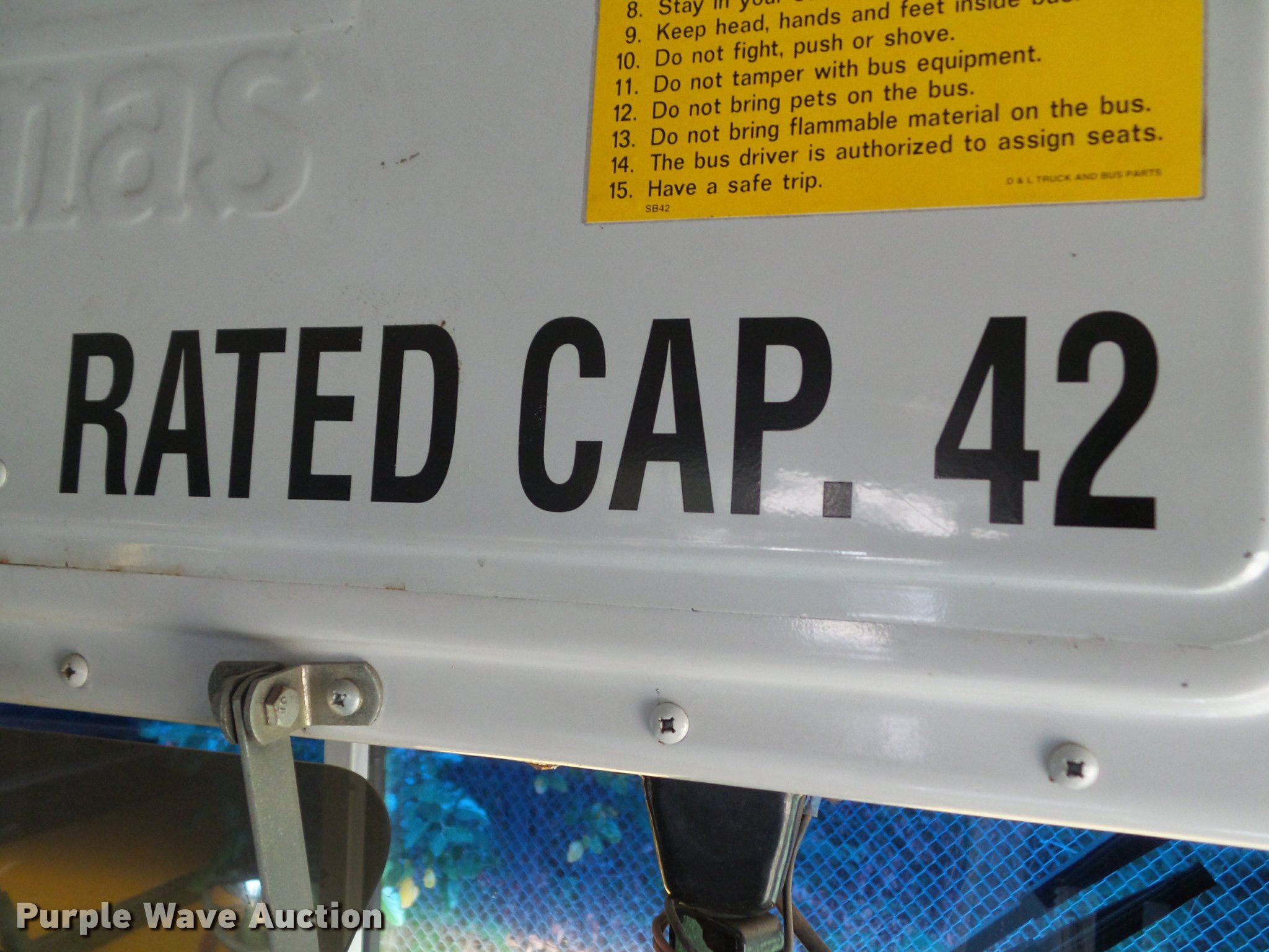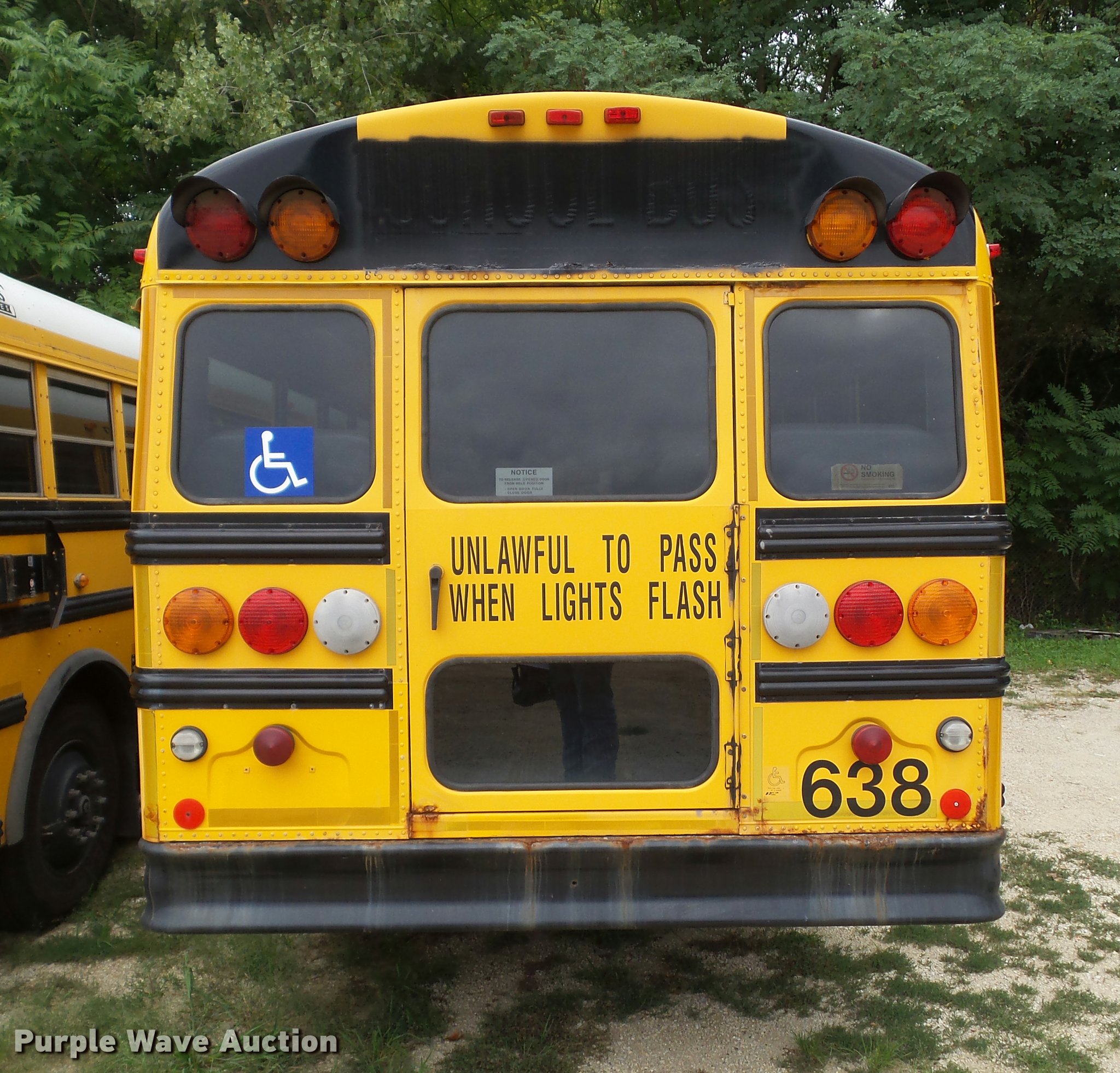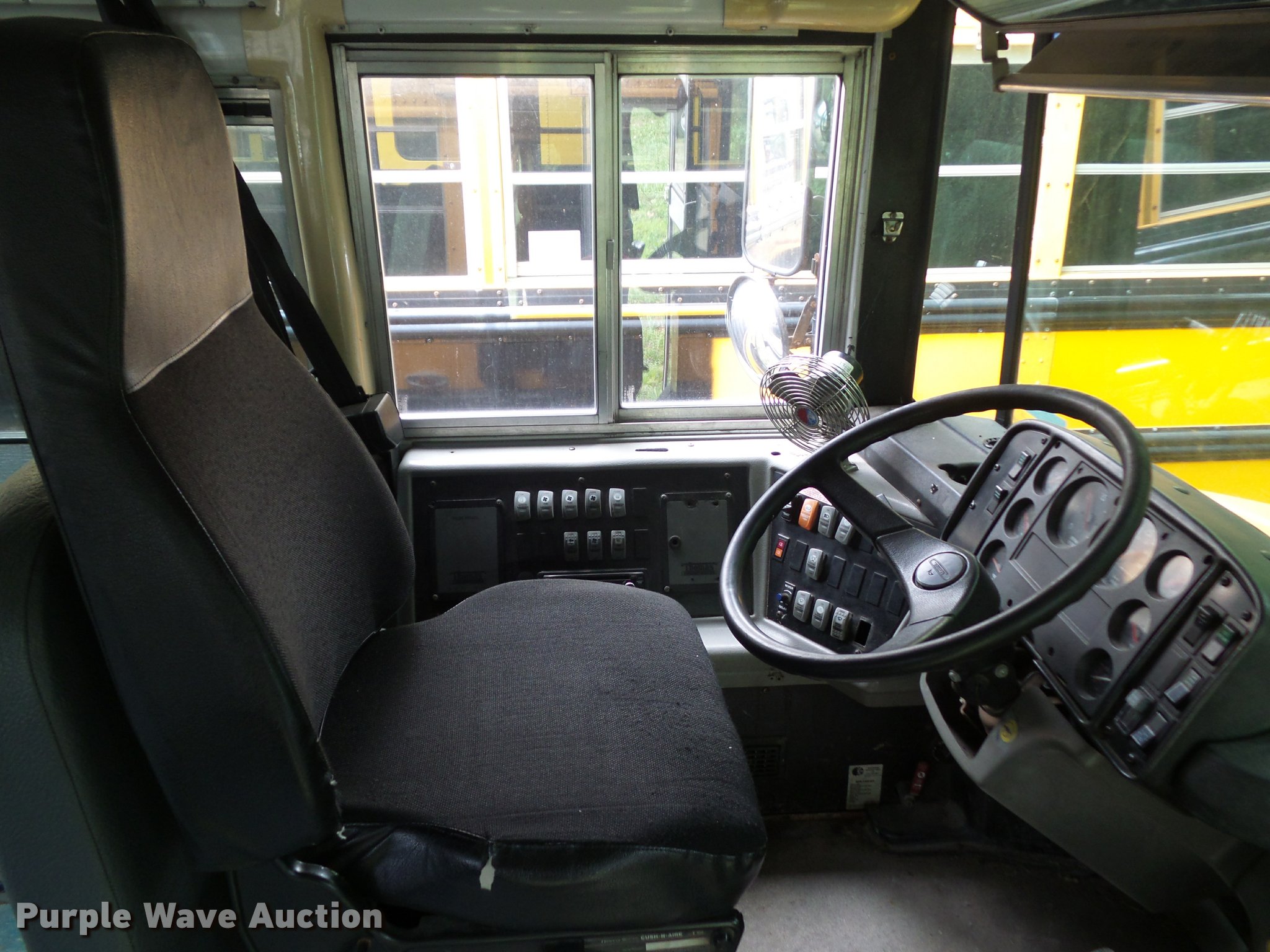Purple Wave is selling a used Bus in Iowa. This item is a 2001 Freightliner FS65 school bus with the following: 159,731 miles on odometer, Cummins ISB 5.9L L6 turbo diesel engine, Automatic transmission, Single axle, Heat, Heated mirrors, Air suspension seat, Block heater, 42 passenger capacity, Braun L917 wheel chair lift, Serial A1-03602, (5) wheelchair tie down areas, Ceiling, front, rear, and side emergency exits, Emergency door alarms, Front tow hook, Air suspension, Air brakes, Goodyear 10R22.5 tires, GVWR 28,960 lbs, Engine has a scored cylinder