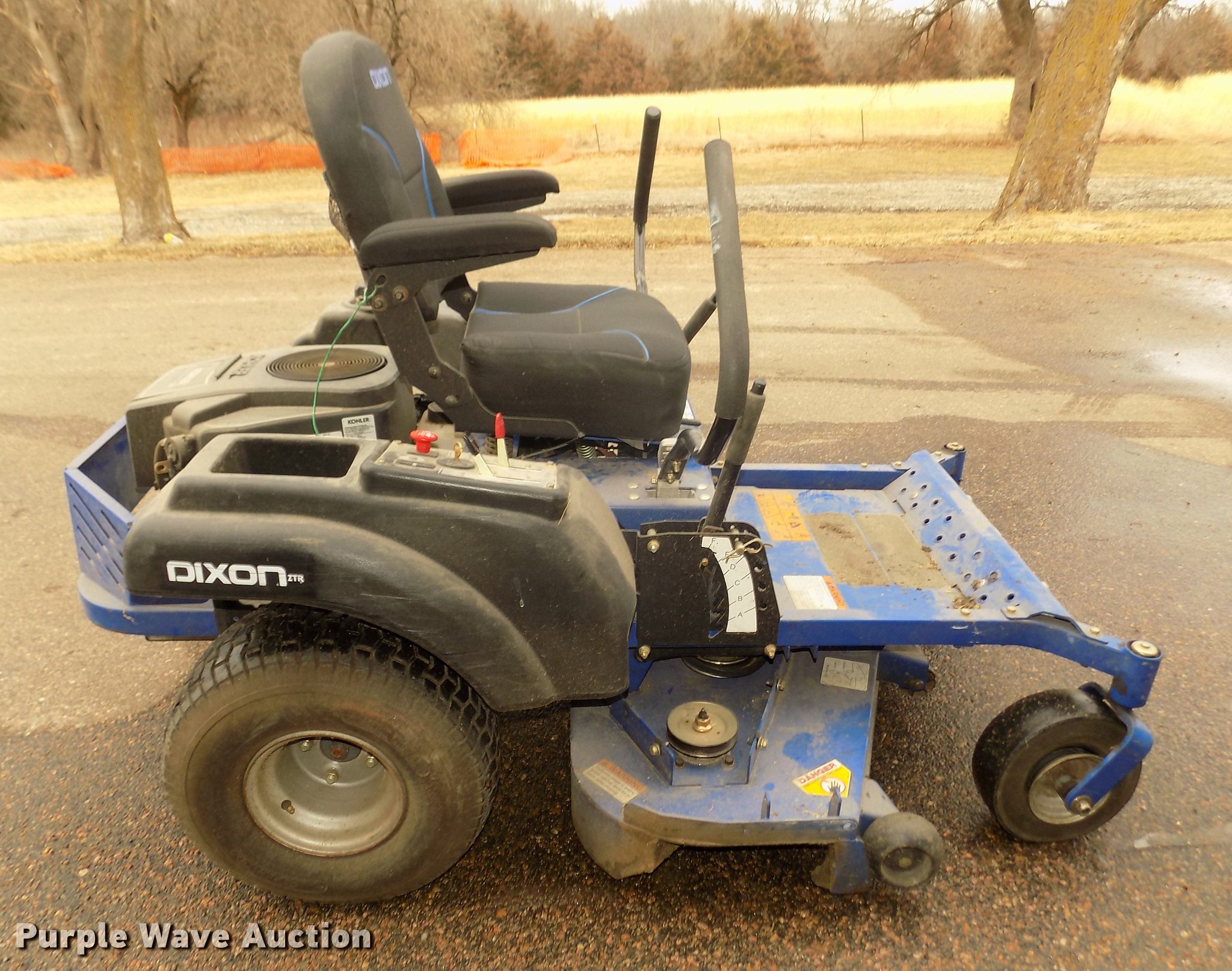 Purple Wave is selling a used Lawn Mower in Nebraska. This item is a Dixon RAM4824 ZTR lawn mower with the following: 135 hours on meter, 48" cut, 2008 Kohler Courage 24 725cc V-twin gas engine, Model SV725S, Serial 3822601793, Headlights, 4.10/350-5 front tires, 20x8.00-8 rear tires, Deck belts needs to be replaced, Flat front tire, Serial 083970654