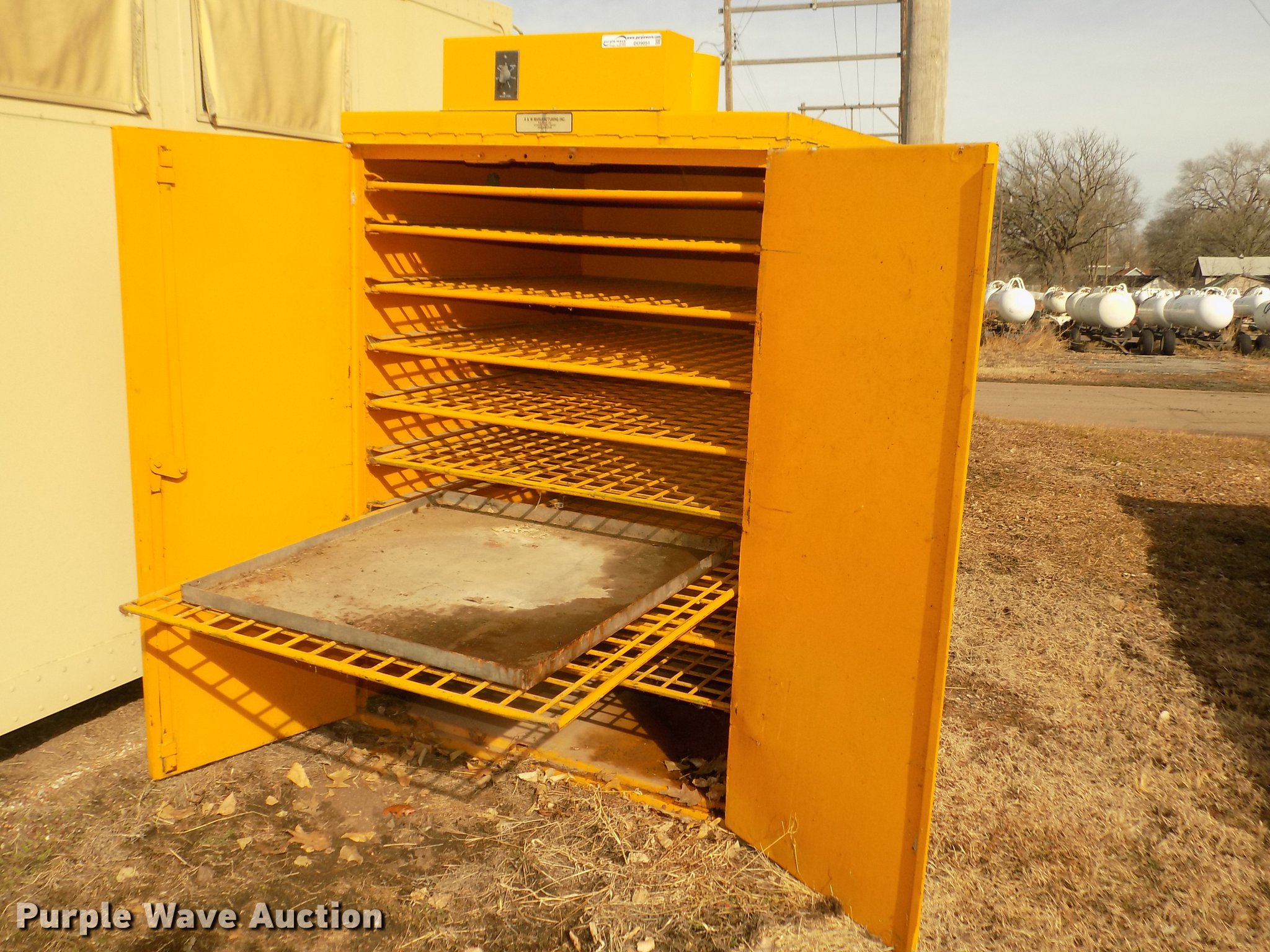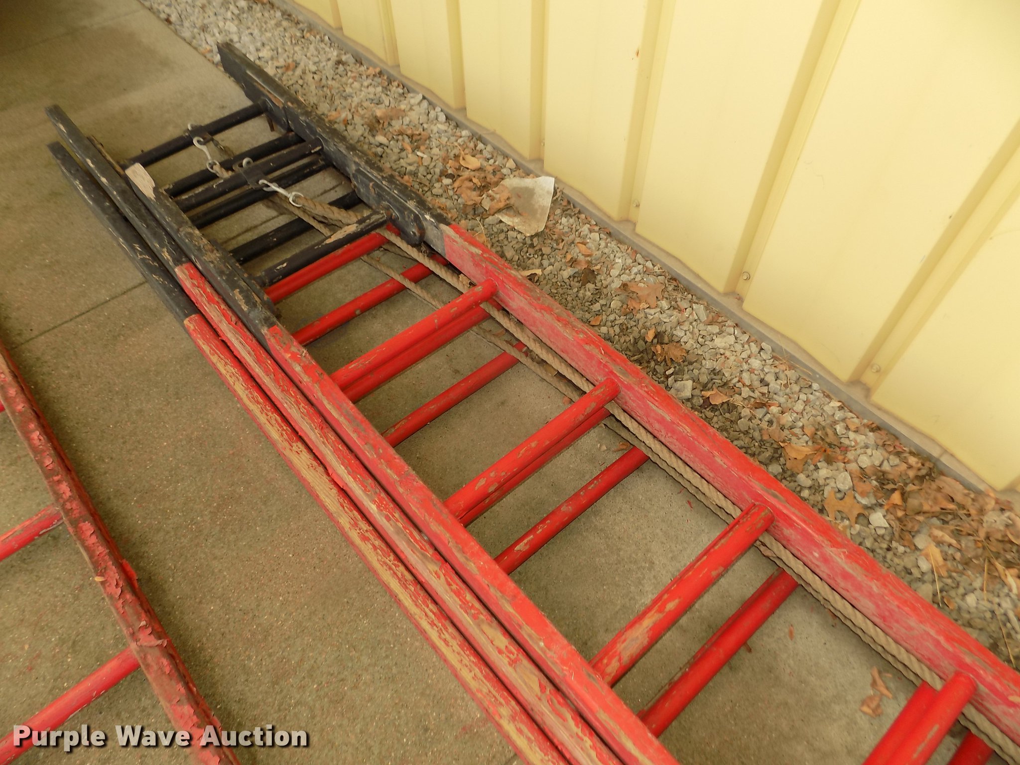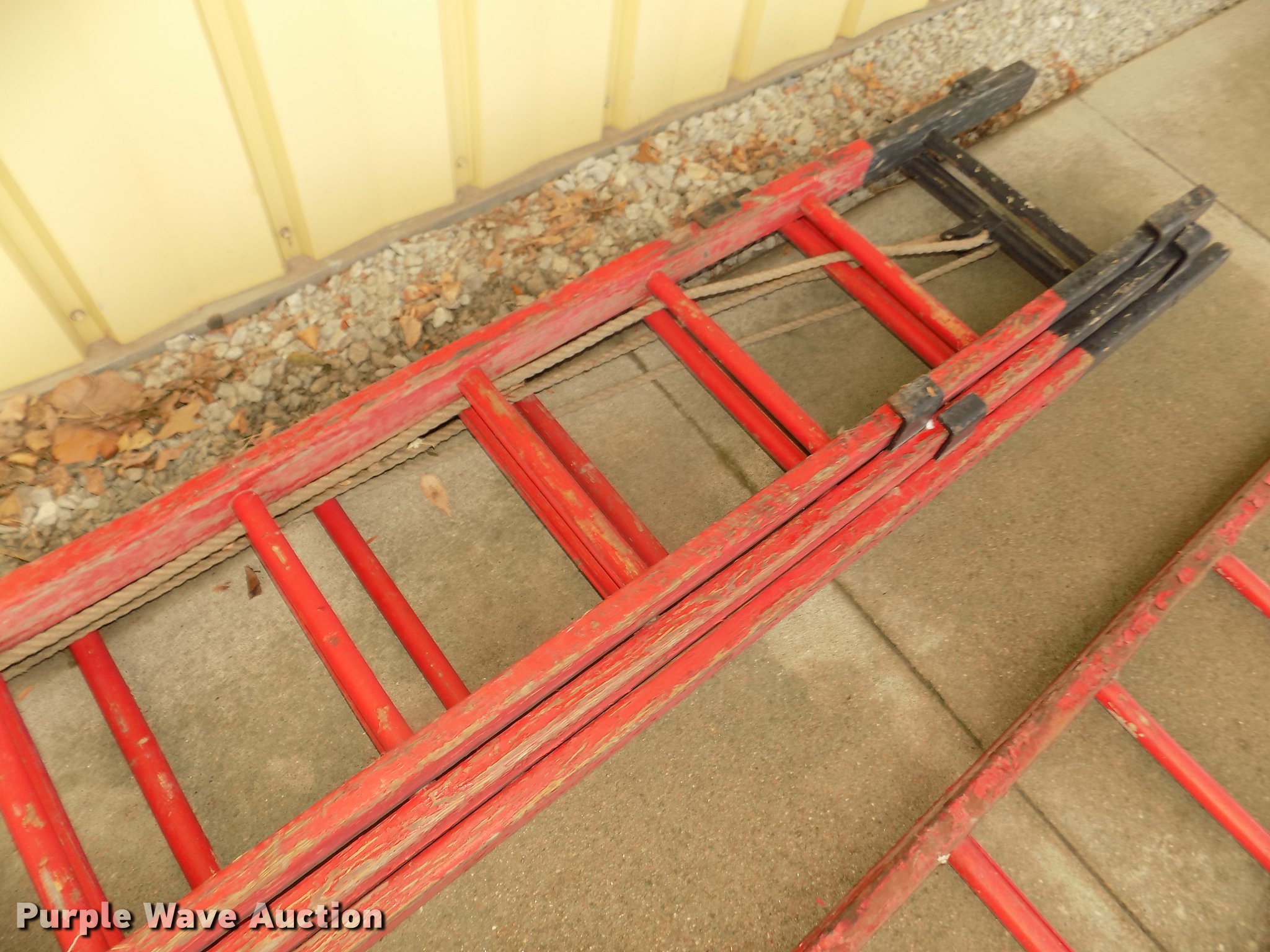 Purple Wave is selling a used Tools in Nebraska. This item is a Tools with the following: 36' three tier wood ladder, Rope, A&W hose dryer, 49"W x 49"D x 74", (9) pull-out shelves, 45" x 45",, Drip pan, 36" x 36", Electric operation