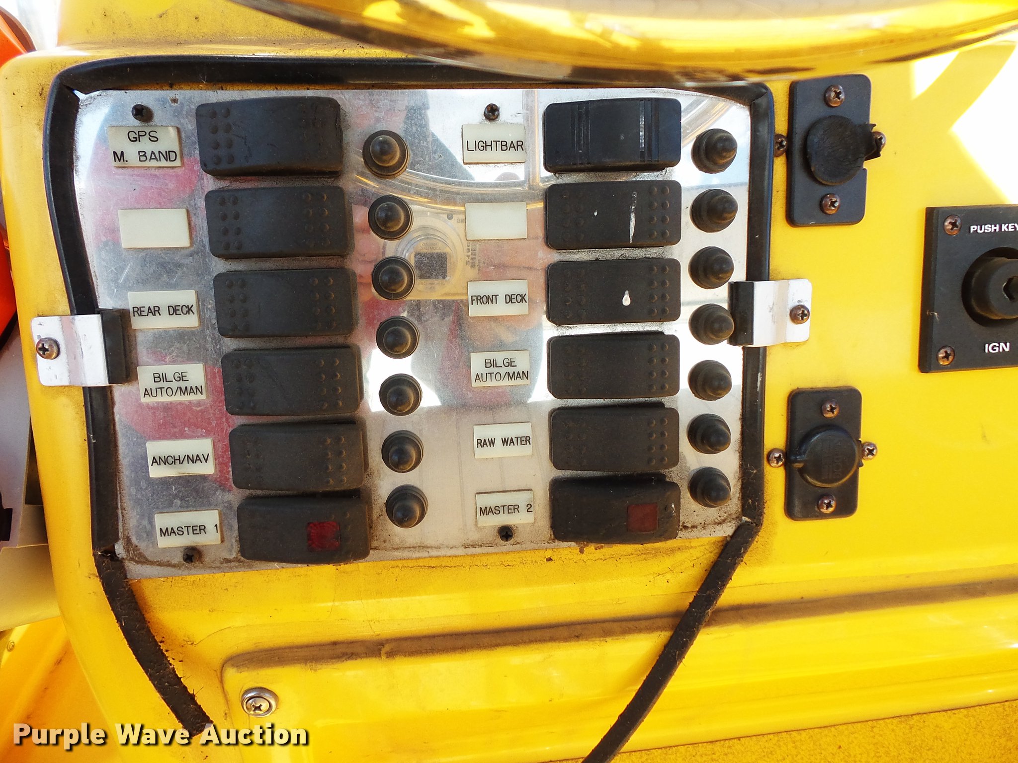 1998 Marine One 2650kat boat. 1,304 hours on portside meter, 1,835 hours on starboard meter, Dual Johnson J200TXECM outboard engines 200 HP, Serial G0452606, G04407602, 28'L x 96"W, (9) storage boxes, Center console storage, Eagle Fish Mark 350 , Raytheon Pathfinder radar SL70, Fiberglass hull, Hull ID WJIV0036C898, 1998 Magic tilt TSC25A trailer 33'L x 80"W, Jackstand, 2 5/16" ball hitch, Tandem axle, 225/75R15 tires, Unit# 0330169, 0330170, 0330171. South Dakota titles. 1M5ADWZ25W1014672. South Dakota Property Management - Game, Fish, and Parks. 20641 State Hwy 1806. Fort Pierre, SD 57532