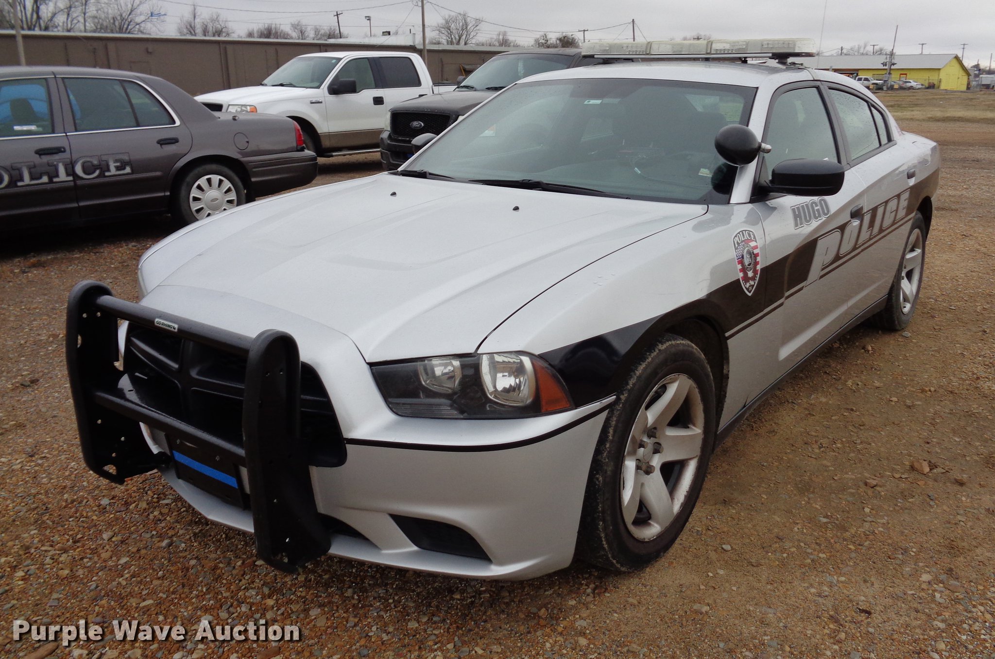 Purple Wave is selling a used Passenger Vehicle in Oklahoma. This item is a 2013 Dodge Charger Police with the following: 104,134 miles on odometer, 5.7L V8 OHV 16V gas engine, Automatic transmission, AC and heat, Tilt, Cruise, AM/FM, Power windows, locks, mirrors, and seat, Cloth interior, 225/60R18 tires, Engine noise, Dead battery, Lights, sirens, push bar, and radio not included