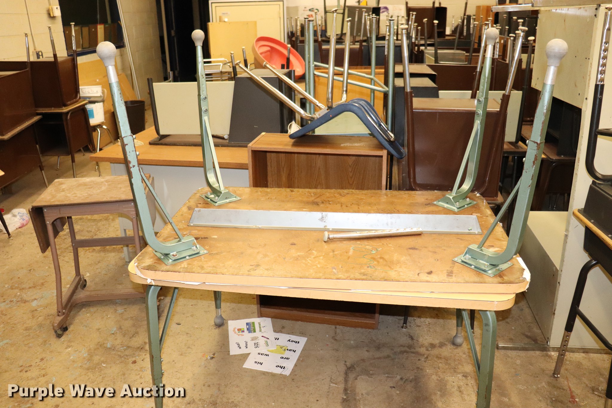 Purple Wave is selling a used Office Supplies and Equip. in Kansas. This item is a Office supplies with the following: Approximately 65 desks, Booth, Coat storage, Chairs, Computer carts, Approximately 6 smart boards, Approximately 5 file cabinets, 60" diameter tables, 29"H, Metal doors and frames