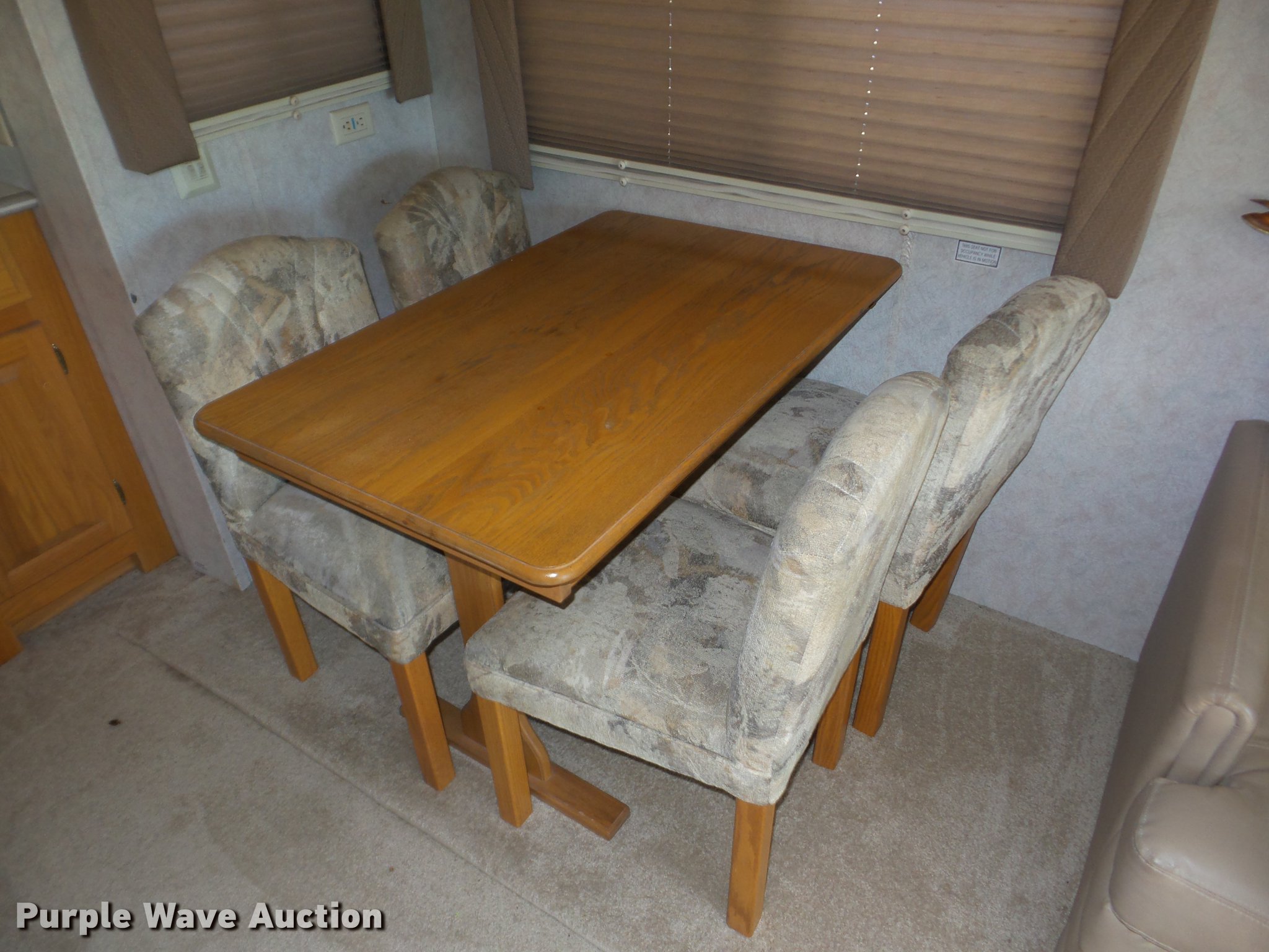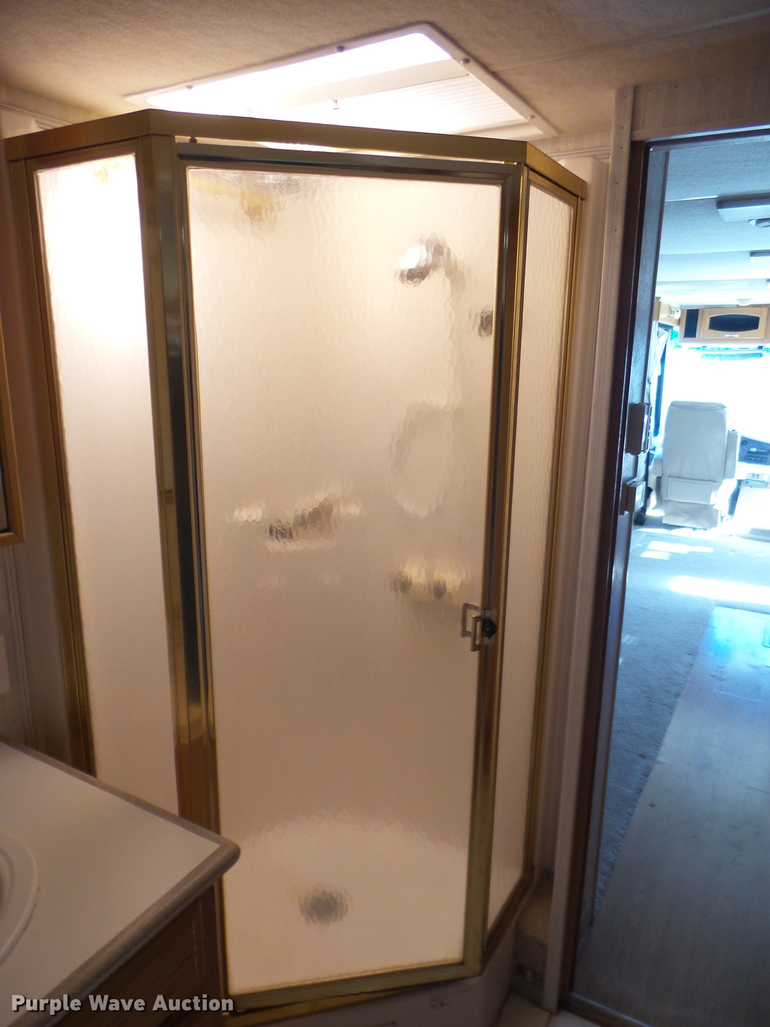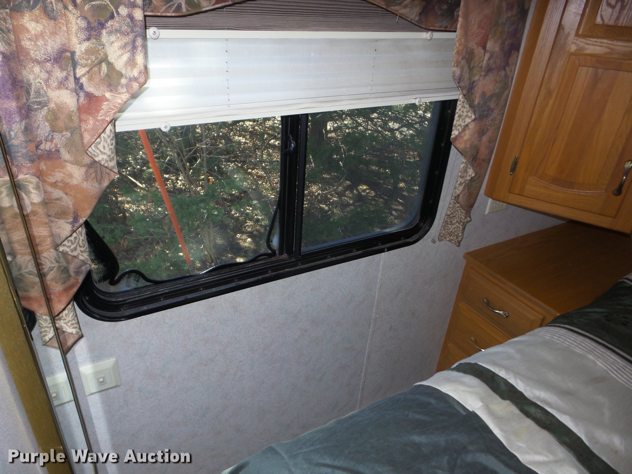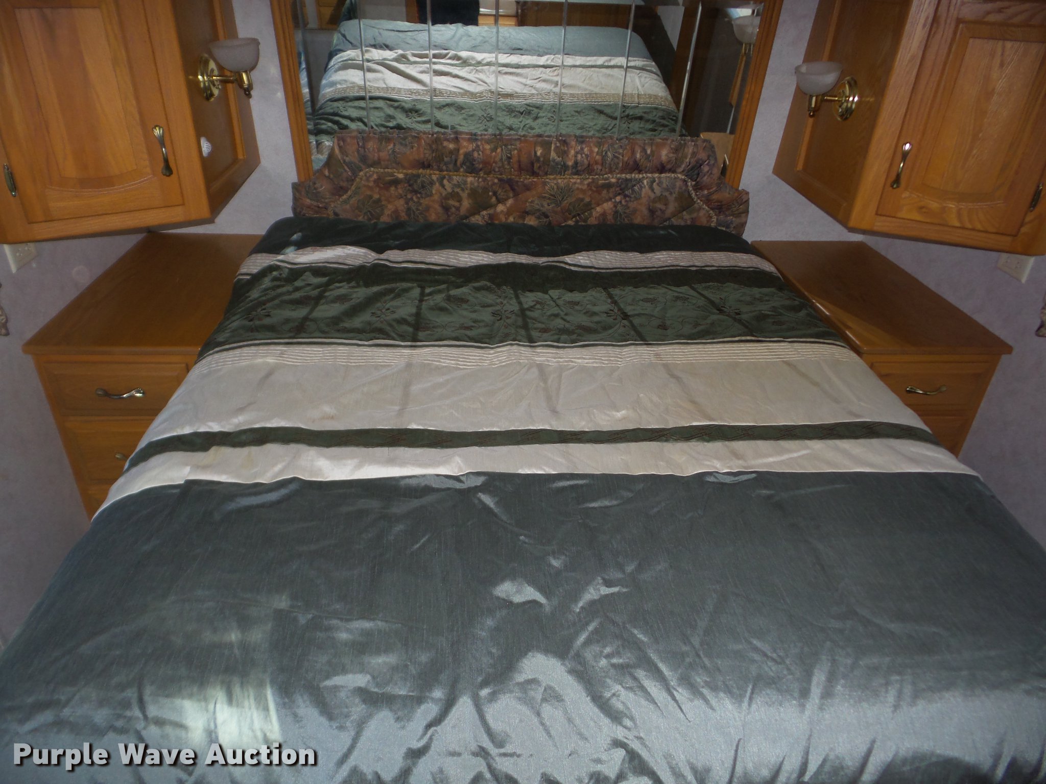 Purple Wave is selling a used RV in Kansas. This item is a 1998 Mountainaire Newman RV with the following: 47,124 miles on odometer, 7.5L V8 gas engine, Automatic transmission, Tandem axle, Ford F550 chassis, AC and heat, Tilt, Cruise, Power mirrors, Backup camera, Class A, 13' slide-out, Dining room table, Chairs, Sink, Three burner stove top, Oven, Sharp convection microwave, Elite refrigerator/freezer, Spendide washer and dryer, Bathroom, Queen size bed, Awning, HWH hydraulic leveling, Air suspension tag axle, LT235/85R16 tires, GVWR 17,000 lbs