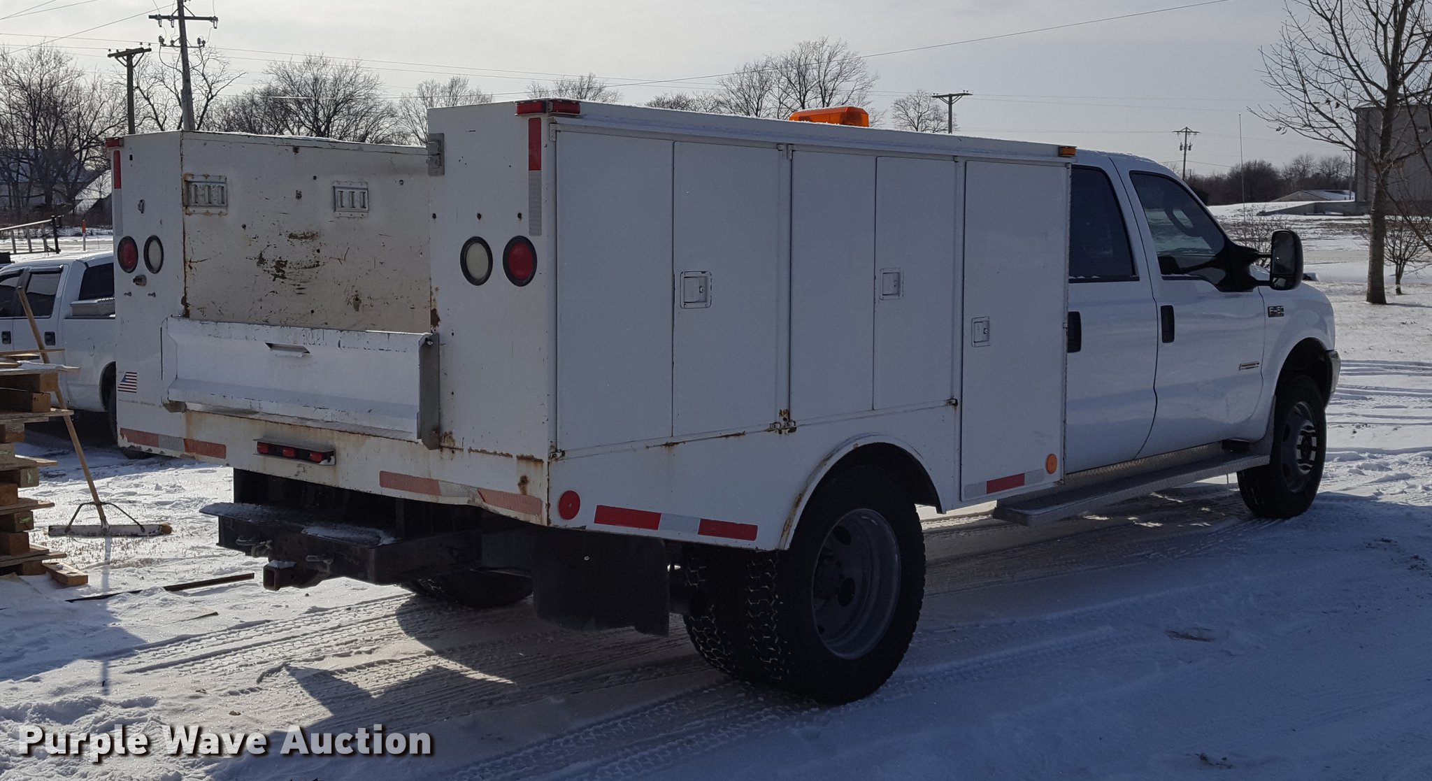Purple Wave is selling a used Service Truck in Missouri. This item is a 2004 Ford F450 utility bed truck with the following: 253,300 miles on odometer, 6.0L V8 OHV 32V turbo diesel engine, Automatic transmission, Four wheel drive, AC and heat, Tilt, Cruise, AM/FM, Manual windows and locks, Vinyl interior, Receiver hitch, Trailer wiring, 245/70R19.5 tires