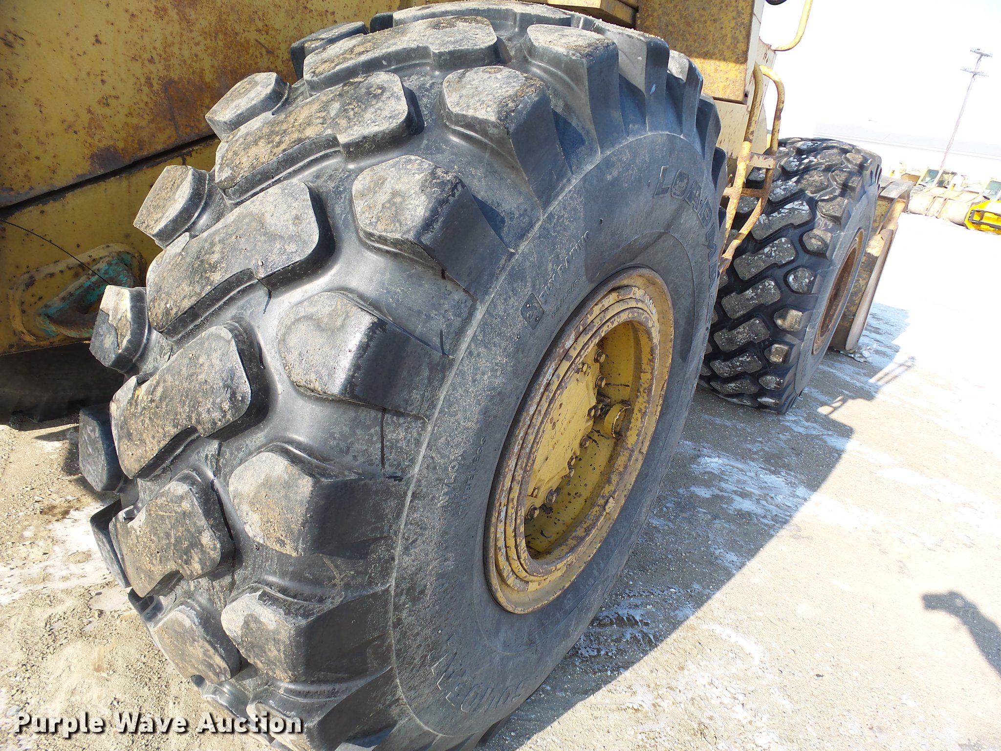 Purple Wave is selling a used Wheel Loader in North Dakota. This item is a 1982 Caterpillar 950B wheel loader with the following: 882 hours on meter, Caterpillar 3304 six cylinder turbo diesel engine, Serial 07Z0410, Powershift transmission, 4F-4R gears, Enclosed cab, Heat, Tilt steering wheel, Air suspension seat, Two-lever bucket controls, Wipers, Front and rear work lights, Backup alarm, 108"W general purpose bucket, Bolt-on cutting edge, 23.5-25 tires, Serial 31RG1015