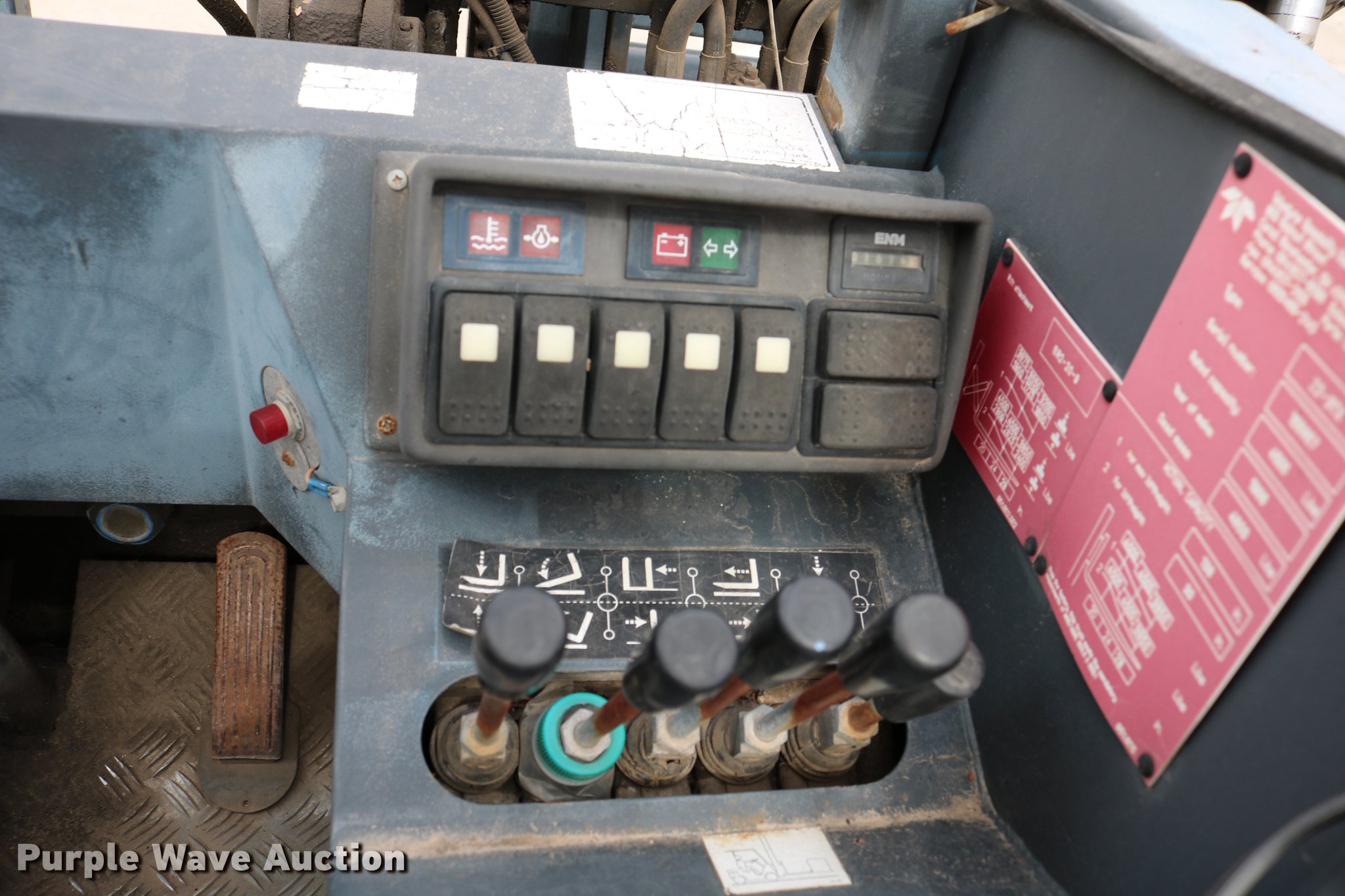 Teledyne Z2-3TX forklift. 1,675 hours on meter, Kubota D1105-TE three cylinder turbo diesel engine, Hydrostatic transmission, OROPS, Backup alarm, 4,500 lbs maximum lift capacity, 138" maximum lift height, Two mast stages, 48"L four tine forks Side shift, Mast tilt, (2) hydraulic outriggers, 29 x 12.5-15 tires, No engine hood, No battery, Foot pedal cable needs adjusted Engine will not go into high idle, Serial 106957. Salina Concrete Products. 339 N Chica. Salina, KS 67401
