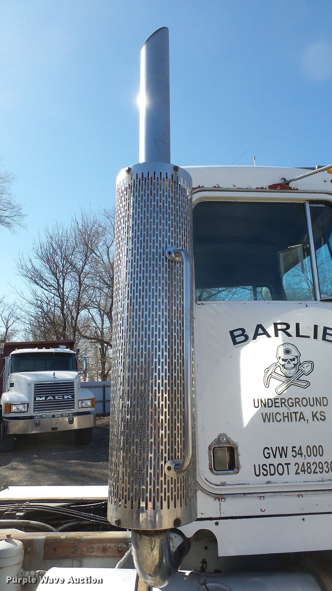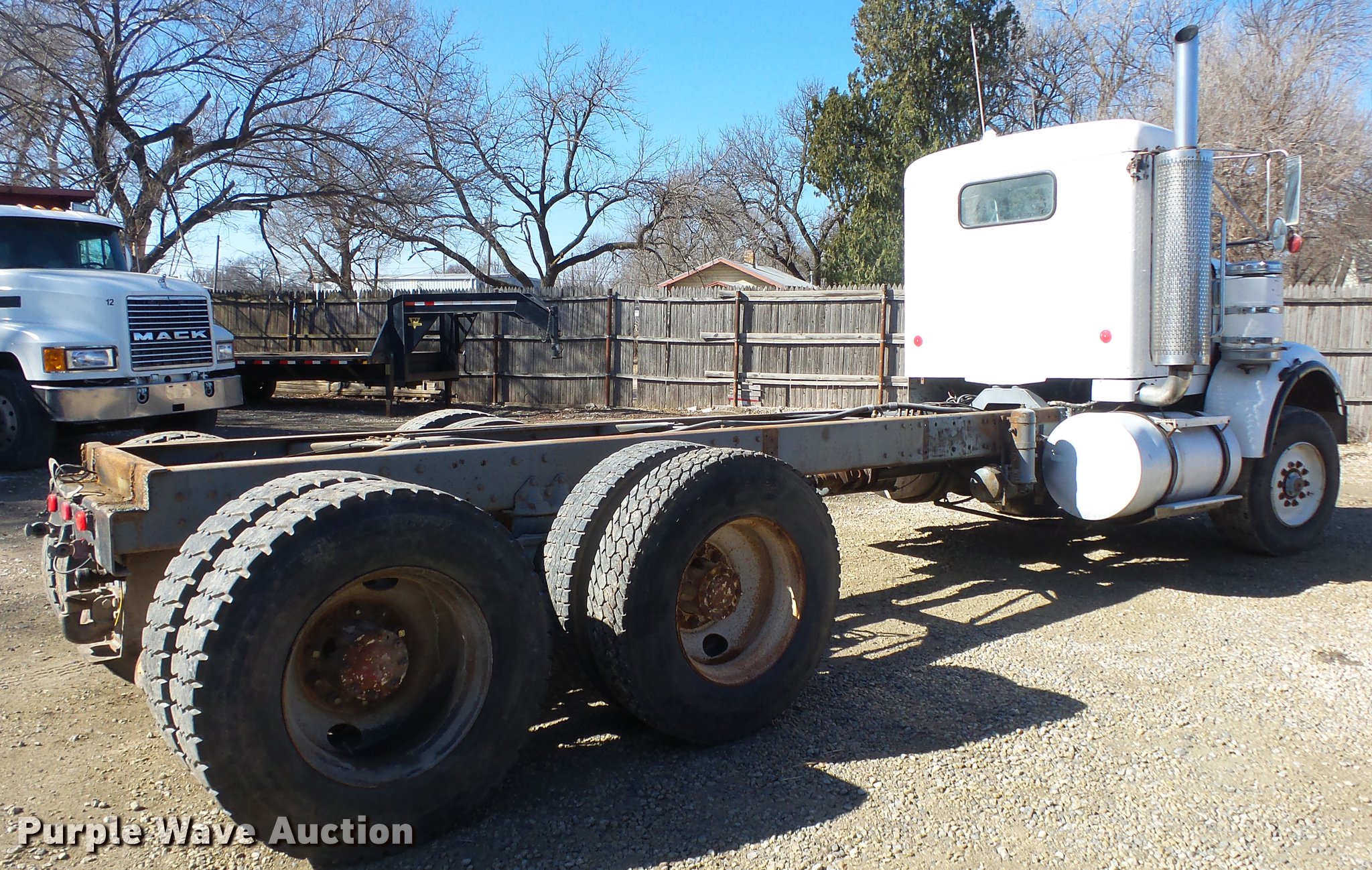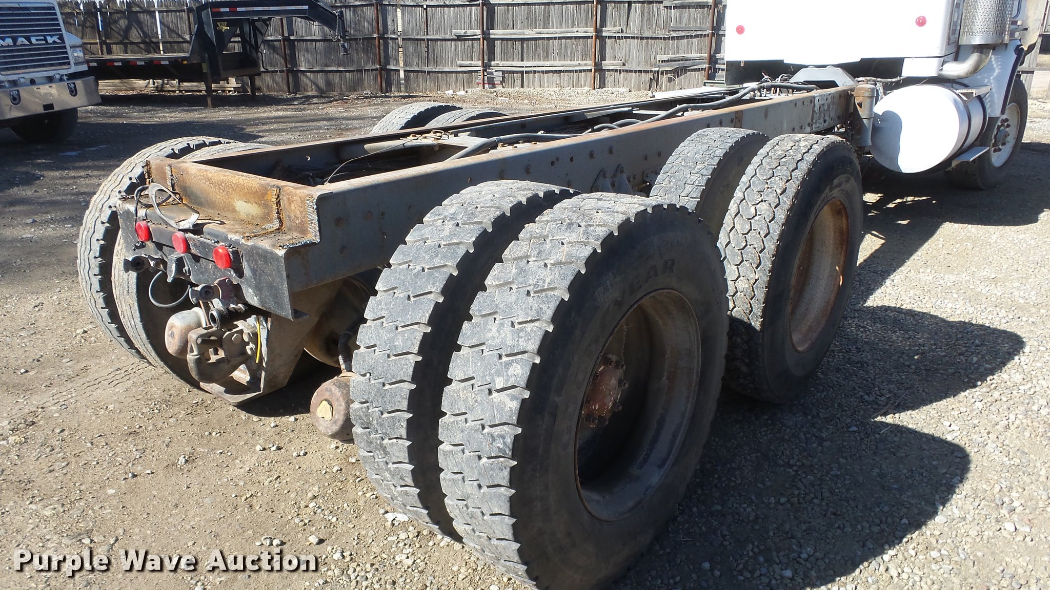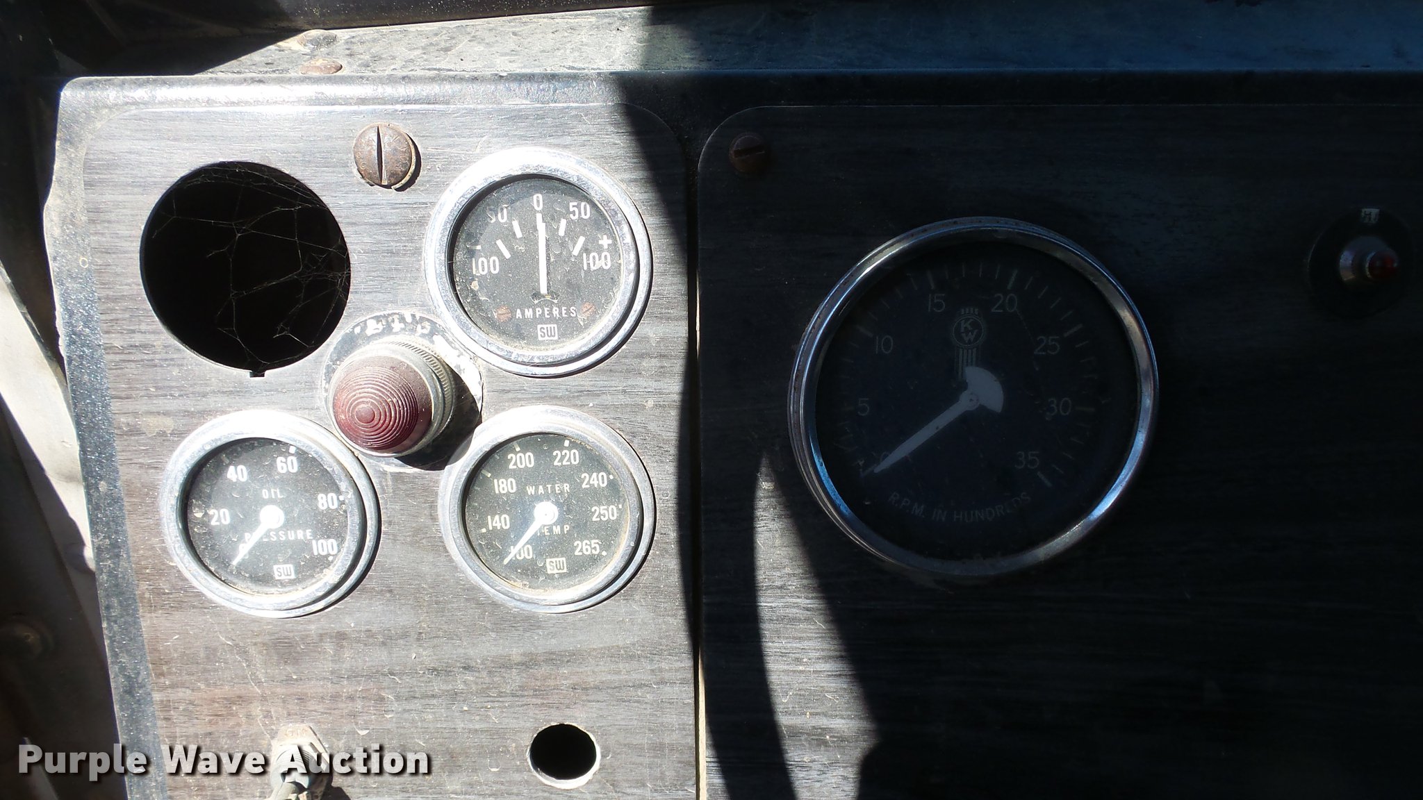 Purple Wave is selling a used Truck Chassis in Kansas. This item is a 1973 Kenworth C523 truck chassis with the following: 337,226 miles on odometer, Turbo diesel engine, Eaton Fuller 13 speed manual transmission, Tandem axle, Inter-axle differential lock, Fifth wheel lock, Heat, Air suspension seat, PTO, Single exhaust stack, Dual fuel tanks, Pintle hitch, 17' from rear of cab to rear of frame, Spring suspension, Air brakes, 385/65R22.5 front tires, 11R24.5 rear tires