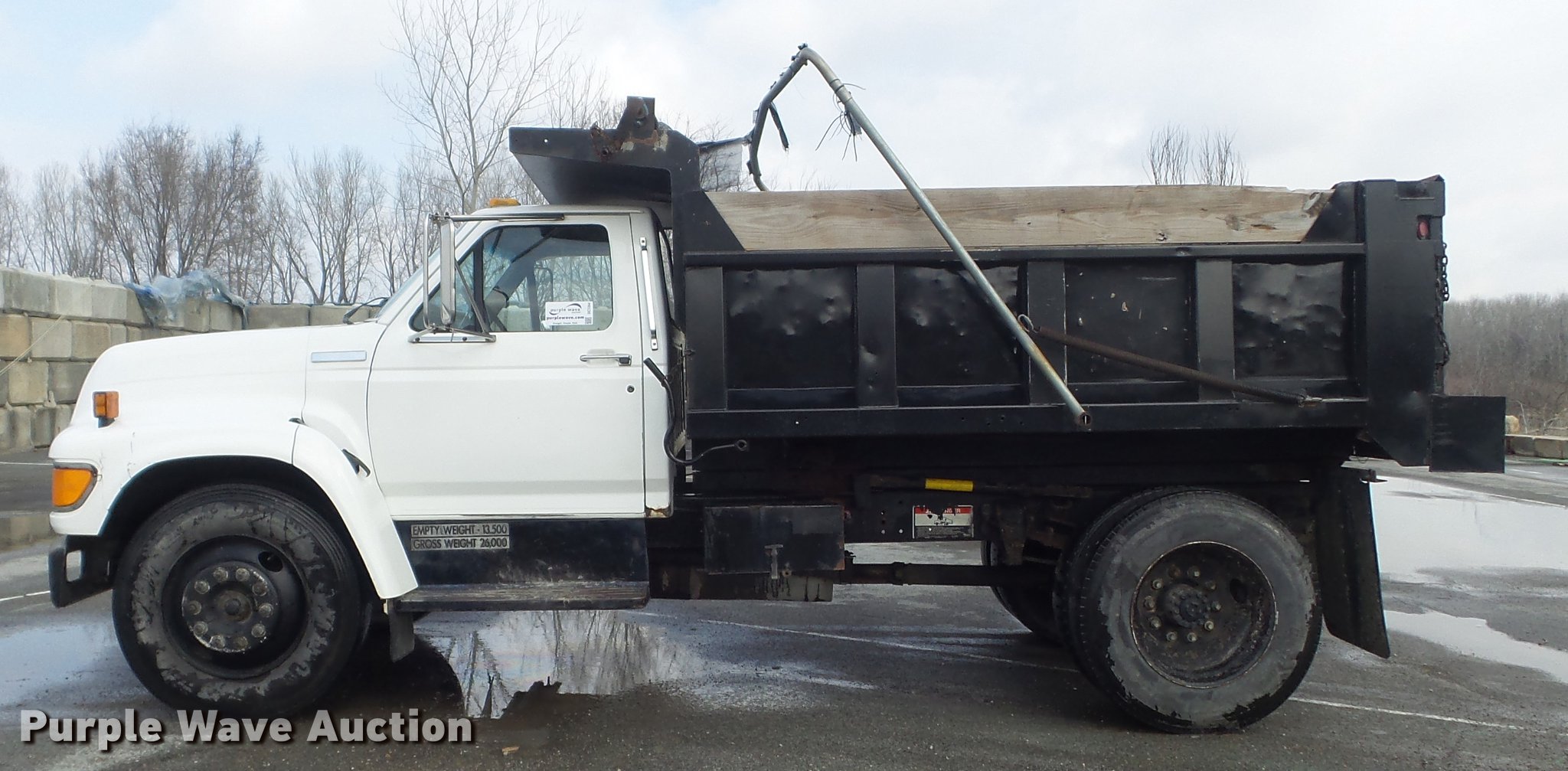 This 1995 Ford F800 dump truck will sell to the highest bidder regardless of price.