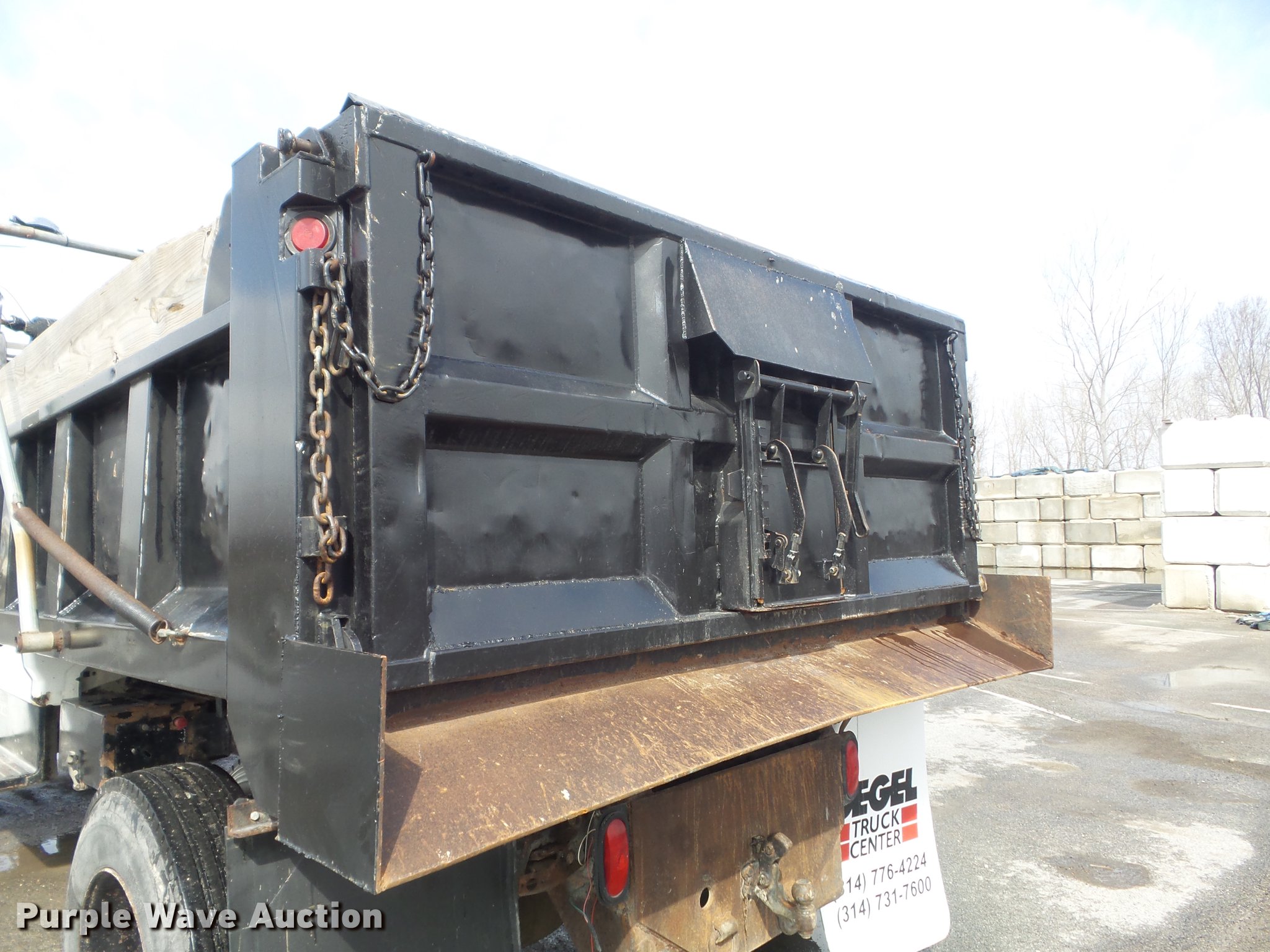 1995 Ford F800 dump truck. 223,671 miles on odometer, Cummins ISB 5.9L L6 turbo diesel engine 175 HP, Serial 45142586, Automatic transmission, Single axle, AC and heat, AM/FM, Trailer brake controller, PTO, Rugby steel dump bed 10'L x 96"W, 24" side height, 10" side board height, Single ram hoist, Manual operated end gate, Roll tarp Torn, Single fuel tank, Pintle hitch, 154" wheelbase, Spring suspension, Hydraulic brakes, 10R22.5 tires, Parking brake light stays on, Non-operational radio, Driver door window inoperable, Transmission issues with overdrive. Missouri title. Title distribution may be delayed up to 14 days from verification of funds. 1FDNF80C3SVA46646. Bacchus Concrete and Construction. Saint Charles, MO 63304