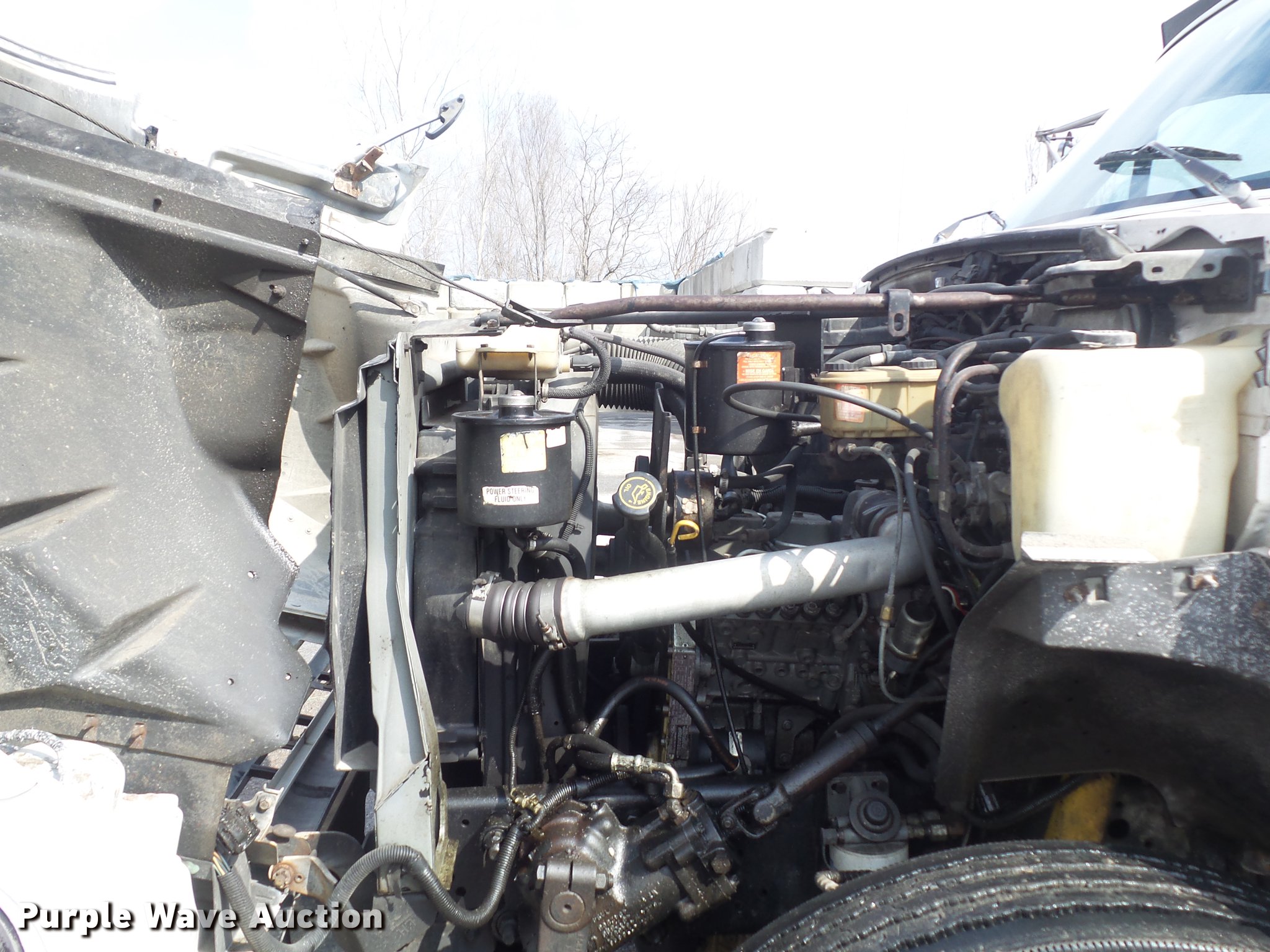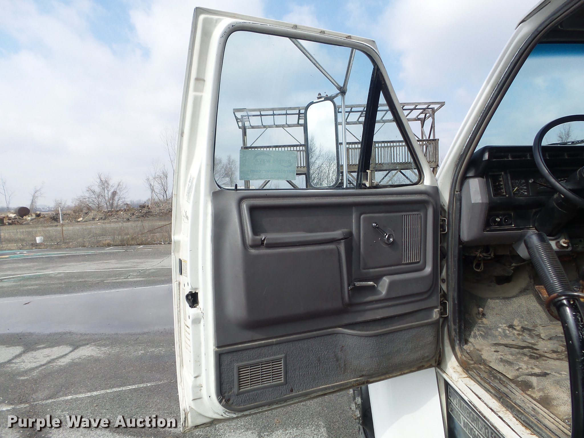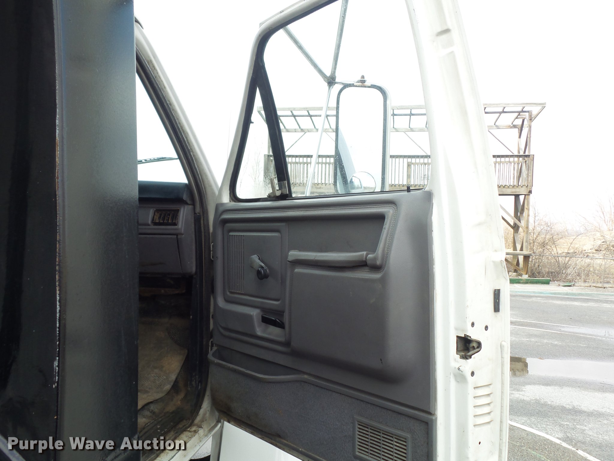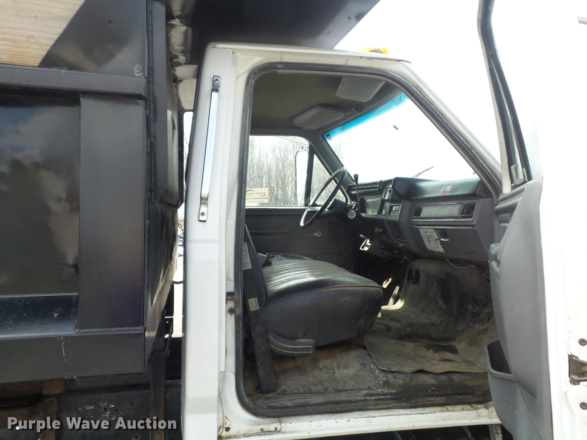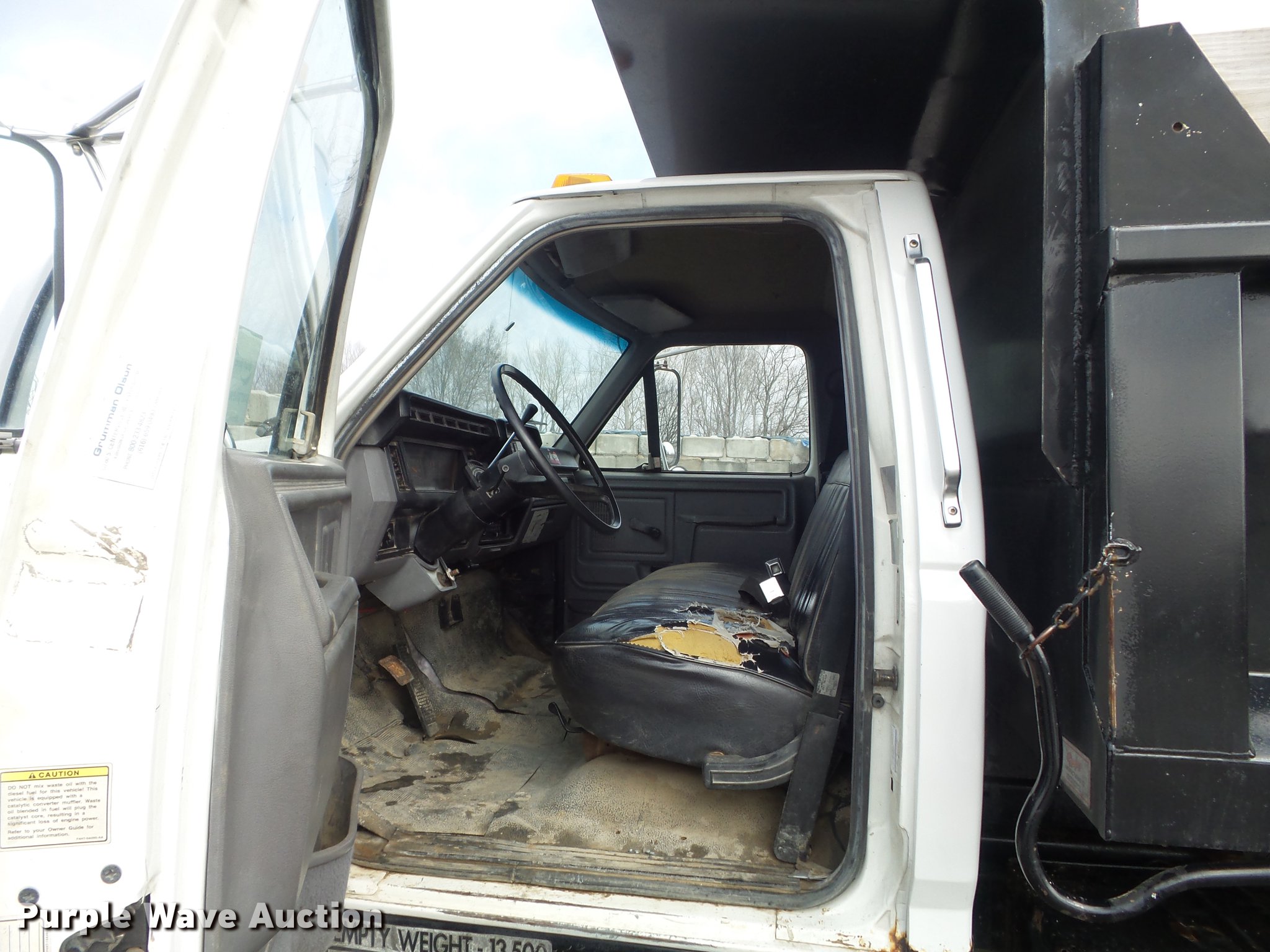 Purple Wave is selling a used Construction Dump Truck in Missouri. This item is a 1995 Ford F800 dump truck with the following: 223,671 miles on odometer, Cummins ISB 5.9L L6 turbo diesel engine, 175 HP, Serial 45142586, Automatic transmission, Single axle, AC and heat, AM/FM, Trailer brake controller, PTO, Rugby steel dump bed, 10'L x 96"W, 24" side height, 10" side board height, Single ram hoist, Manual operated end gate, Roll tarp, Torn,, Single fuel tank, Pintle hitch, 154" wheelbase, Spring suspension, Hydraulic brakes, 10R22.5 tires, Parking brake light stays on, Non-operational radio, Driver door window inoperable, Transmission issues with overdrive