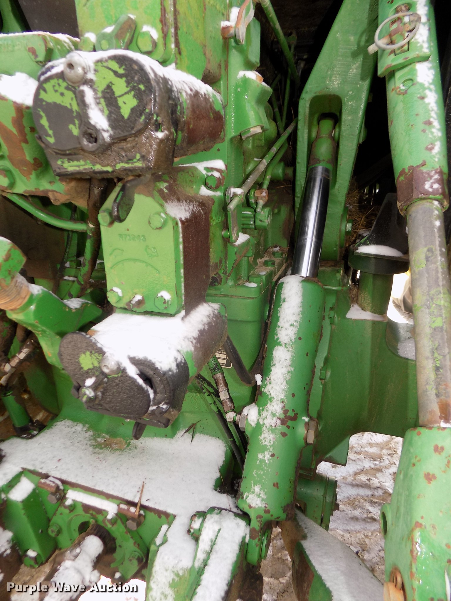Purple Wave is selling a used Tractor in Nebraska. This item is a 1983 John Deere 4850 MFWD tractor with the following: 12,241 hours on meter, John Deere 7.6L six cylinder turbo diesel engine, Serial RG6466A244815, Powershift transmission, 15F-4R gears, EROPS, Differential lock, AC and heat, Tilt steering wheel, AM/FM, Spring suspension seat, Block heater, Three point, Top link, Quick attach, Large 1000 PTO, Reducer to small 1000 PTO, Draw bar, Rear hydraulic remote set, (10) suitcase weights, 102 gallon fuel tank, Front fenders, 18.4-26 front tires, 20.8R38 dual rear tires, Serial RW4850P002108
