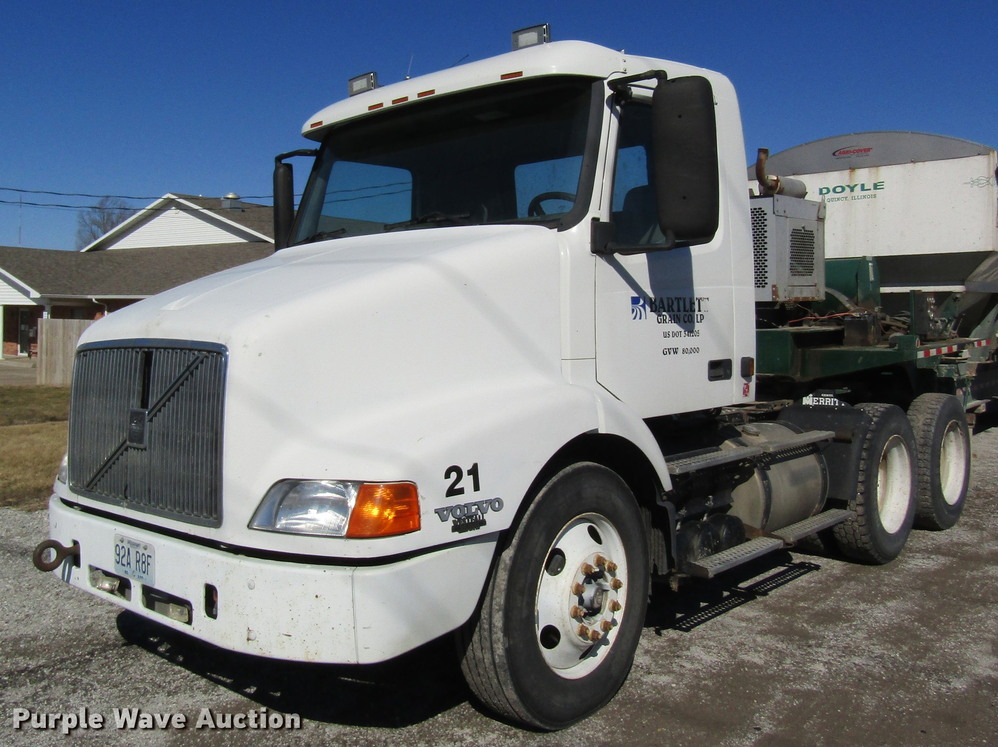 Purple Wave is selling a used Truck Tractor in Missouri. This item is a 2001 Volvo VNM semi truck with the following: 882,575 miles on odometer, Detroit Diesel Series 60 12.7L L6 turbo diesel engine, Eaton Fuller FRO15210C 10 speed manual transmission, Tandem axle, Inter-axle differential lock, AC and heat, AM/FM, Power passenger window, Heated mirrors, Air suspension seat, Exterior visor, Front tow hooks, Single exhaust stack, Aluminum deck plate, Sliding fifth wheel plate, Dual fuel tanks, Mud flaps, Air suspension, Air brakes, 285/75R24.5 tires, GVWR 50,000 lbs, CB not included, Unit# 21