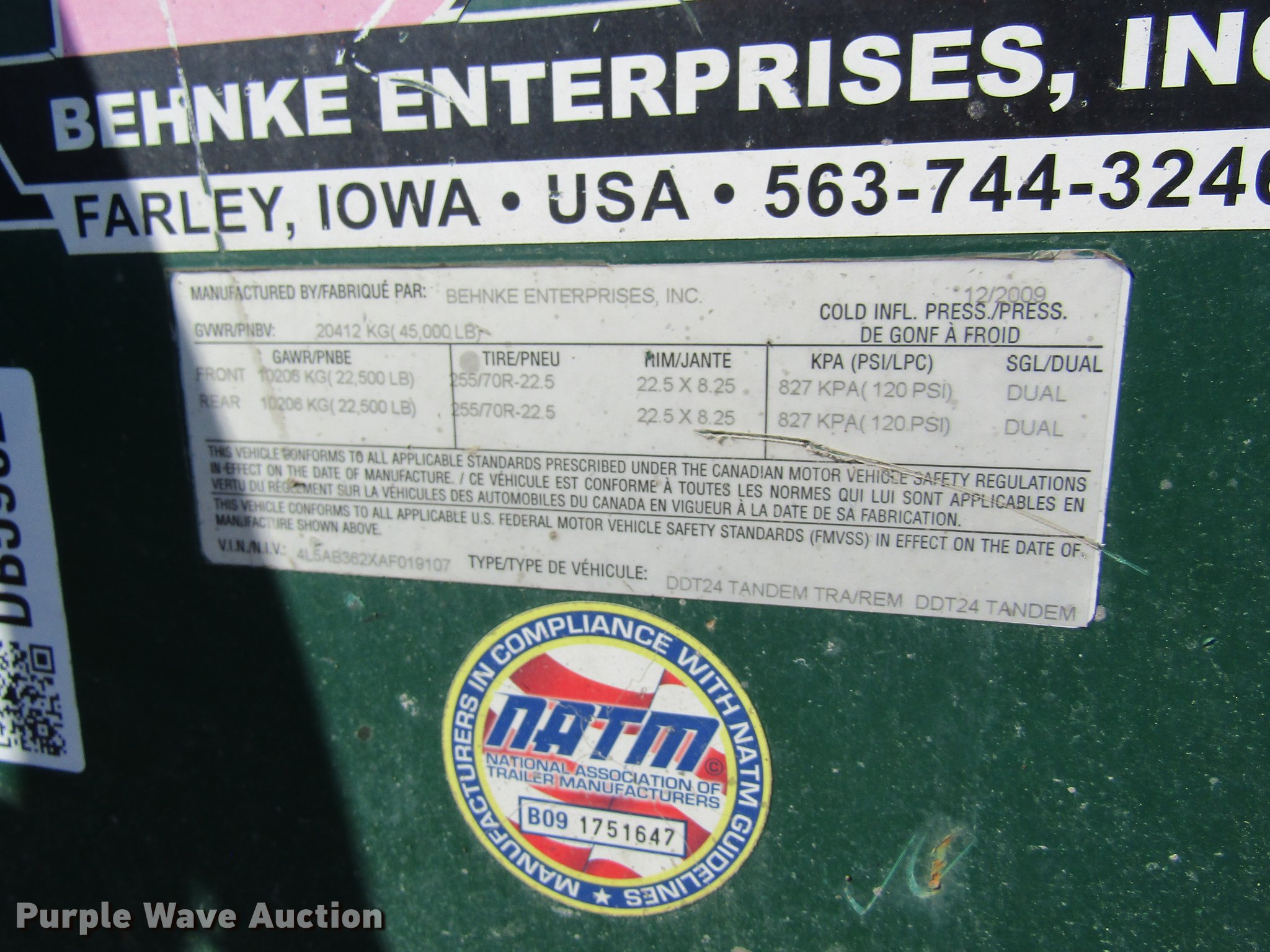 Purple Wave is selling a used Fertilizer or Feed Delivery Trailer in Missouri. This item is a 2010 Doyle dry fertilizer tender trailer with the following: Benhke B-B DDT24 trailer frame, 34'L x 102"W, Doyle tender box, (3) compartments, 20'L x 10" diameter auger, Kubota four cylinder diesel engine, 1,093 hours on meter, Hydraulic lever controls, Roll tarp, Rear ladder, Steel construction, Fifth wheel plate, Dual leg landing gear, Spring suspension, Air brakes, Tandem axle, Steel wheels, 255/70R22.5 tires, GVWR 45,000 lbs, Unit# 47