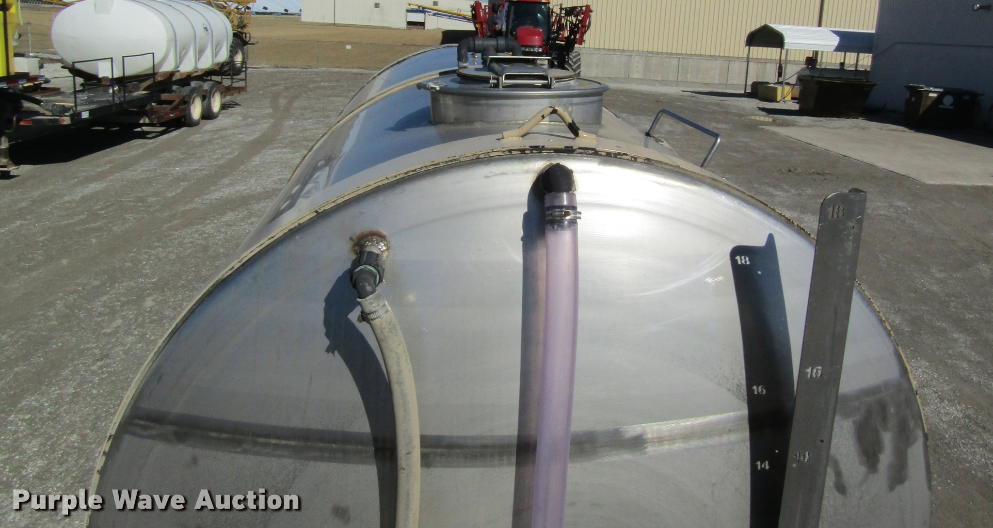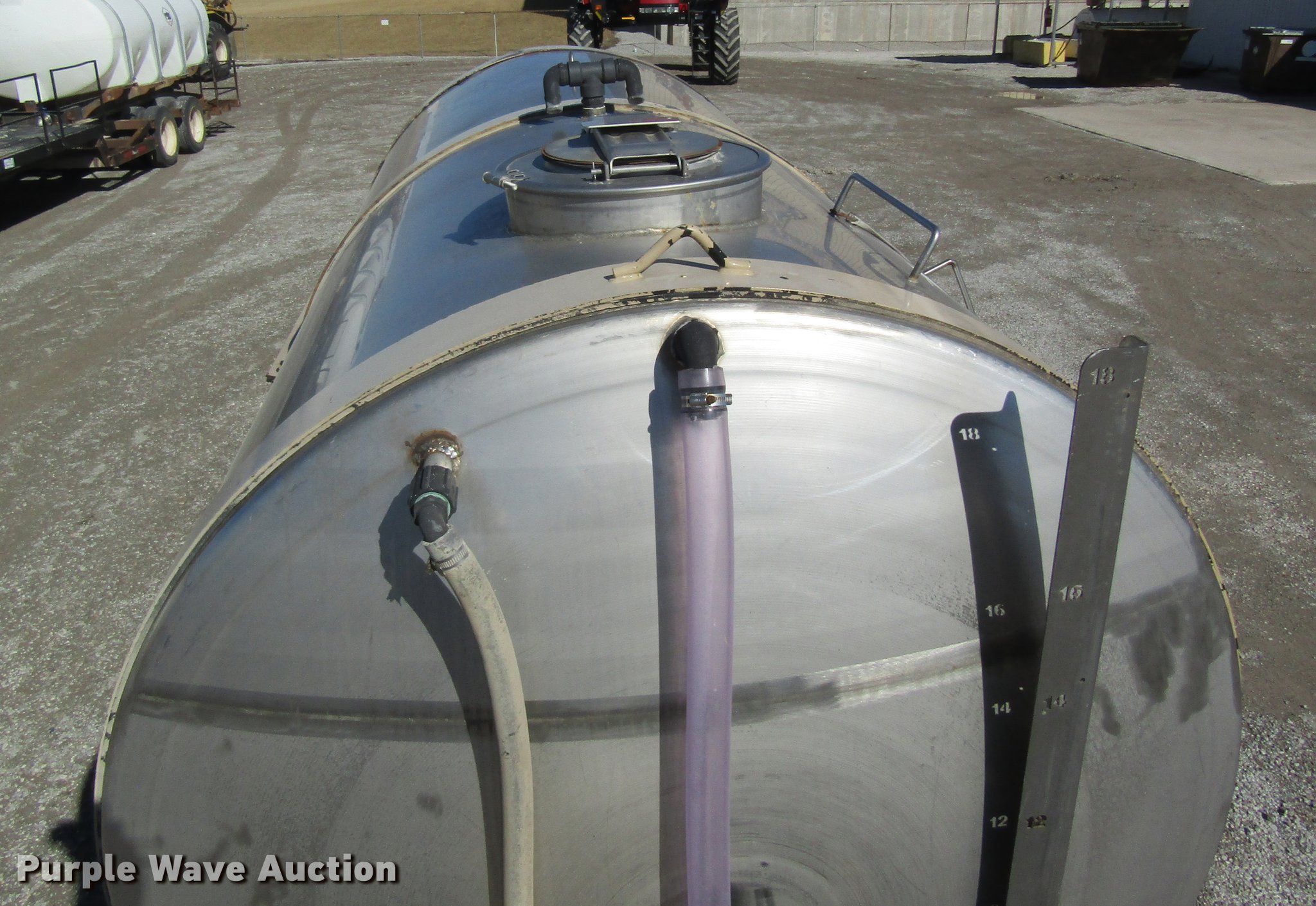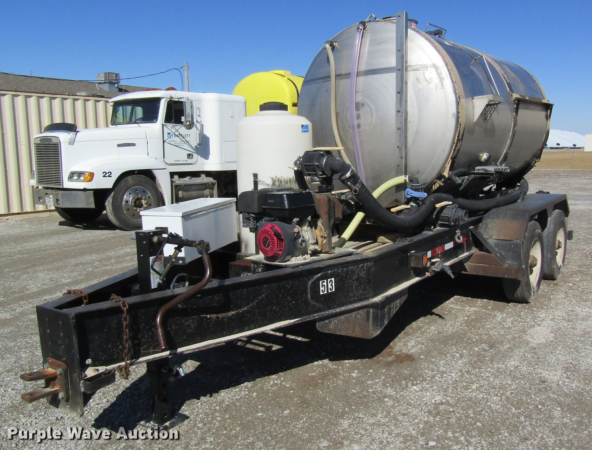 Purple Wave is selling a used Tank Trailer in Missouri. This item is a 1998 Behnke nurse tank trailer with the following: 22'L x 8'W, 1,800 gallon stainless steel tank, Honda GX390 gas engine, Toolbox, Wood deck, Steel construction, Pin hitch, Single leg landing gear, Spring suspension, Electric brakes, Tandem axle, Steel wheels, 285/75R17.5 tires, Unit# 53