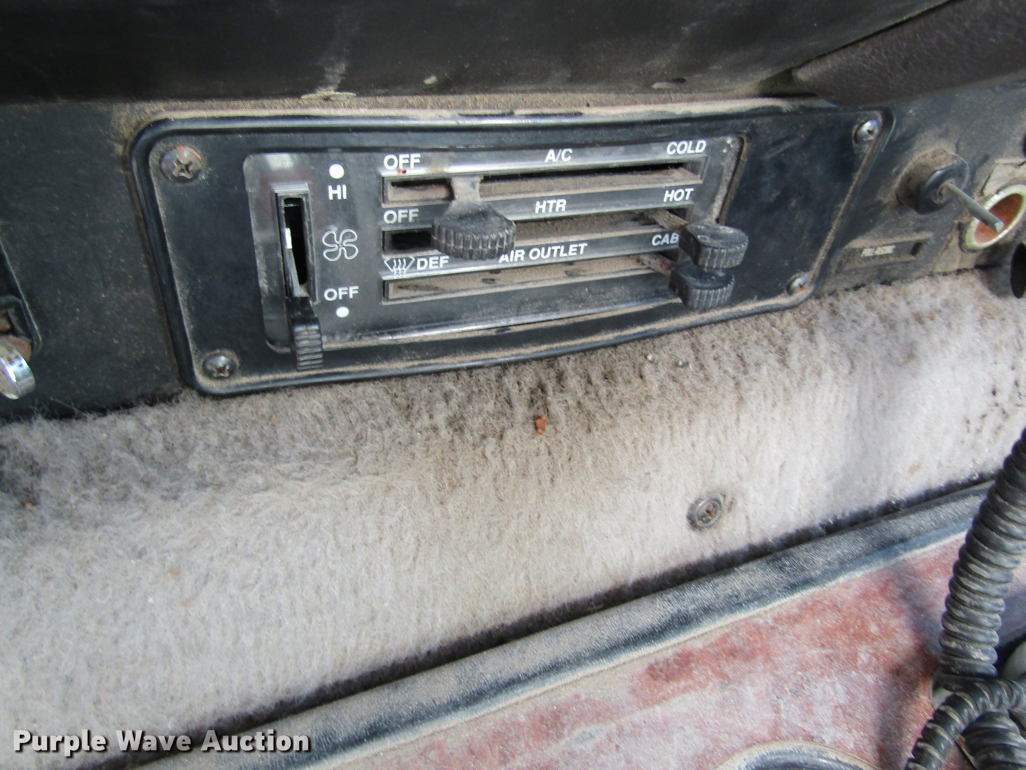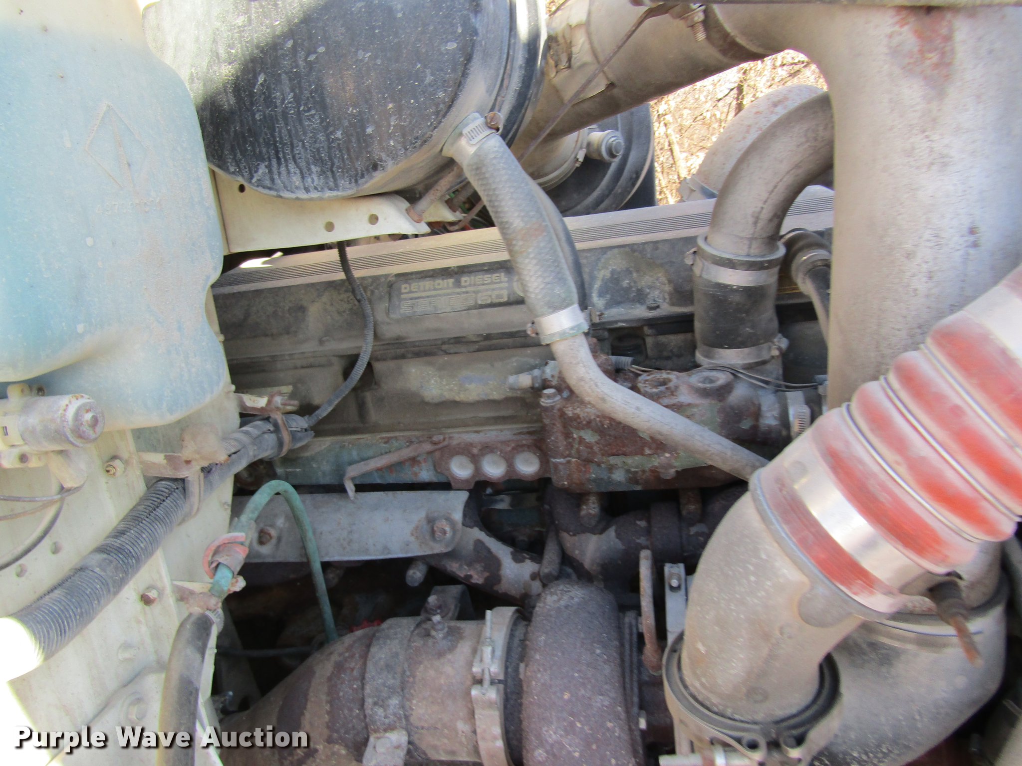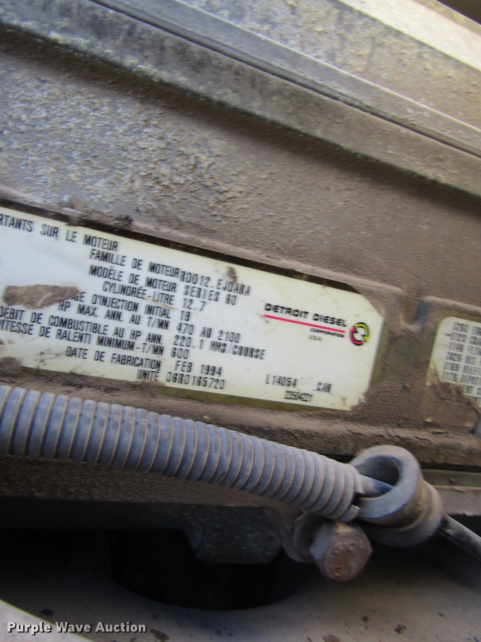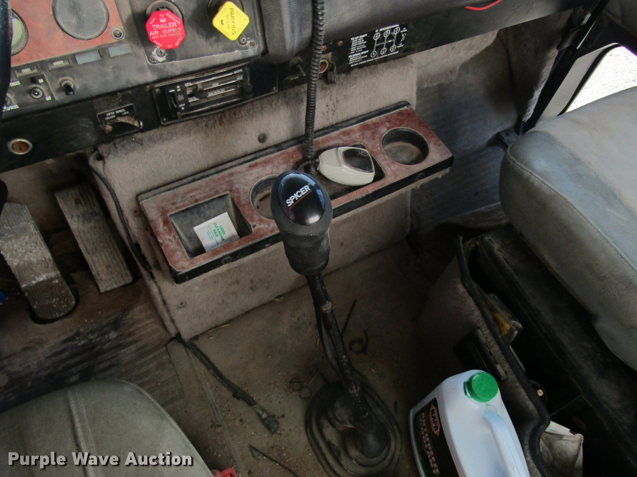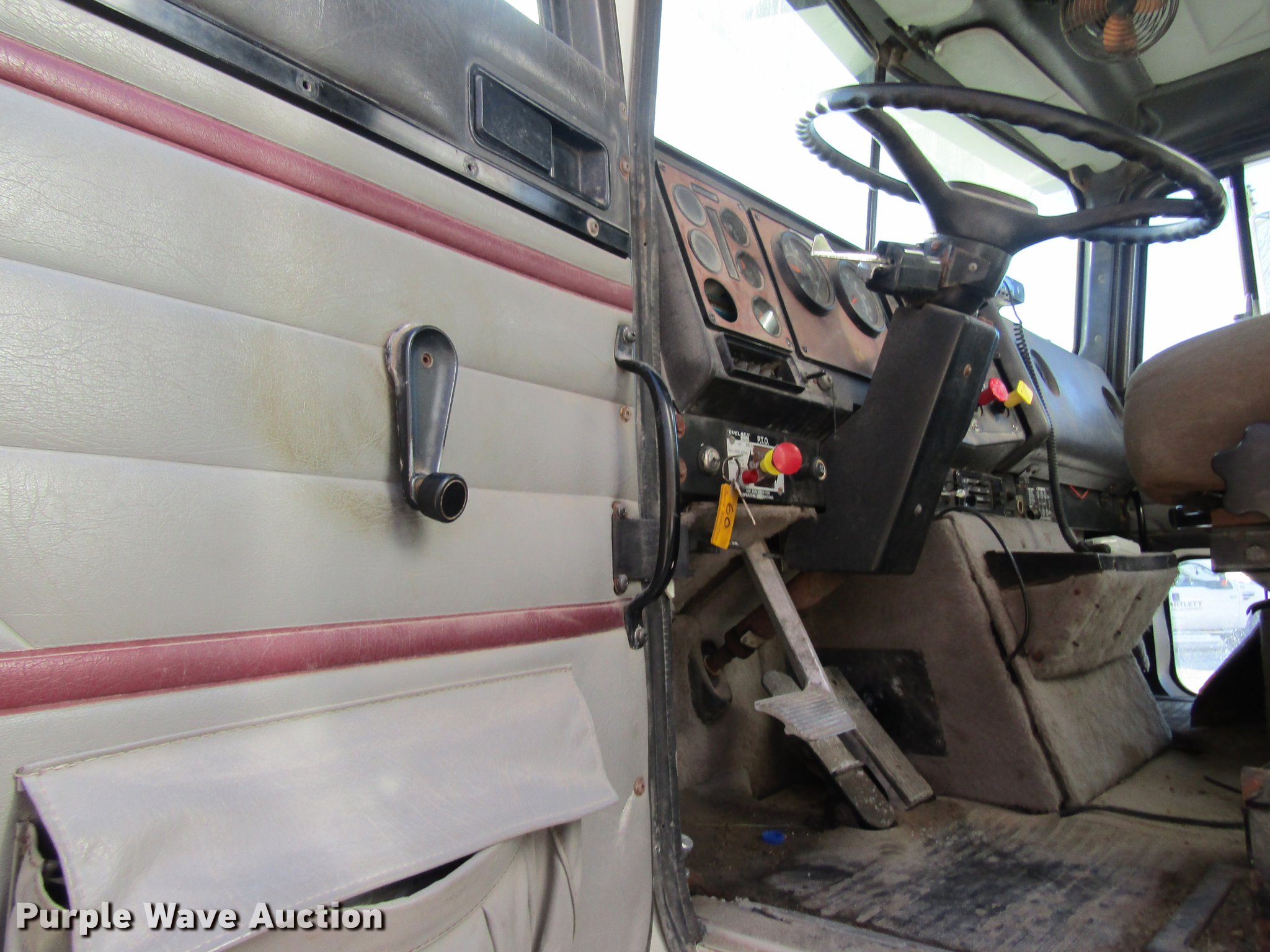 Purple Wave is selling a used Fertilizer or Feed Delivery Truck in Missouri. This item is a 1994 International 9200 dry fertilizer tender truck with the following: 194,619 miles on odometer, Detroit Diesel Series 60 six cylinder turbo diesel engine, 10 speed manual transmission, Inter-axle differential lock, Heat, AM/FM/cassette, Air suspension seat, Tyler tender box, 16'L x 8'W, (2) hoppers, 16'L x 9" diameter auger, Roll tarp, Ladder, Driver side bed ramps, Exterior visor, Single rear exhaust stack, Dual fuel tanks, Mud flaps, Spring suspension, 285/75R24.5 tires, GVWR 52,000 lbs, FAWR 12,000 lbs, IAWR 20,000 lbs, RAWR 20,000 lbs, Tank covering damaged, Dash damaged, CB not included, Unit# 60
