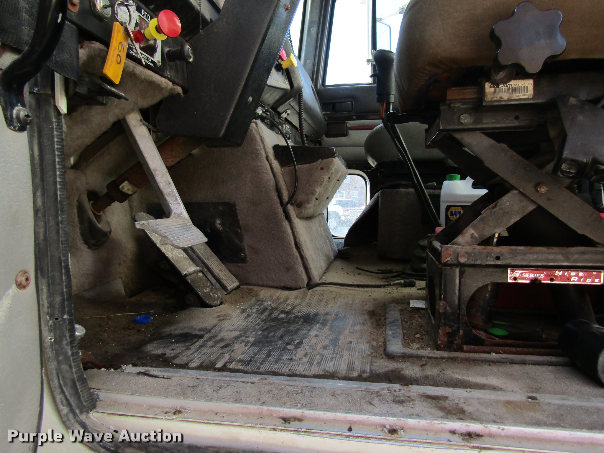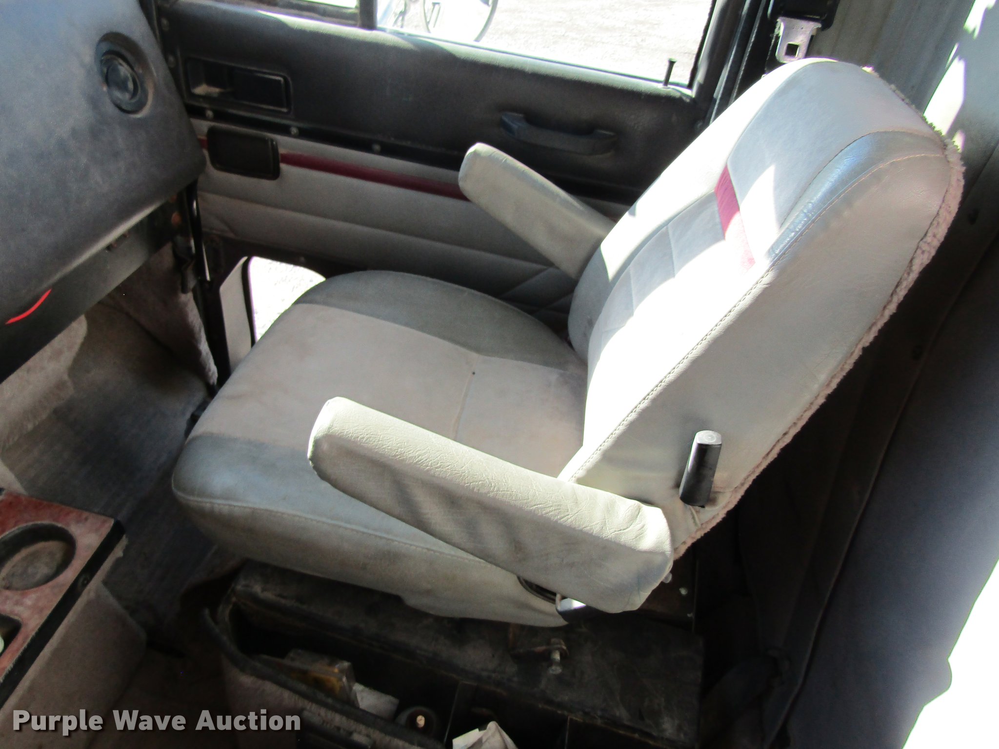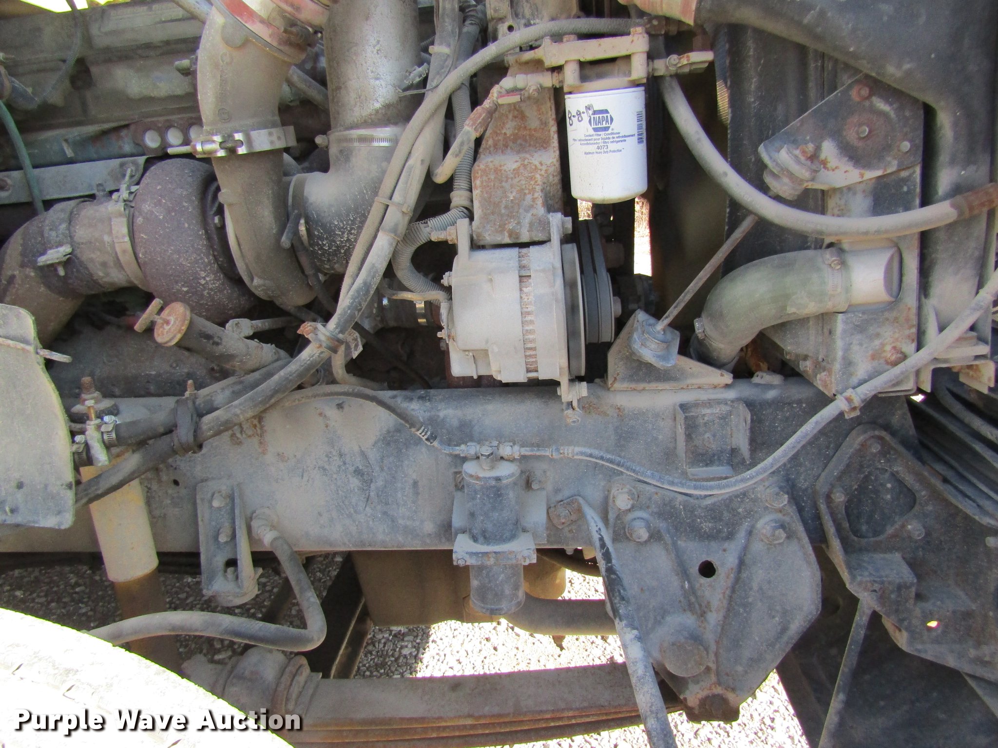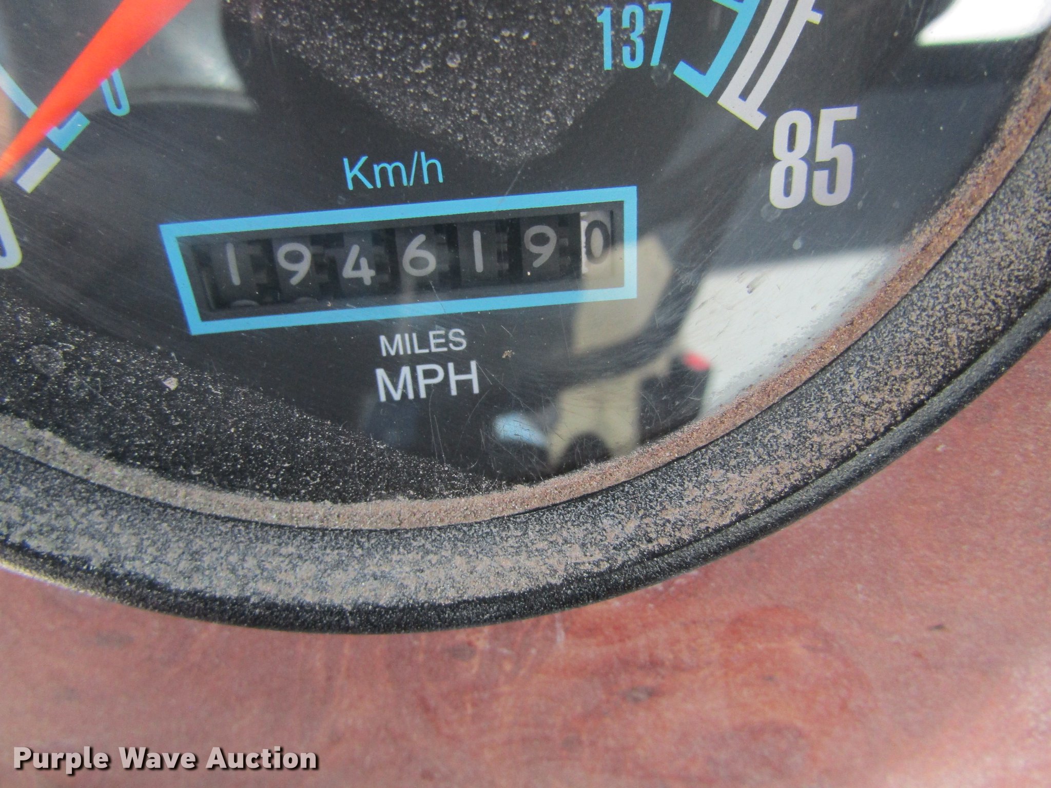 Purple Wave is selling a used Fertilizer or Feed Delivery Truck in Missouri. This item is a 1994 International 9200 dry fertilizer tender truck with the following: 194,619 miles on odometer, Detroit Diesel Series 60 six cylinder turbo diesel engine, 10 speed manual transmission, Inter-axle differential lock, Heat, AM/FM/cassette, Air suspension seat, Tyler tender box, 16'L x 8'W, (2) hoppers, 16'L x 9" diameter auger, Roll tarp, Ladder, Driver side bed ramps, Exterior visor, Single rear exhaust stack, Dual fuel tanks, Mud flaps, Spring suspension, 285/75R24.5 tires, GVWR 52,000 lbs, FAWR 12,000 lbs, IAWR 20,000 lbs, RAWR 20,000 lbs, Tank covering damaged, Dash damaged, CB not included, Unit# 60