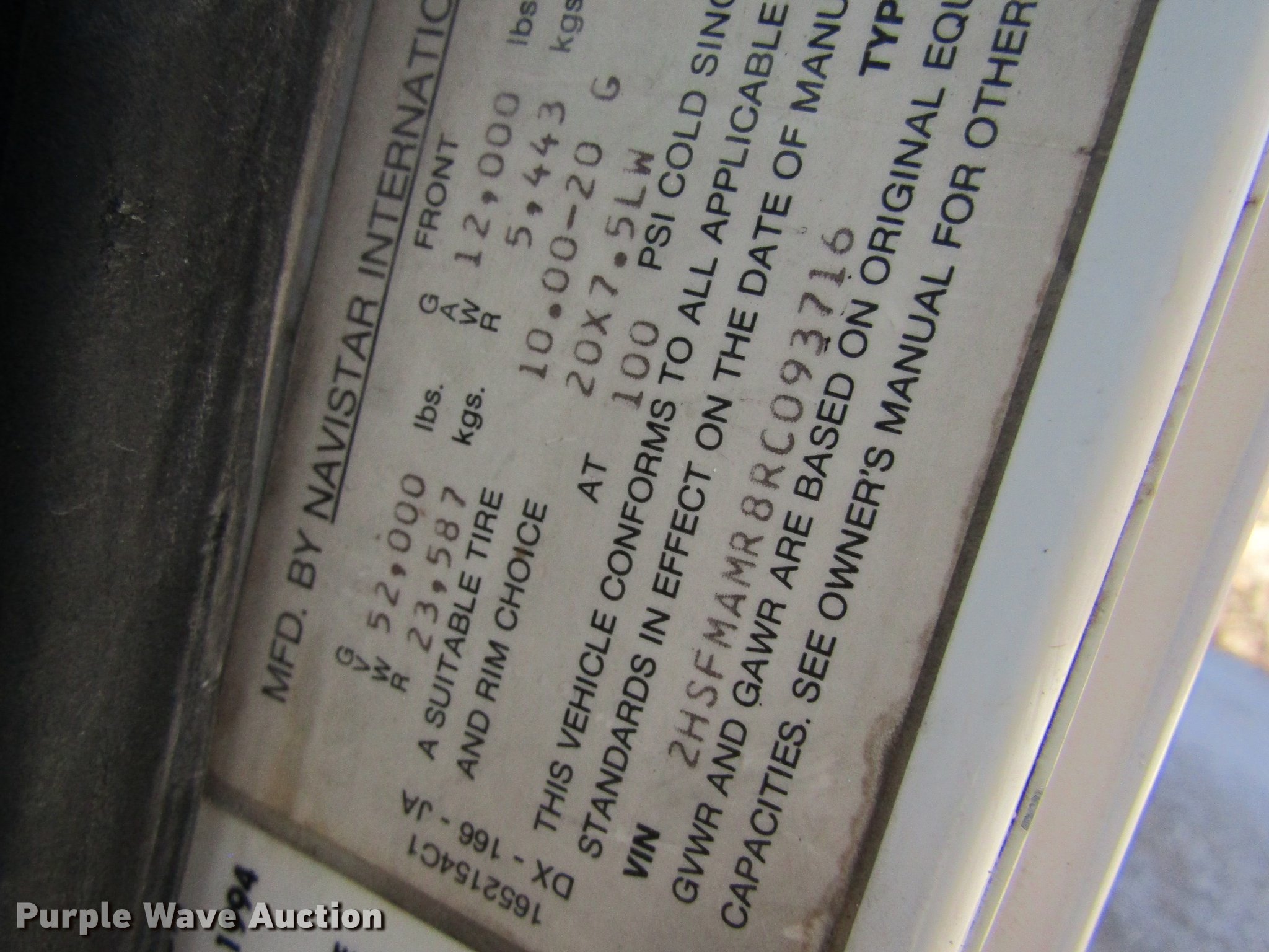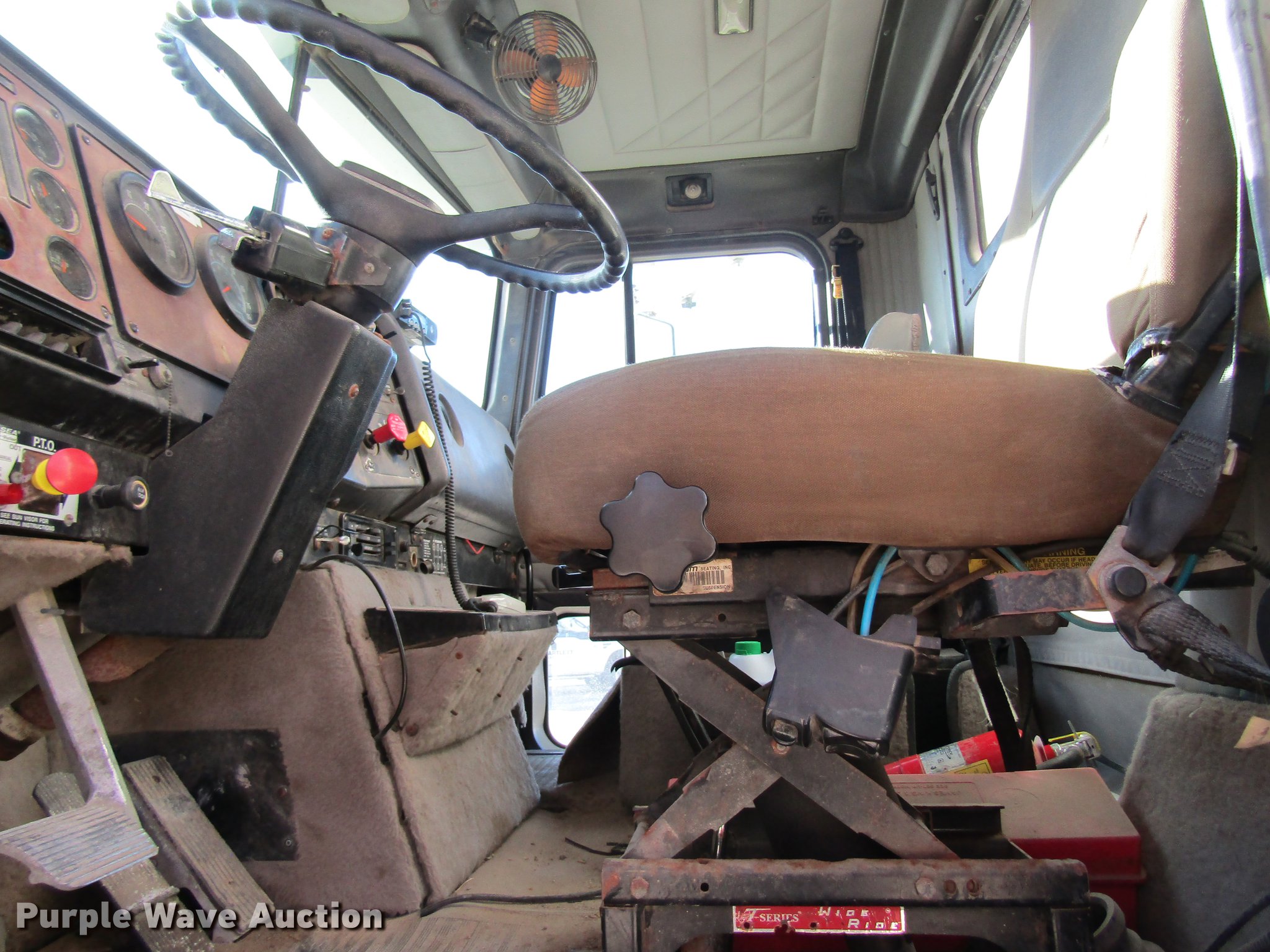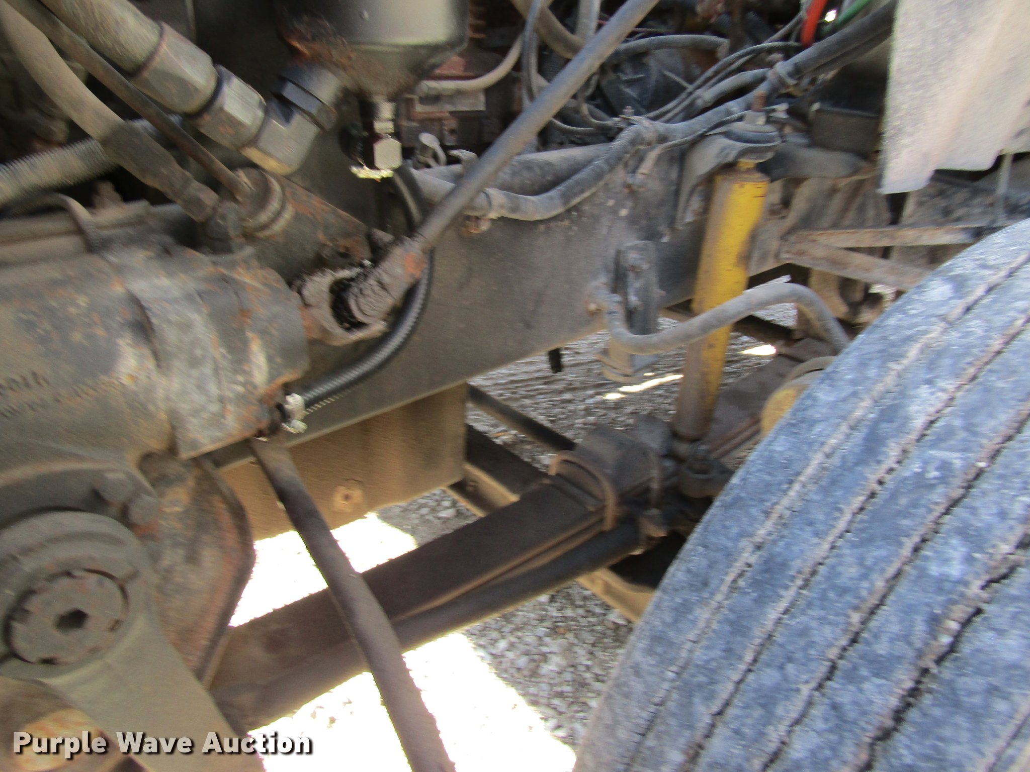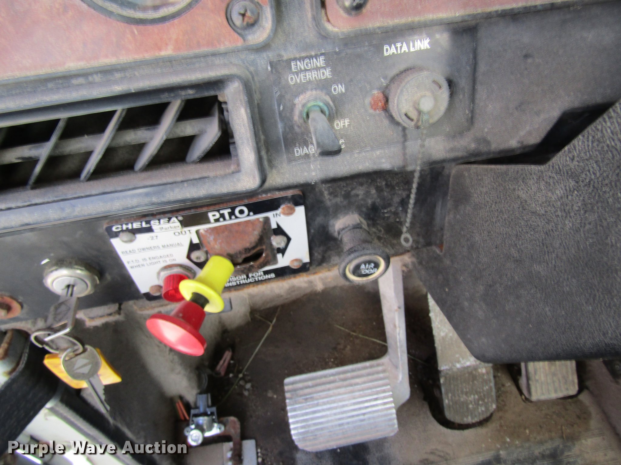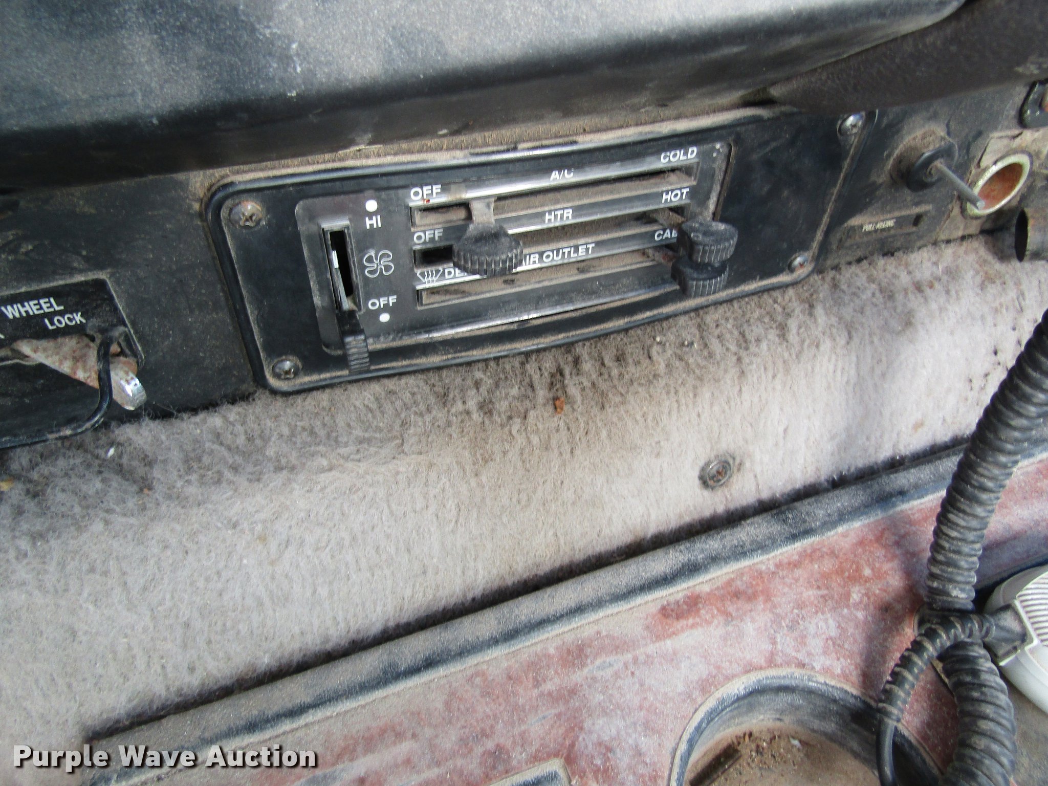 Purple Wave is selling a used Fertilizer or Feed Delivery Truck in Missouri. This item is a 1994 International 9200 dry fertilizer tender truck with the following: 194,619 miles on odometer, Detroit Diesel Series 60 six cylinder turbo diesel engine, 10 speed manual transmission, Inter-axle differential lock, Heat, AM/FM/cassette, Air suspension seat, Tyler tender box, 16'L x 8'W, (2) hoppers, 16'L x 9" diameter auger, Roll tarp, Ladder, Driver side bed ramps, Exterior visor, Single rear exhaust stack, Dual fuel tanks, Mud flaps, Spring suspension, 285/75R24.5 tires, GVWR 52,000 lbs, FAWR 12,000 lbs, IAWR 20,000 lbs, RAWR 20,000 lbs, Tank covering damaged, Dash damaged, CB not included, Unit# 60