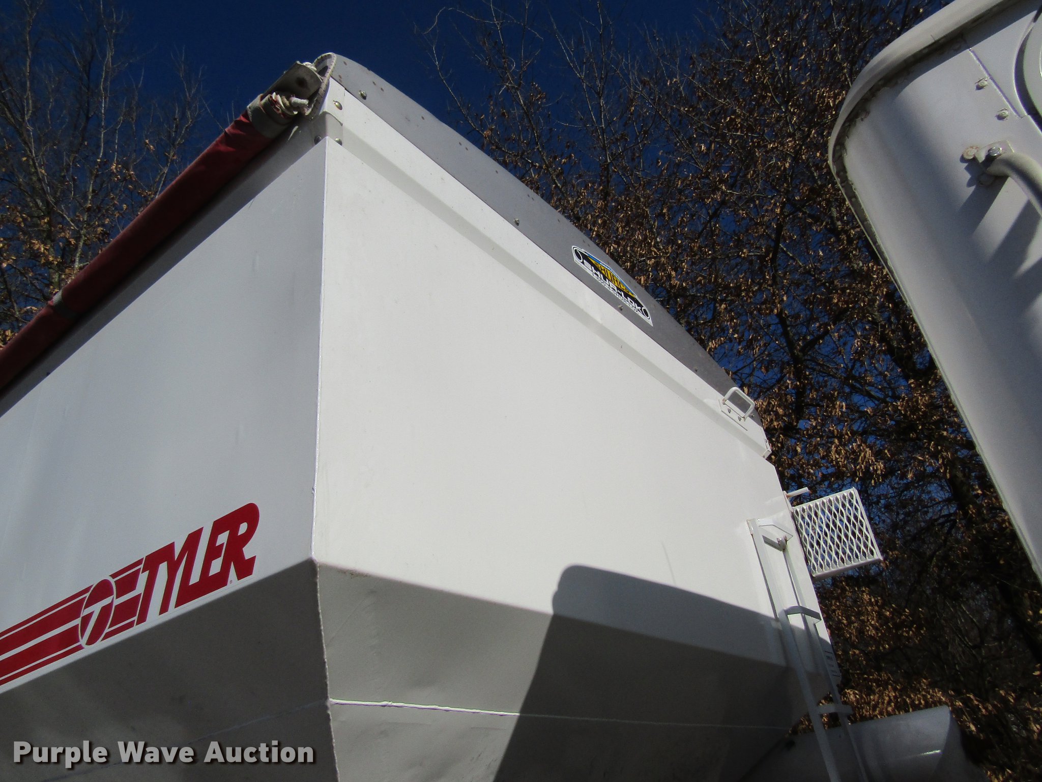1994 International 9200 dry fertilizer tender truck. 194,619 miles on odometer, Detroit Diesel Series 60 six cylinder turbo diesel engine, 10 speed manual transmission, Inter-axle differential lock, Heat, AM/FM/cassette, Air suspension seat, Tyler tender box 16'L x 8'W, (2) hoppers, 16'L x 9" diameter auger, Roll tarp, Ladder, Driver side bed ramps, Exterior visor, Single rear exhaust stack, Dual fuel tanks, Mud flaps, Spring suspension, 285/75R24.5 tires, GVWR 52,000 lbs, FAWR 12,000 lbs, IAWR 20,000 lbs, RAWR 20,000 lbs, Tank covering damaged, Dash damaged, CB not included, Unit# 60. Missouri title. 2HSFMAMR8RC093716. Bartlett Grain Company. 503 E Thomas Dr. Waverly, MO 64096