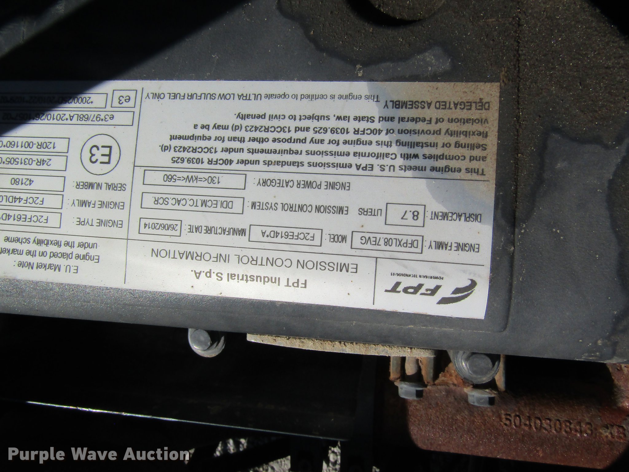 • Case FPT F2CFE614DA 8.7L six cylinder turbo diesel engine