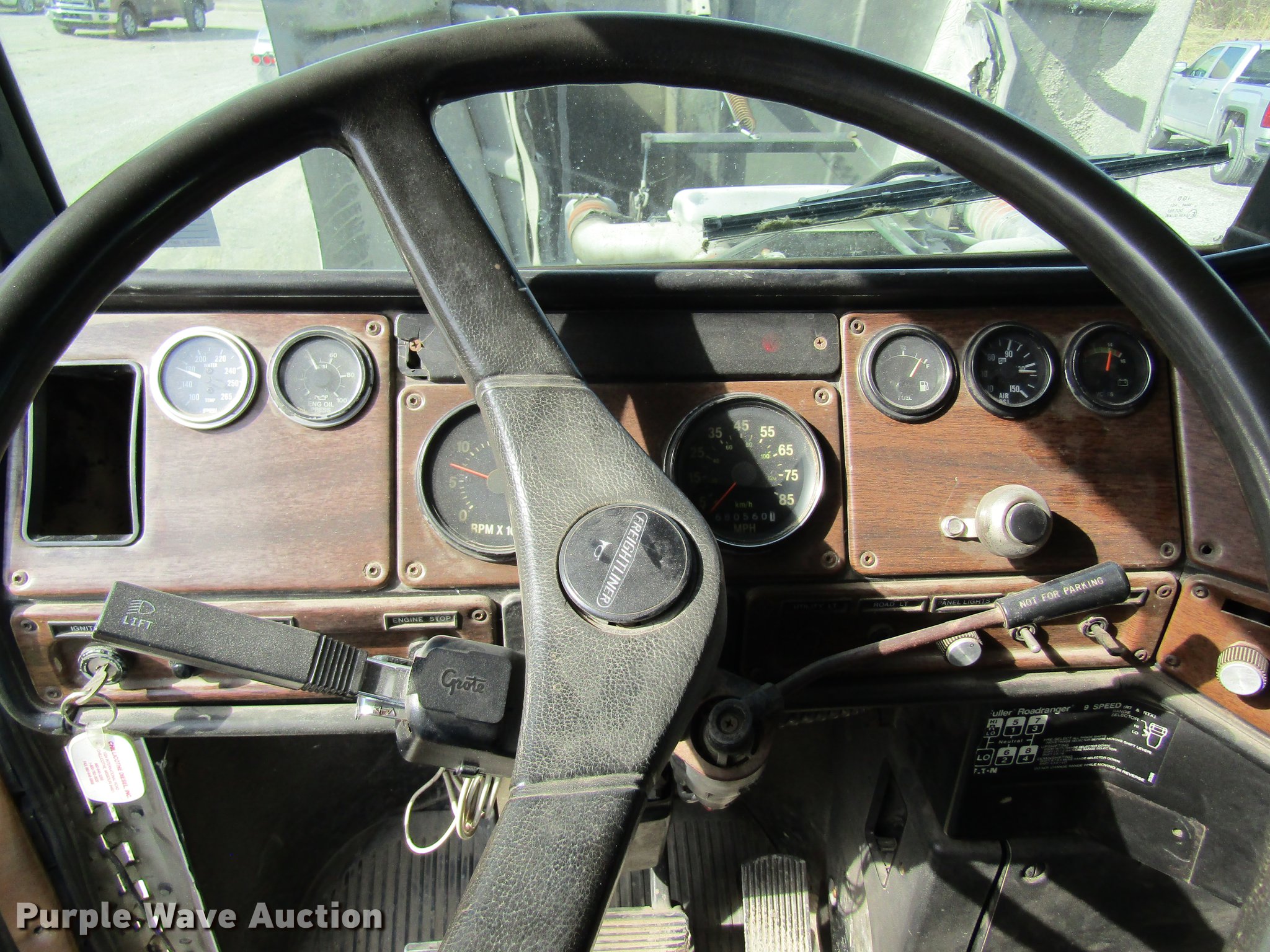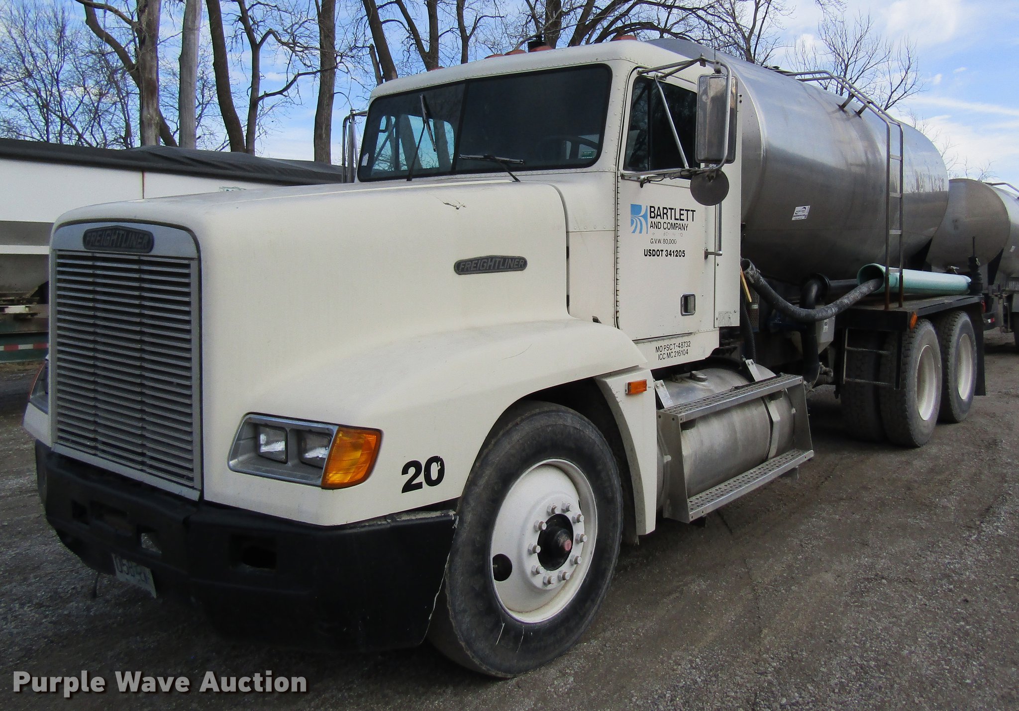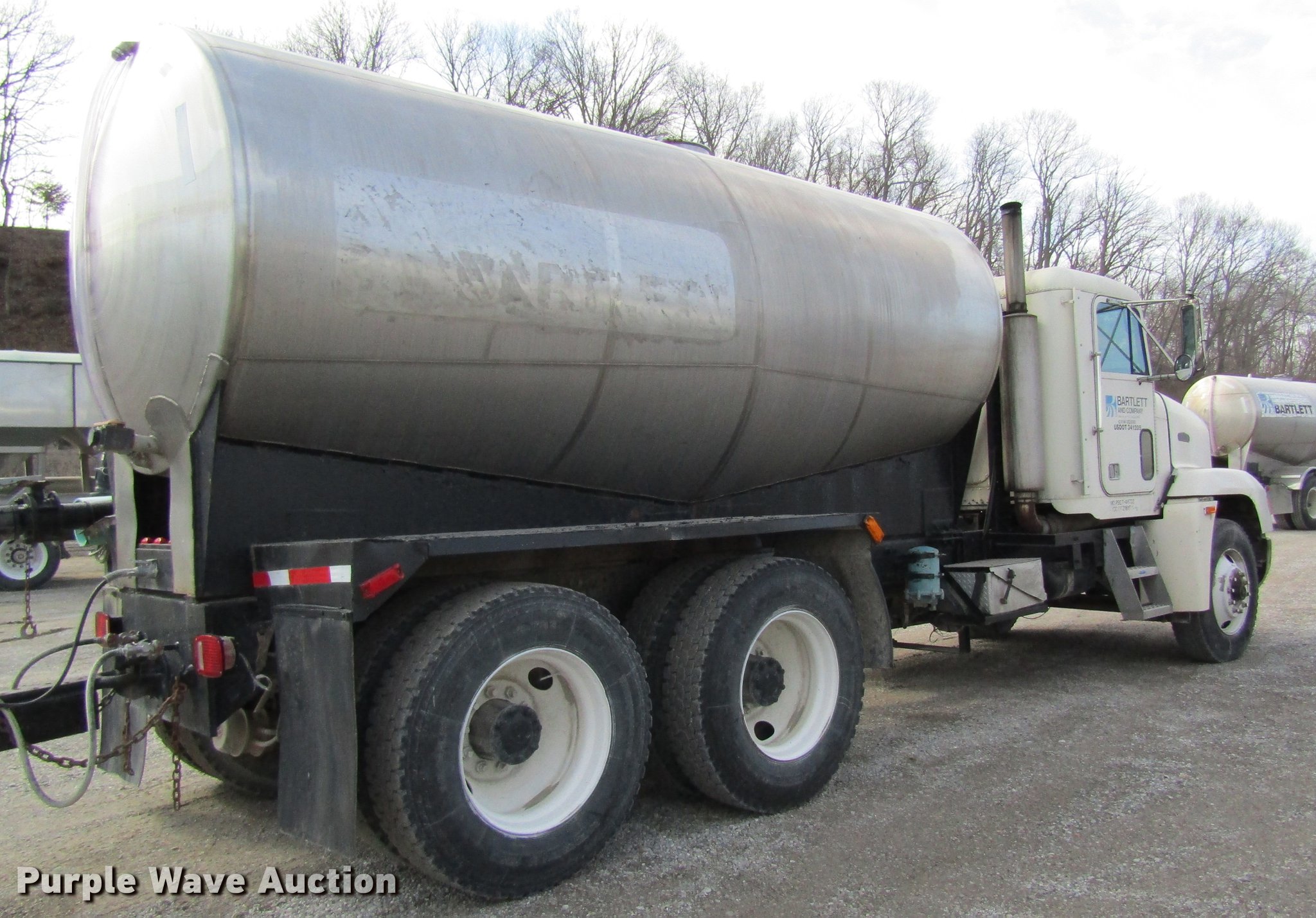 Purple Wave is selling a used Tank Truck or Water Truck in Missouri. This item is a 1989 Freightliner FLD120 nurse tank truck with the following: 680,560 miles on odometer, Caterpillar 3406 14.6L L6 turbo diesel engine, Eaton Fuller Road Ranger nine speed manual transmission, Tandem axle, Heat, AM/FM, Air suspension seat, PTO, Single exhaust stack, Tiona tank bed, 2,400 gallon capacity, Side and rear discharge, 3" rear outlet, Top fill, Sight tube, Ladder, Single fuel tank, Pintle hitch, Trailer wiring, Air suspension, Air brakes, 11R24.5 tires, CB not included, Unit# 20