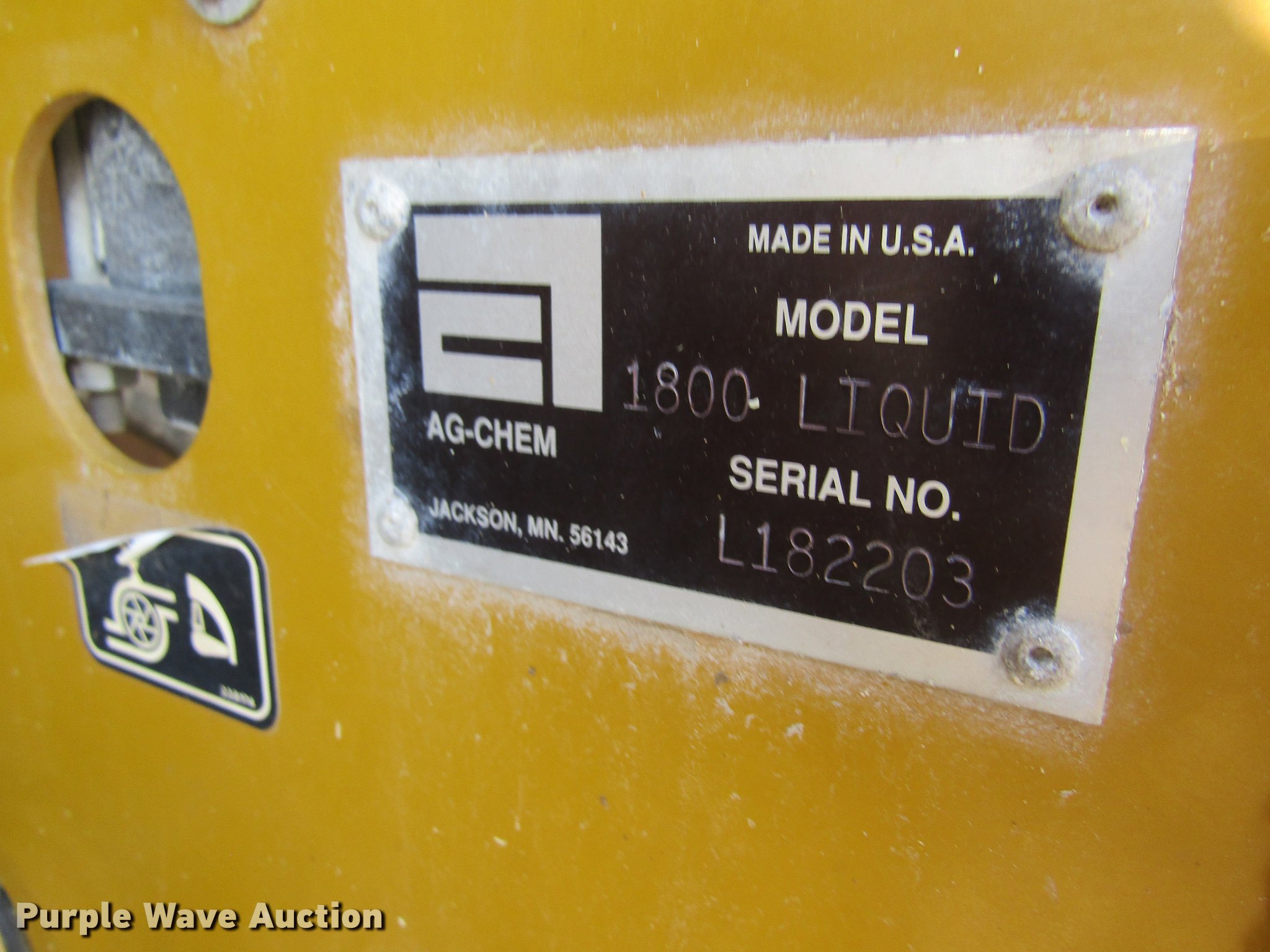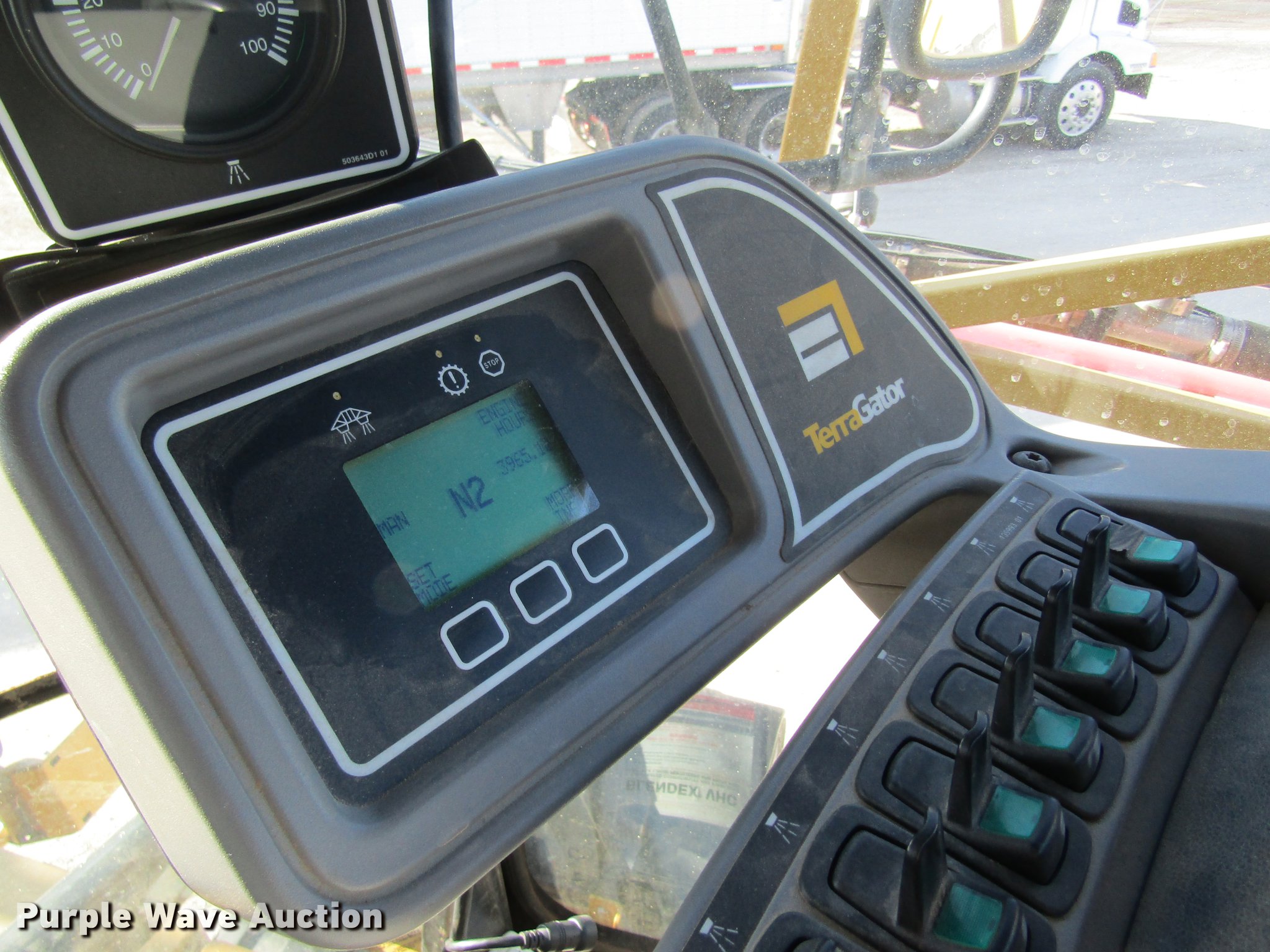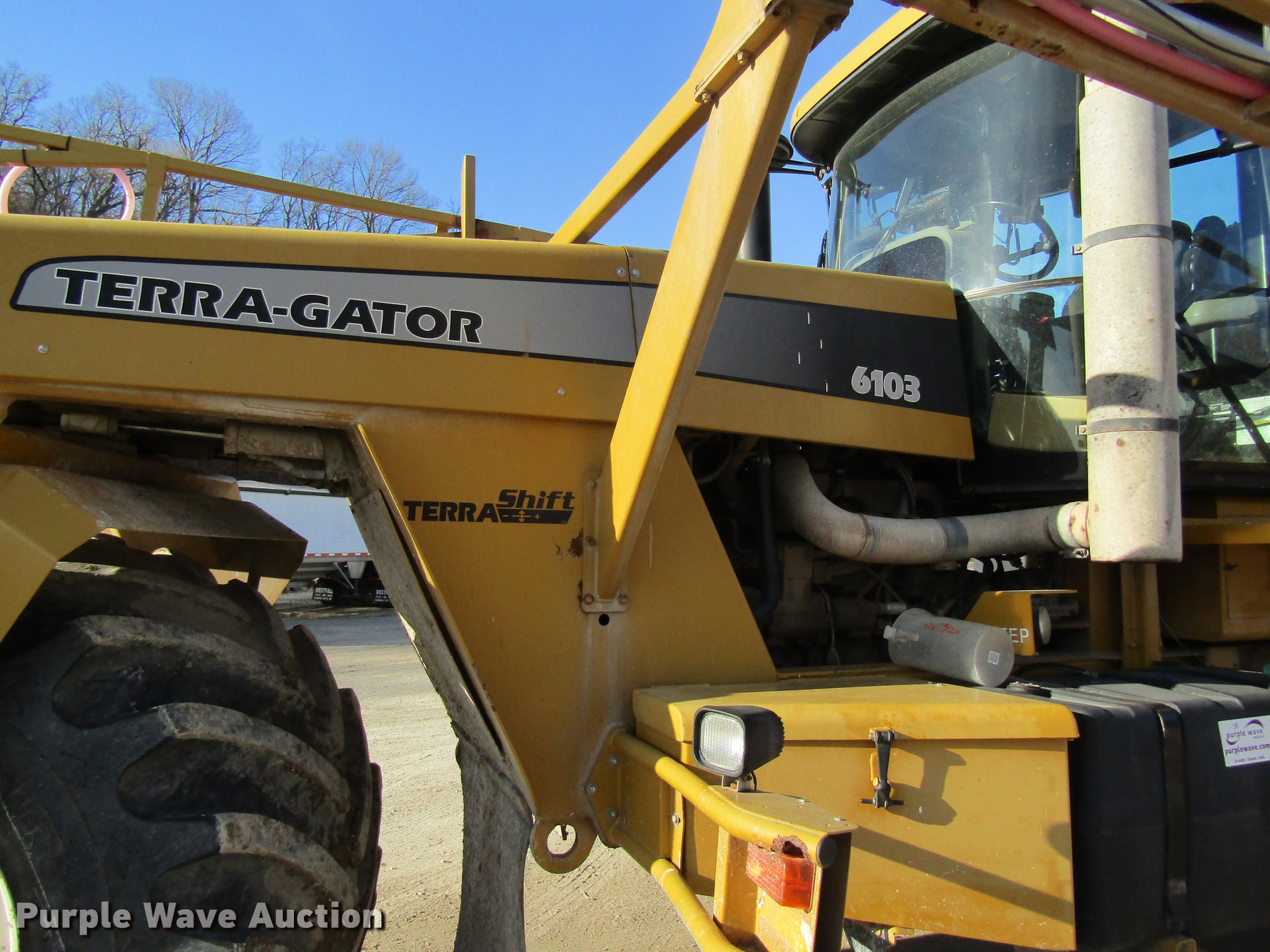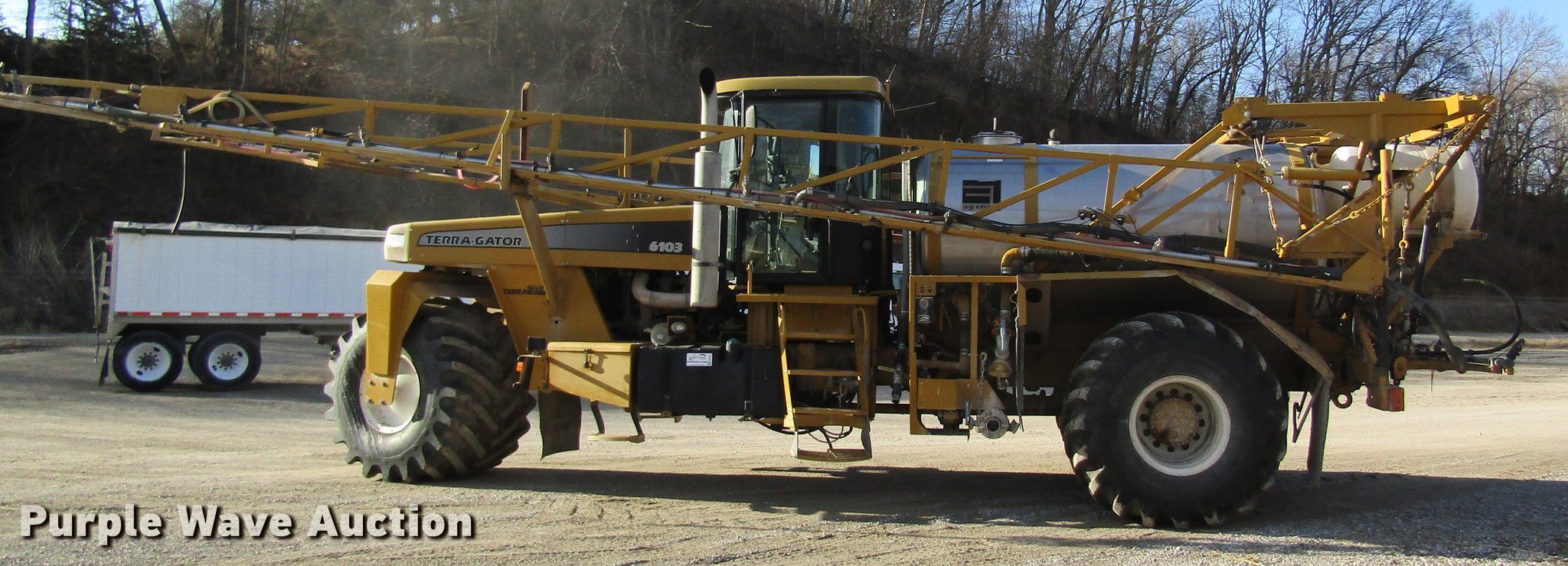 Purple Wave is selling a used Applicator Self Propelled in Missouri. This item is a 2006 Ag-Chem TerraGator 6103 self-propelled sprayer with the following: 3,967 engine hours on meter, John Deere six cylinder turbo diesel engine, TerraShift transmission, 11F-3R gears, 1,800 gallon stainless steel solution tank, Serial L182203, 80'W boom, Five boom sections, Hydraulic boom fold, 60" nozzle spacing, AC and heat, AM/FM, Air suspension seat, Shade, Work lights, Backup camera, EZ-Guide 250 GPS monitor, Ag Leader GPS receiver, 66x43.00-25 flotation tires, Serial 63044506, Unit# 28