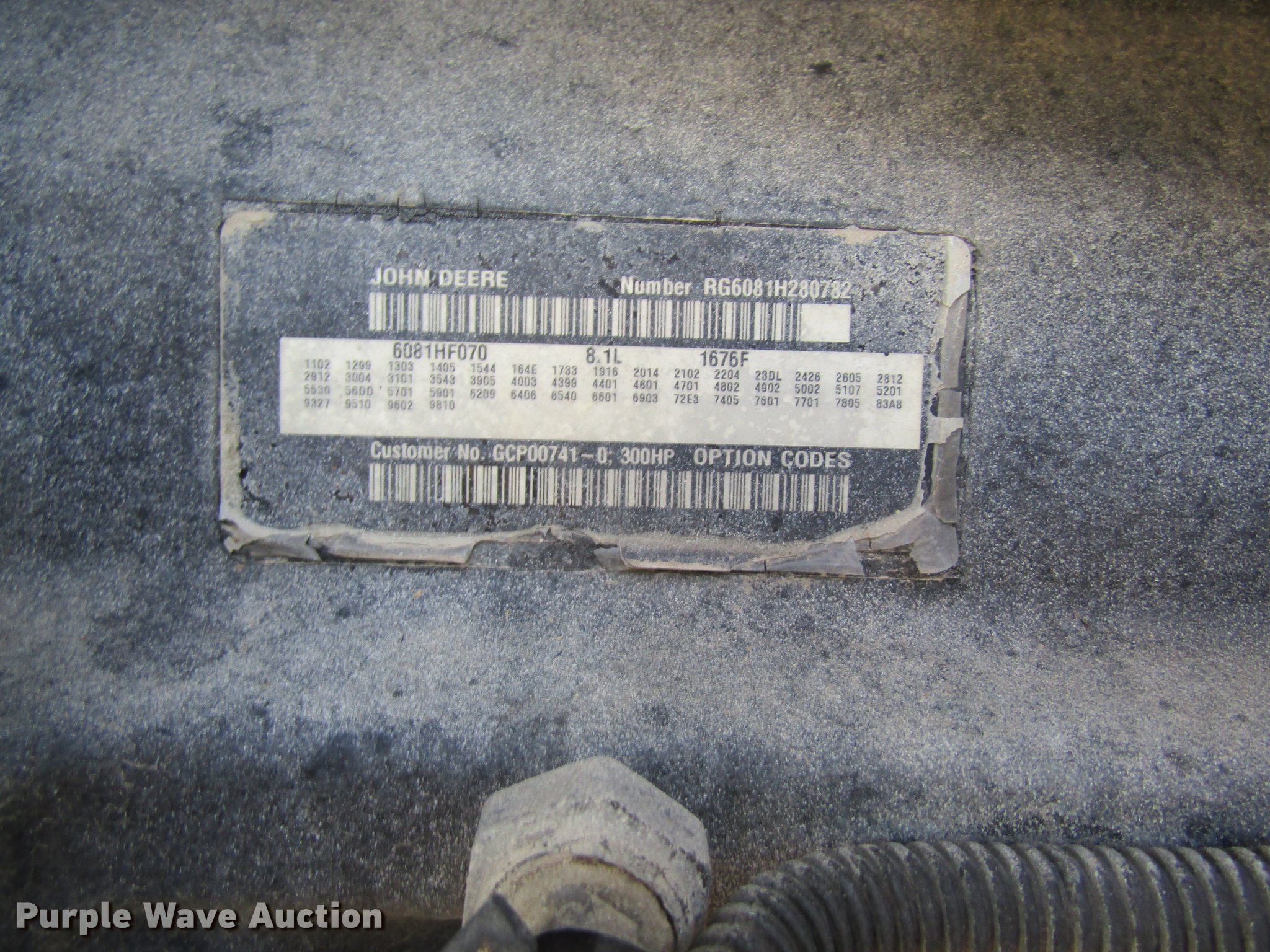 - John Deere six cylinder turbo diesel engine