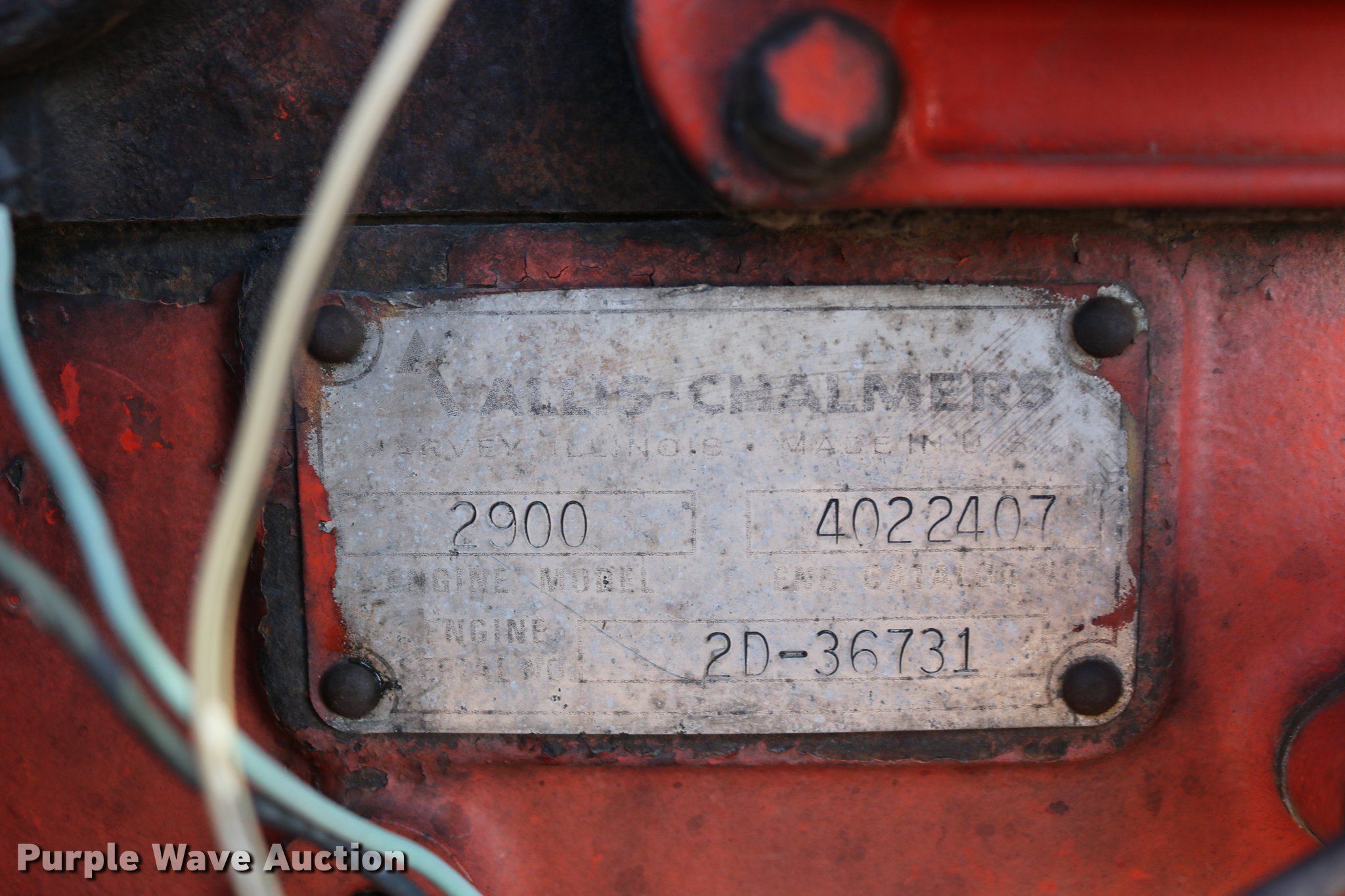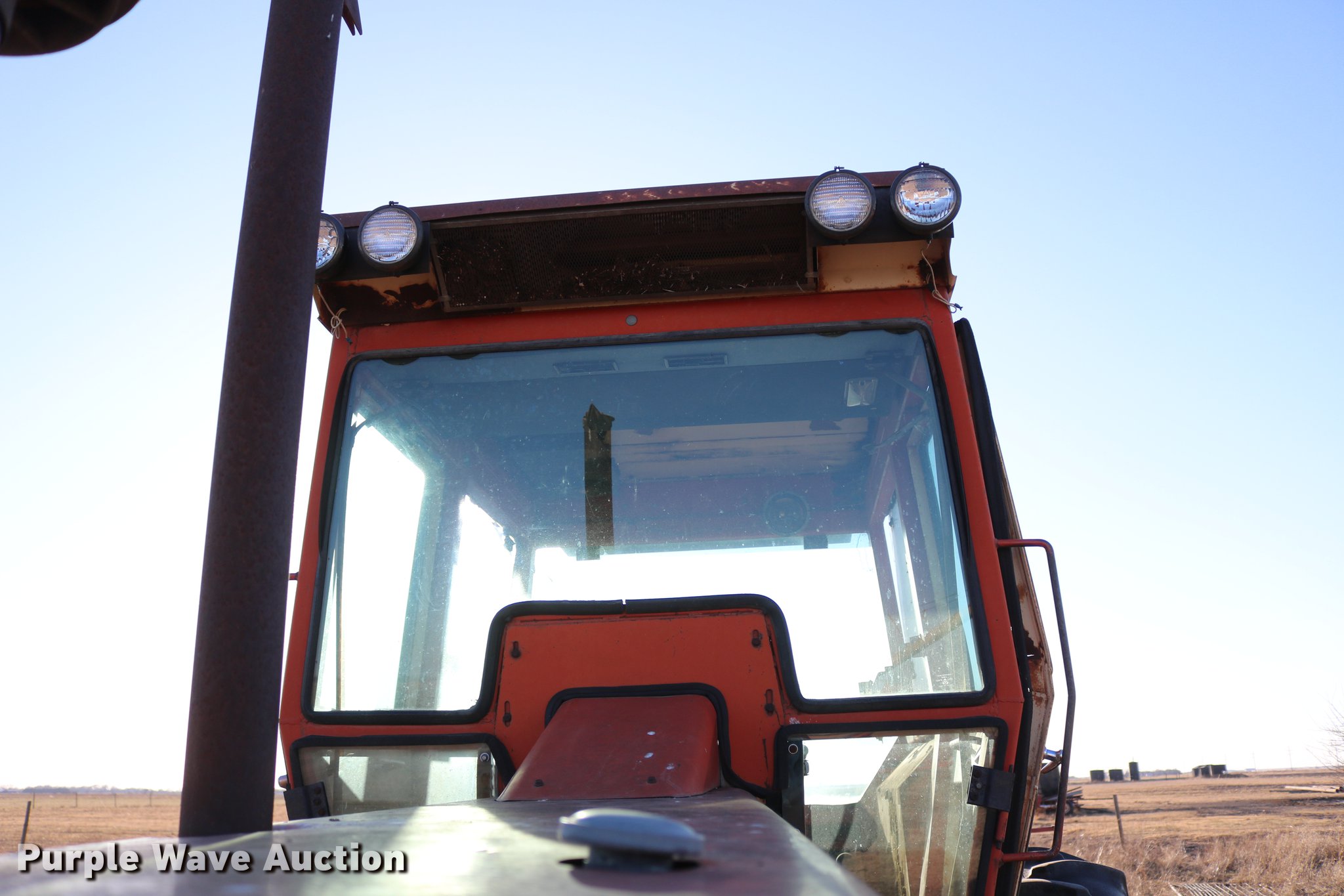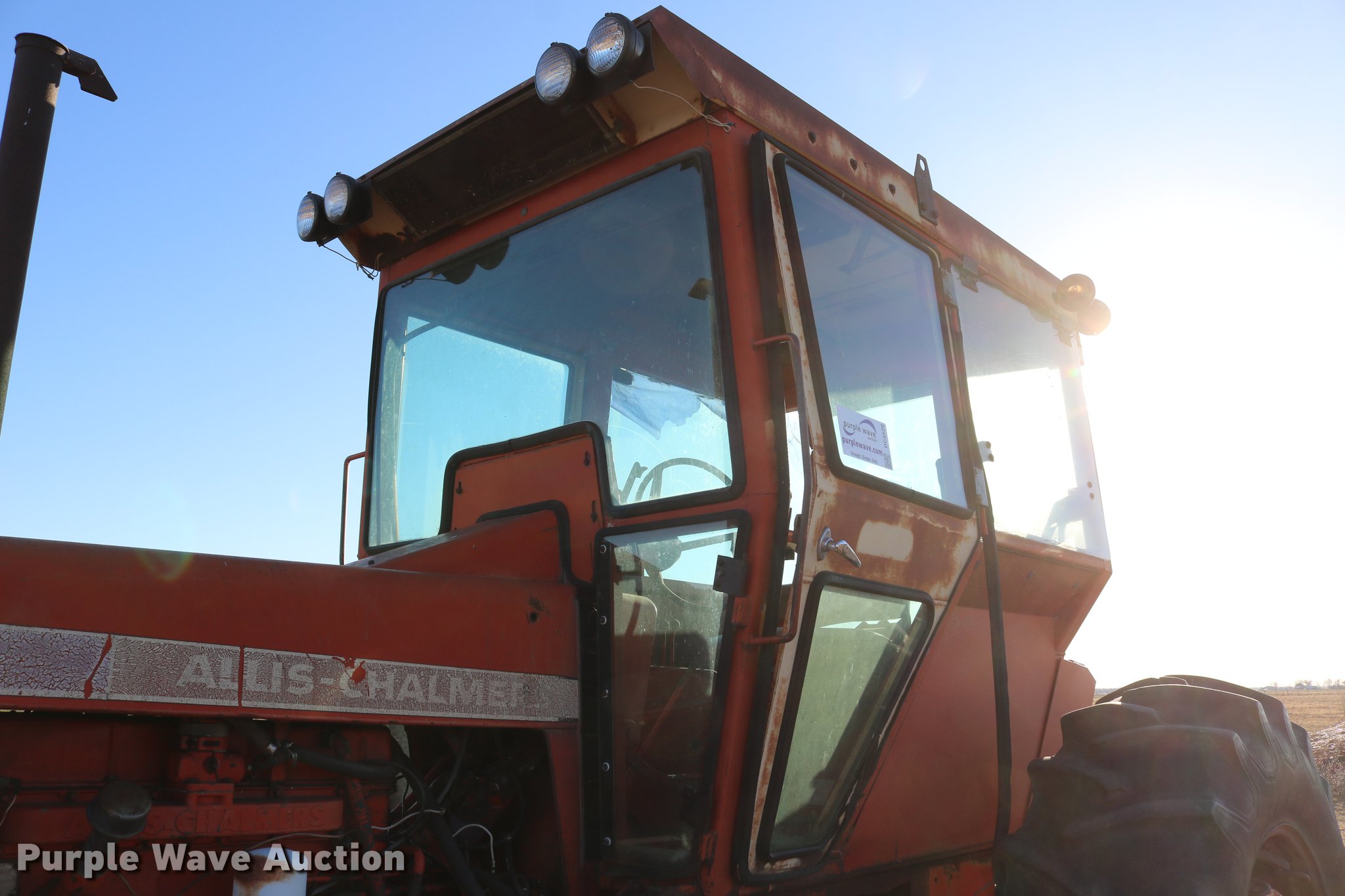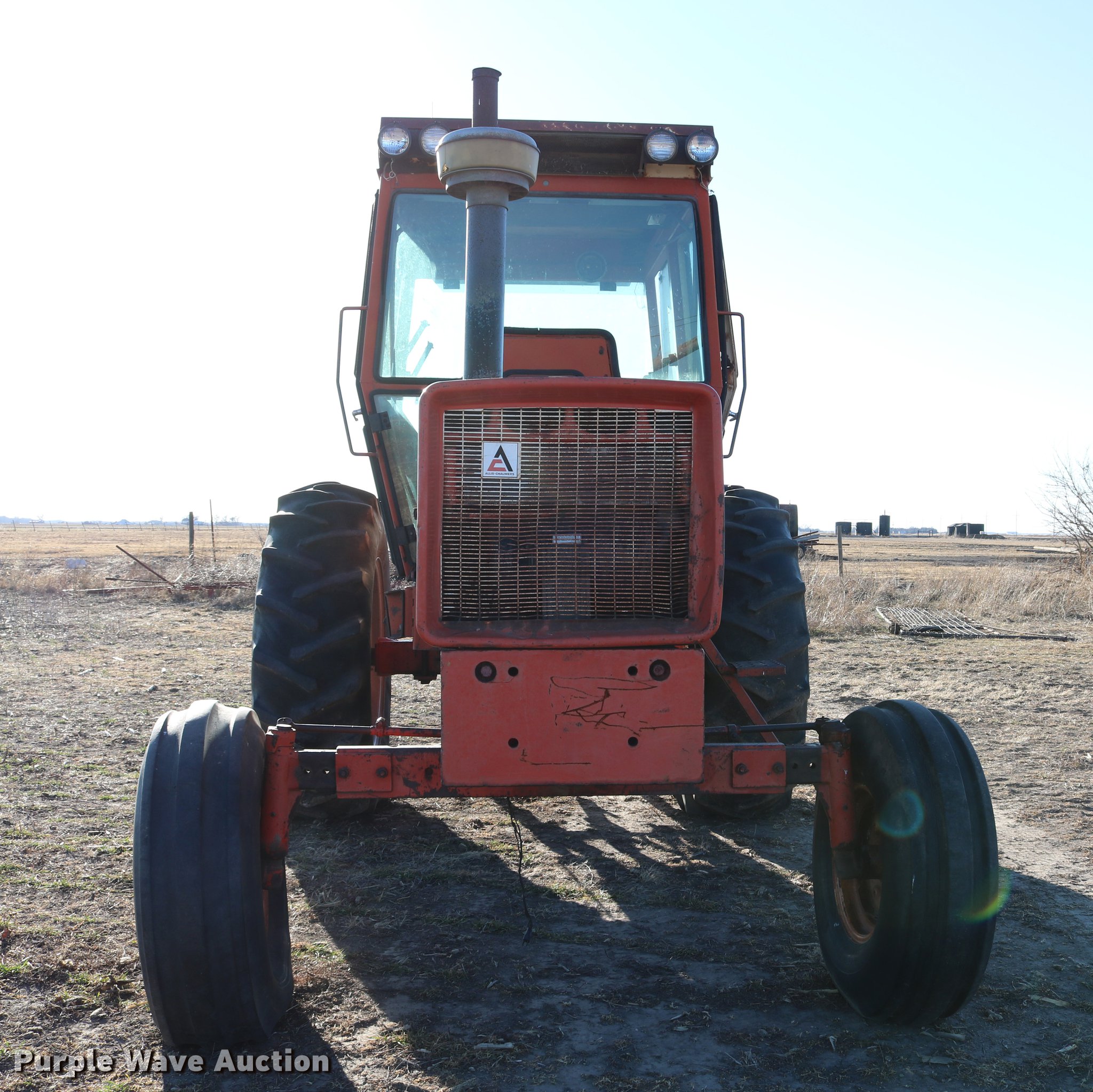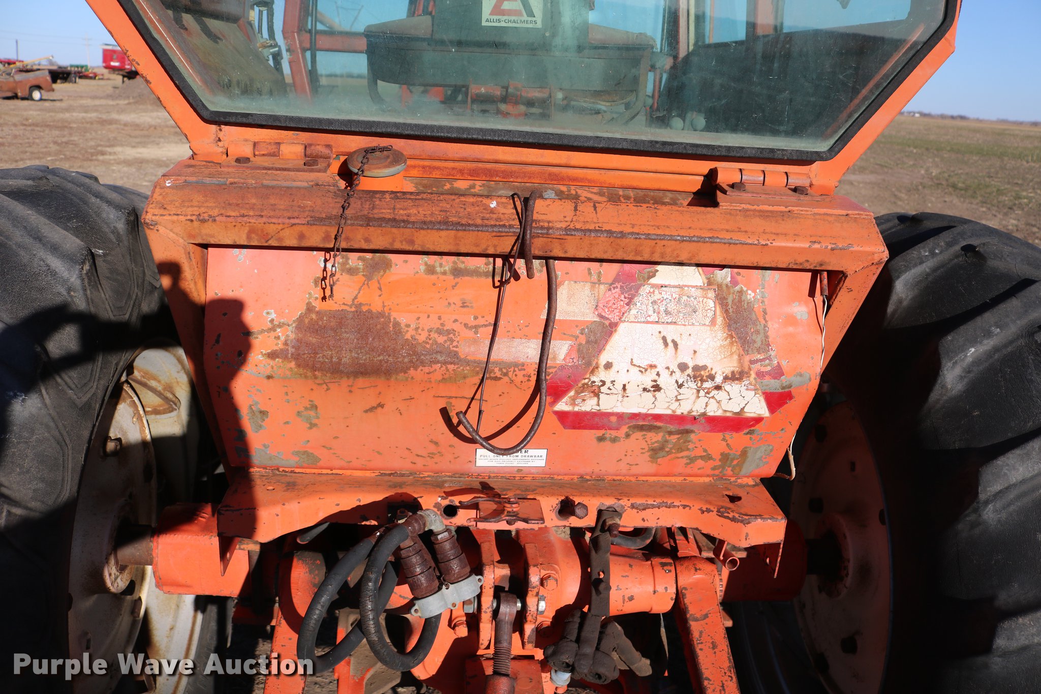 Purple Wave is selling a used Tractor in Kansas. This item is a Allis Chalmers One-Ninety tractor with the following: 5,268 hours on meter, Allis Chalmers 2900 4.3L six cylinder turbo diesel engine, Serial 2D-36731, Power director transmission, 8F-2R gears, AC and heat, Unknown operating condition, Three point, Top link, 540 PTO, (2) rear hydraulic remote sets, Front weight, (2) wheel weights, 106" wheelbase, 11.00-16 front tires, 18.4-34 rear tires, Dead battery, Cab door will not shut properly, AC compressor belt missing, Engine issues, Non-operational unit