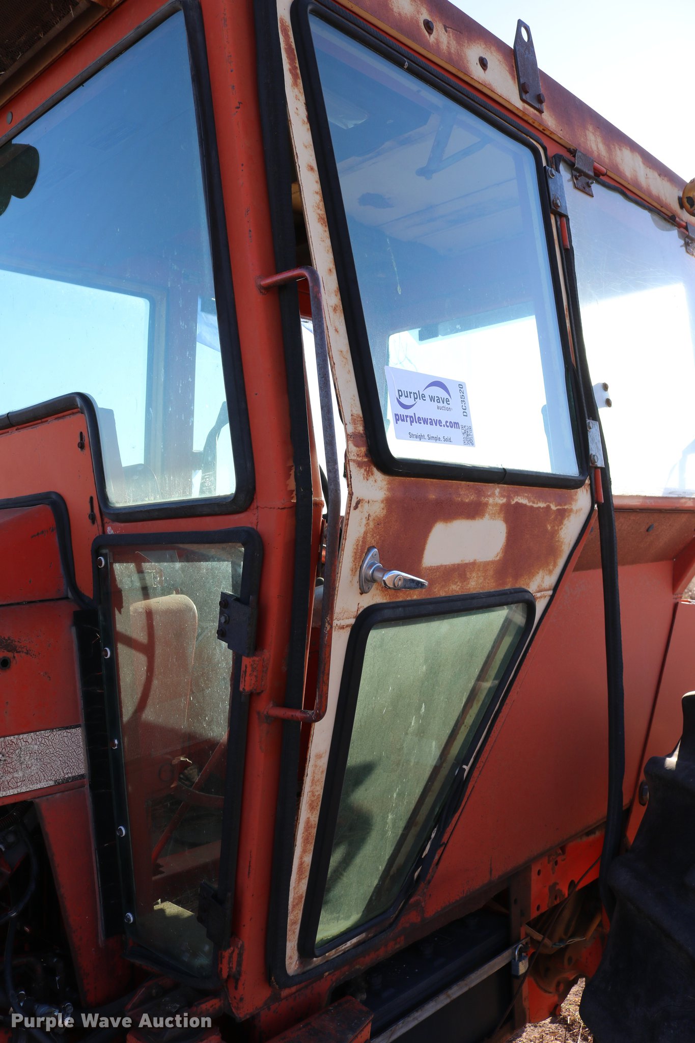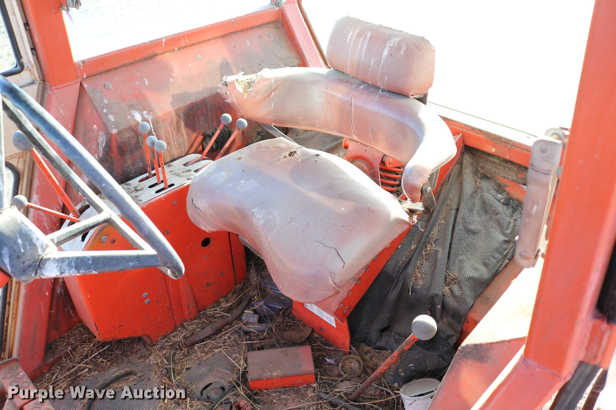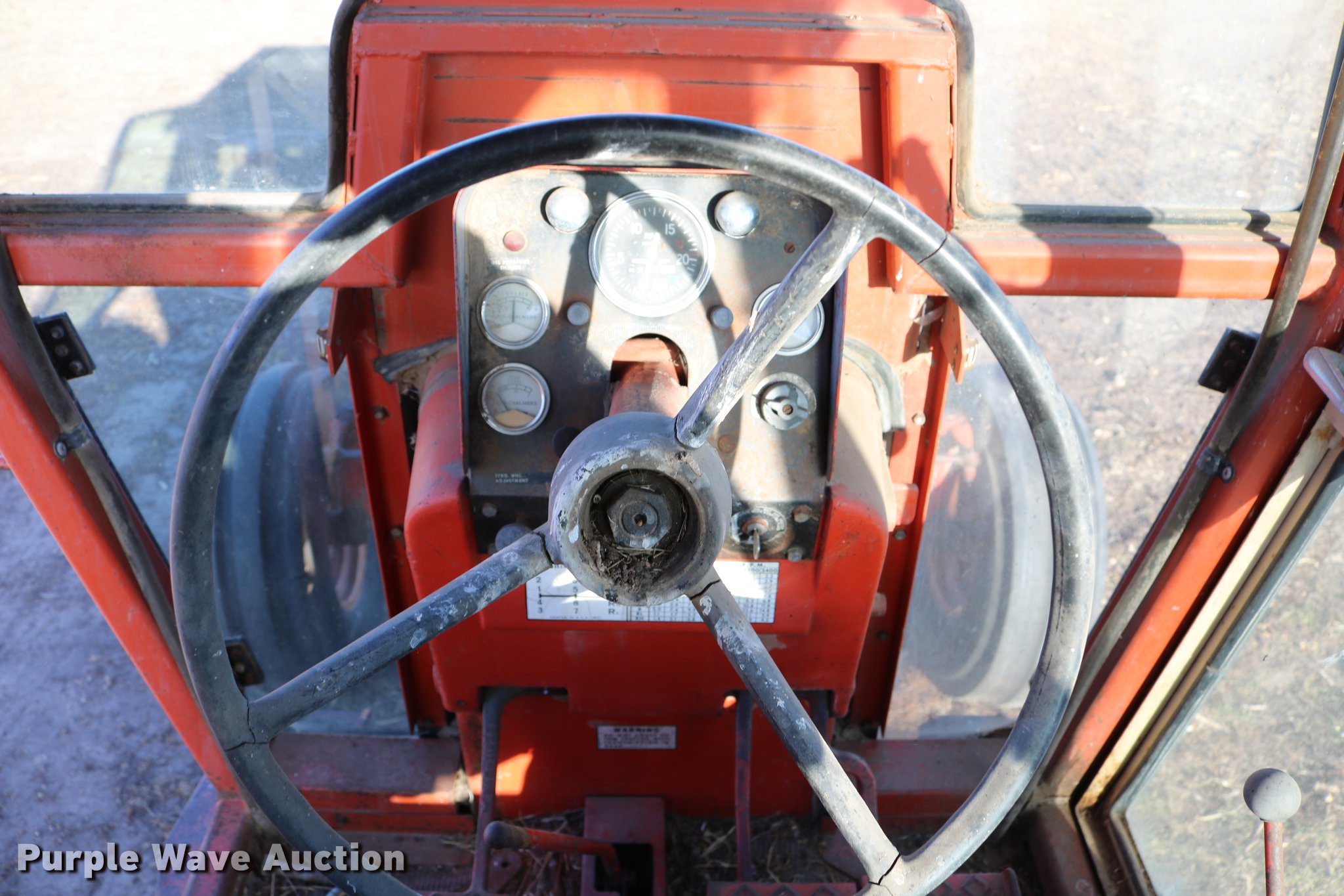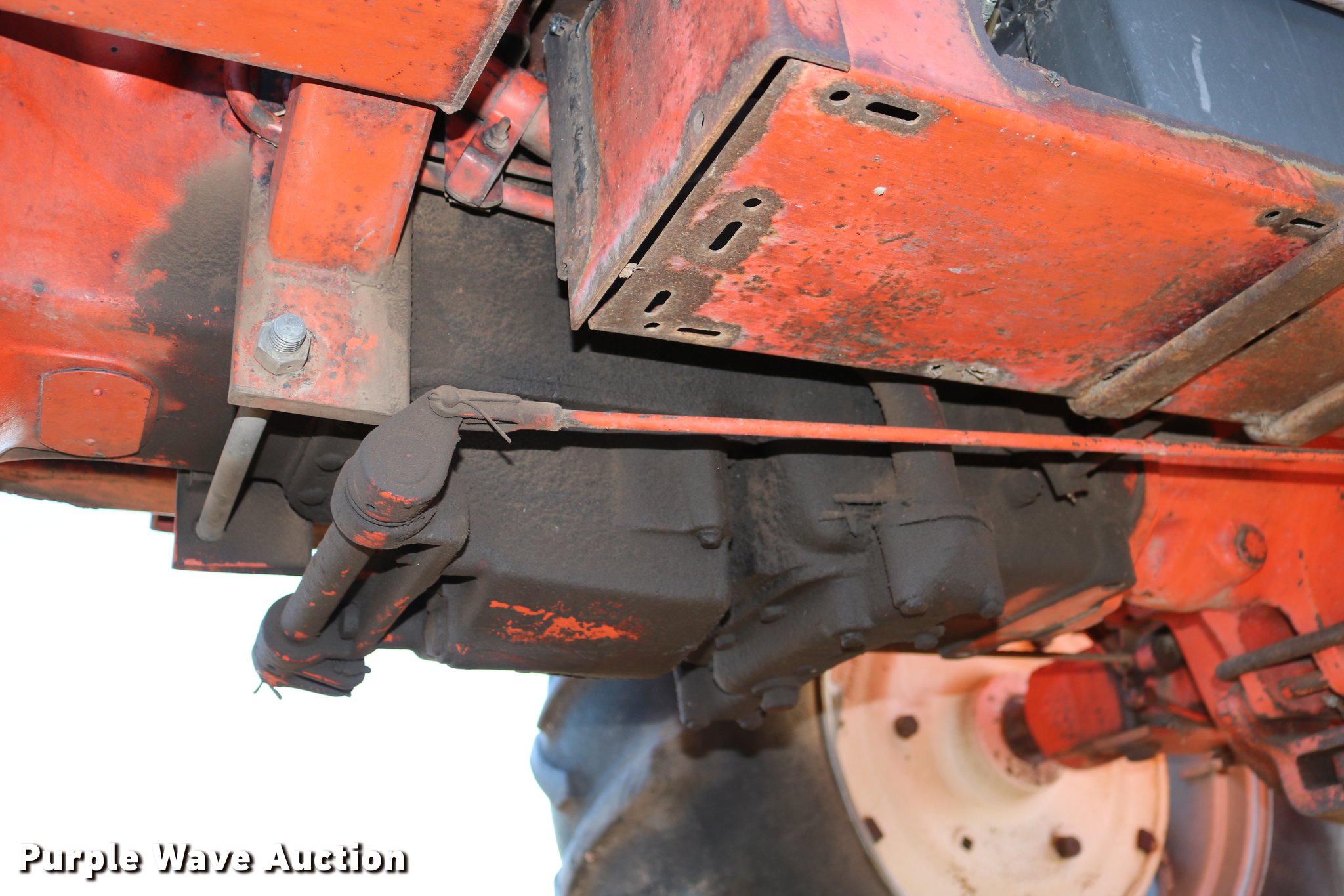 Purple Wave is selling a used Tractor in Kansas. This item is a Allis Chalmers One-Ninety tractor with the following: 5,268 hours on meter, Allis Chalmers 2900 4.3L six cylinder turbo diesel engine, Serial 2D-36731, Power director transmission, 8F-2R gears, AC and heat, Unknown operating condition, Three point, Top link, 540 PTO, (2) rear hydraulic remote sets, Front weight, (2) wheel weights, 106" wheelbase, 11.00-16 front tires, 18.4-34 rear tires, Dead battery, Cab door will not shut properly, AC compressor belt missing, Engine issues, Non-operational unit