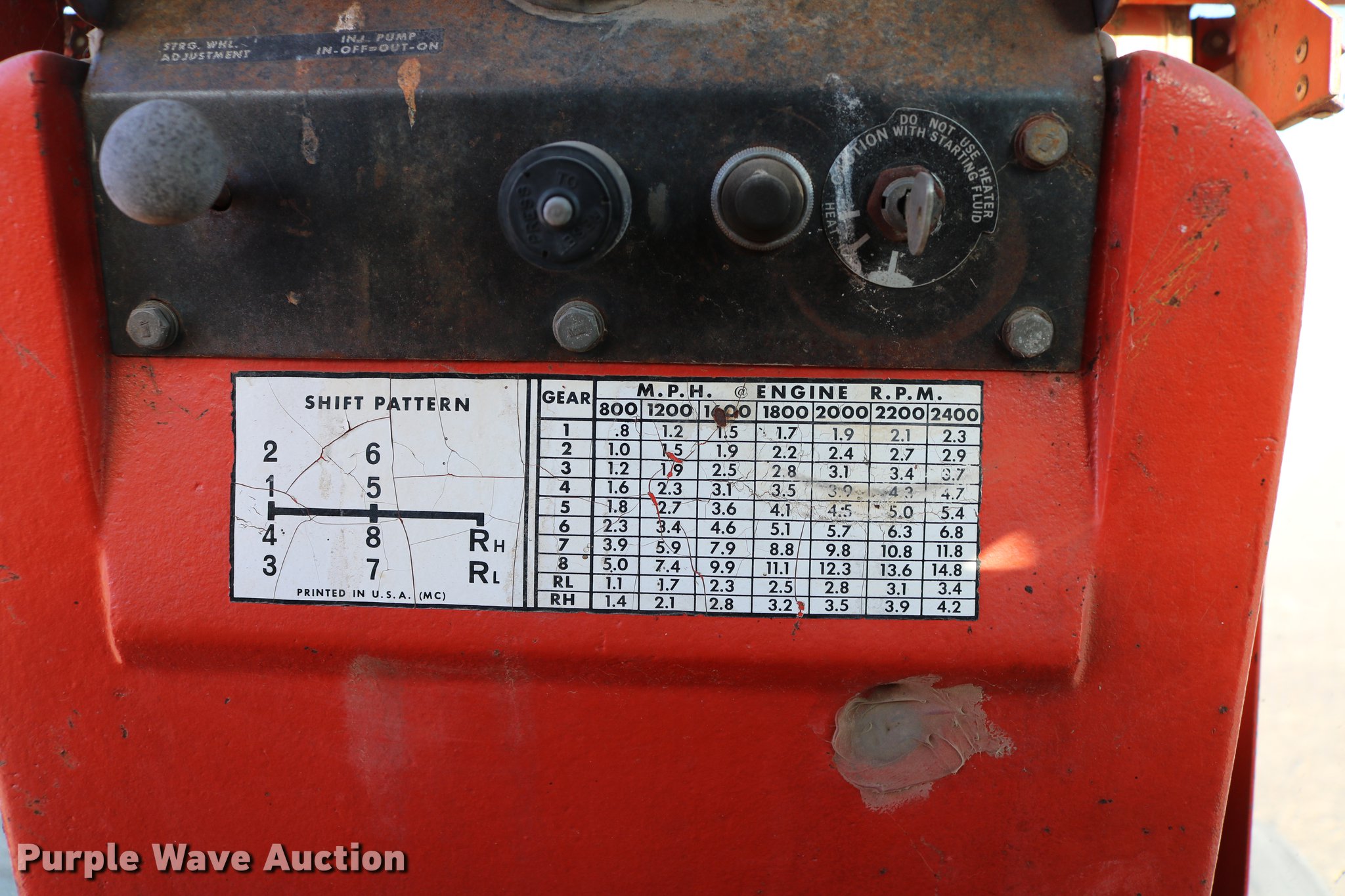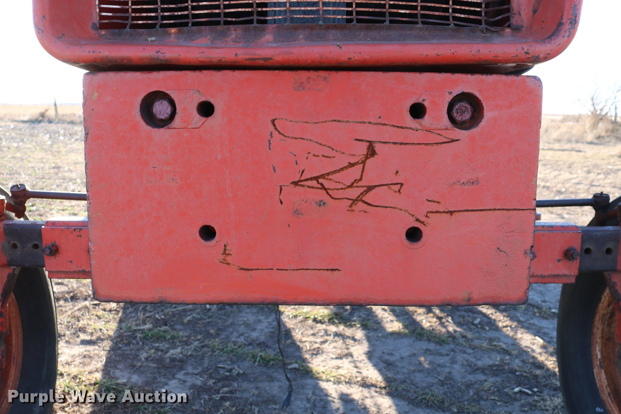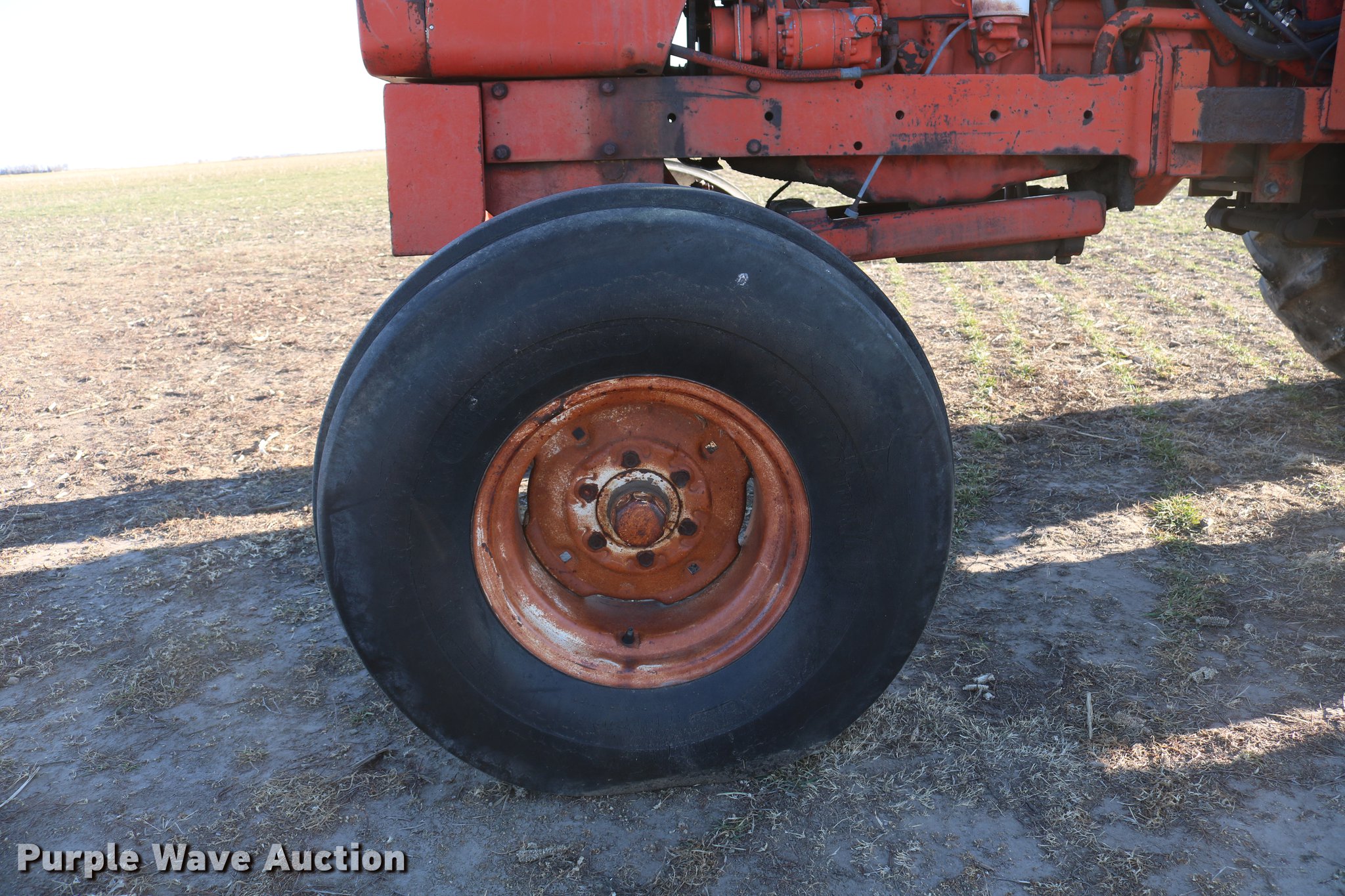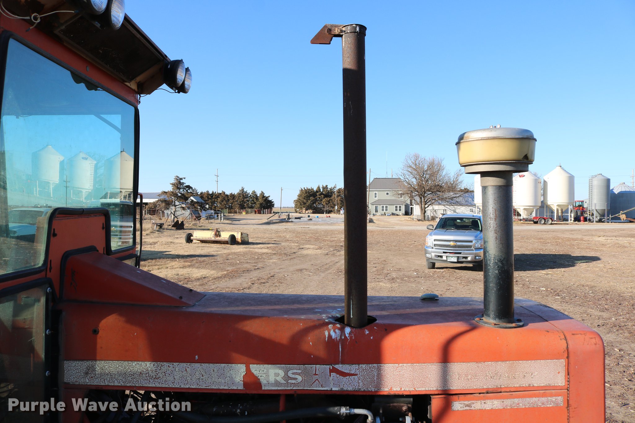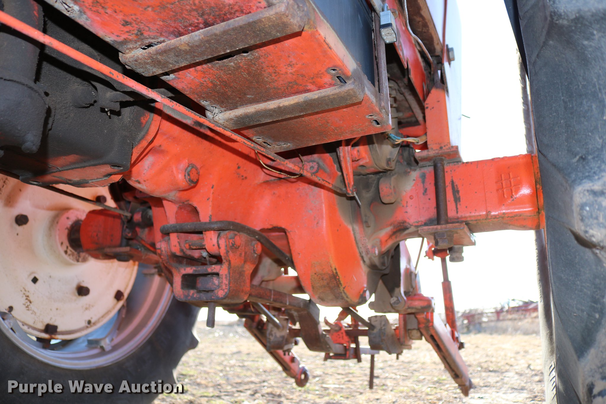Purple Wave is selling a used Tractor in Kansas. This item is a Allis Chalmers One-Ninety tractor with the following: 5,268 hours on meter, Allis Chalmers 2900 4.3L six cylinder turbo diesel engine, Serial 2D-36731, Power director transmission, 8F-2R gears, AC and heat, Unknown operating condition, Three point, Top link, 540 PTO, (2) rear hydraulic remote sets, Front weight, (2) wheel weights, 106" wheelbase, 11.00-16 front tires, 18.4-34 rear tires, Dead battery, Cab door will not shut properly, AC compressor belt missing, Engine issues, Non-operational unit