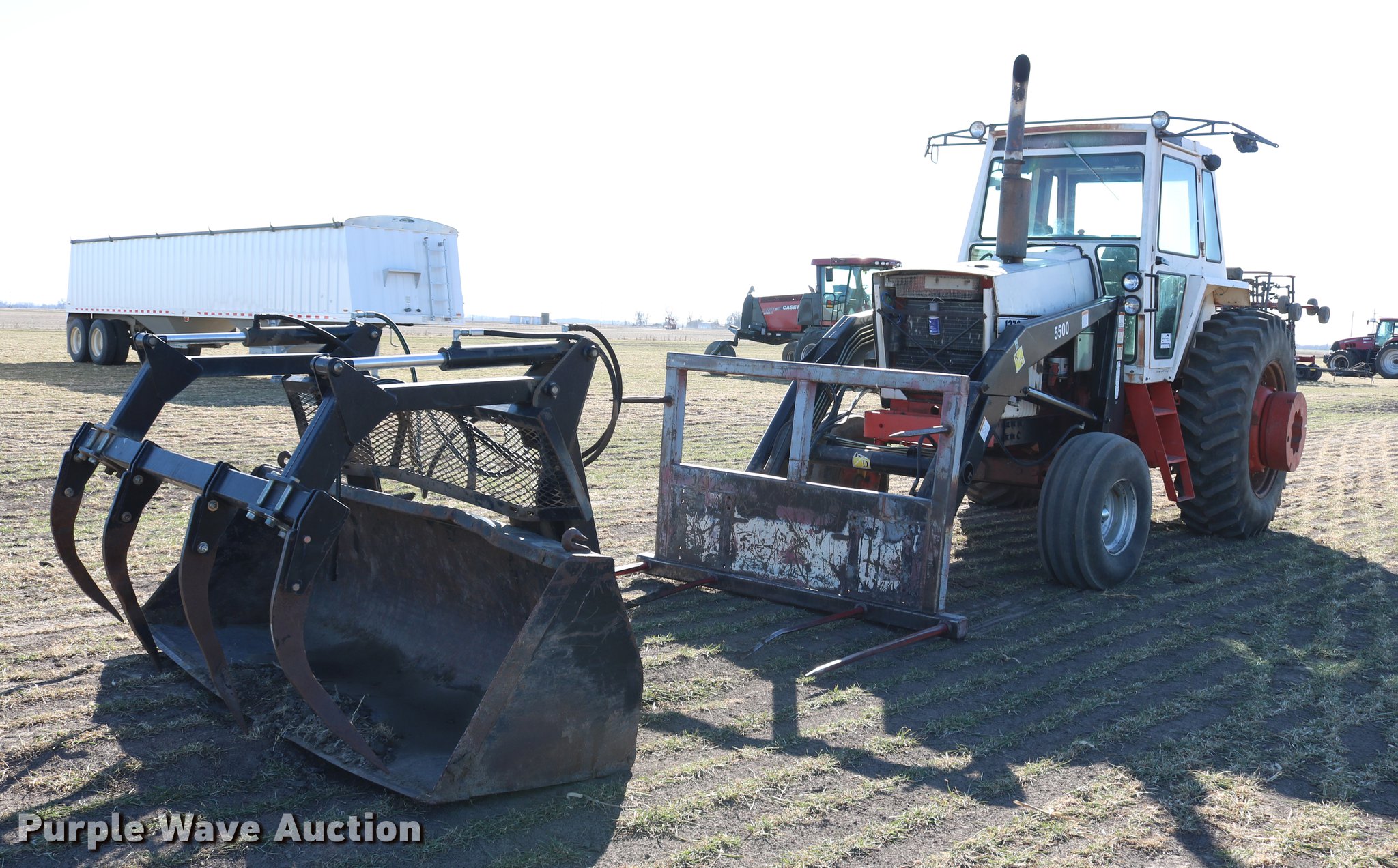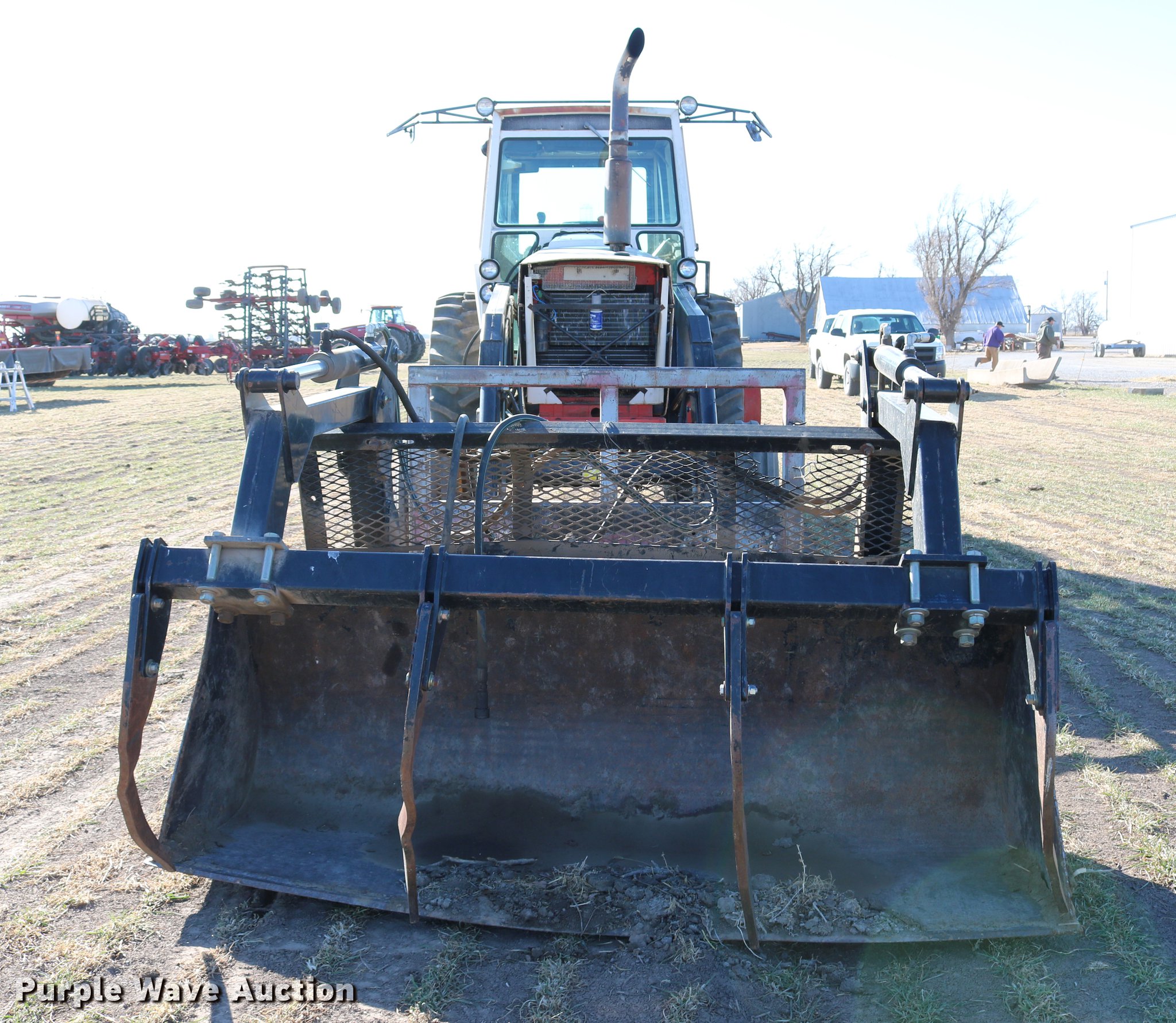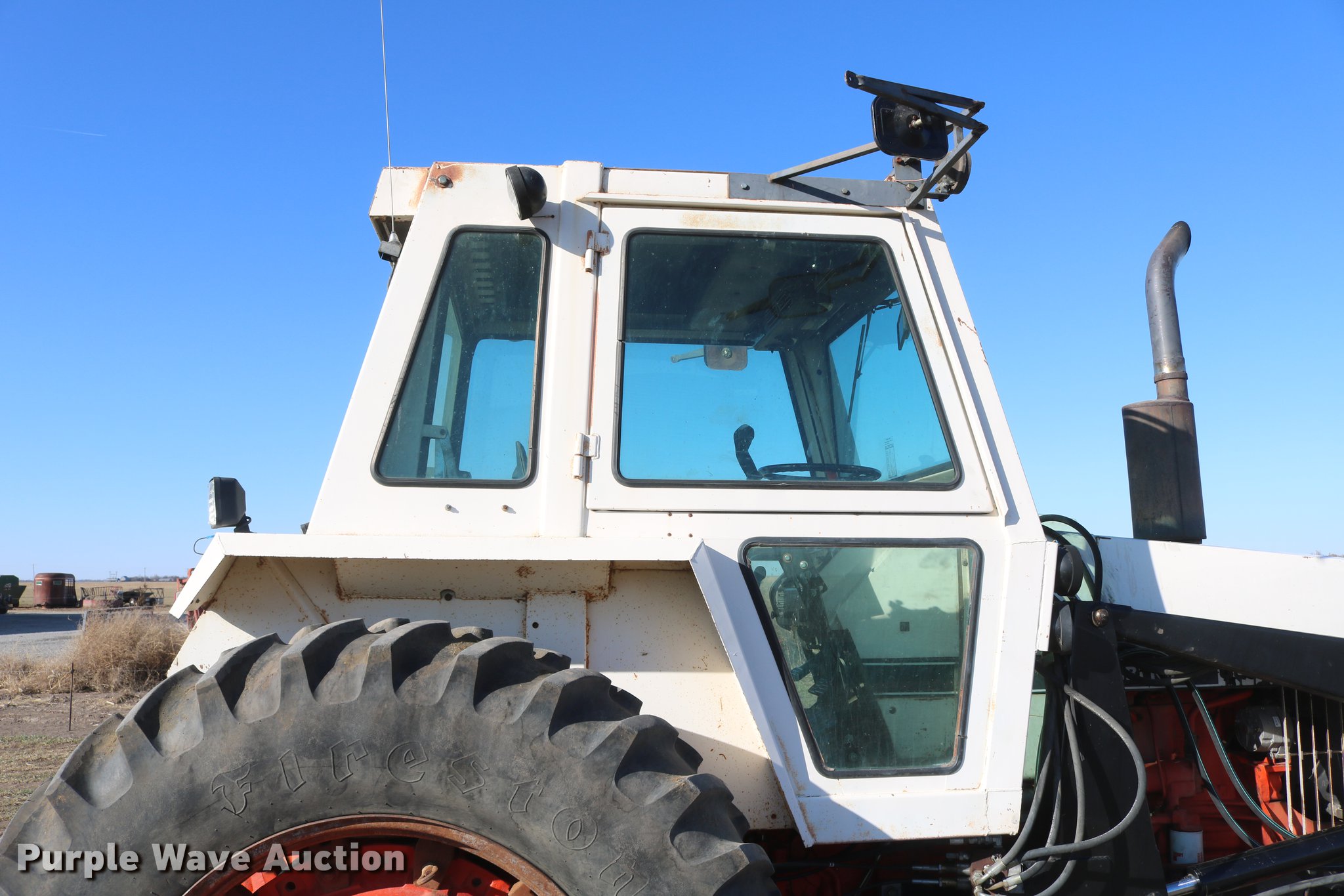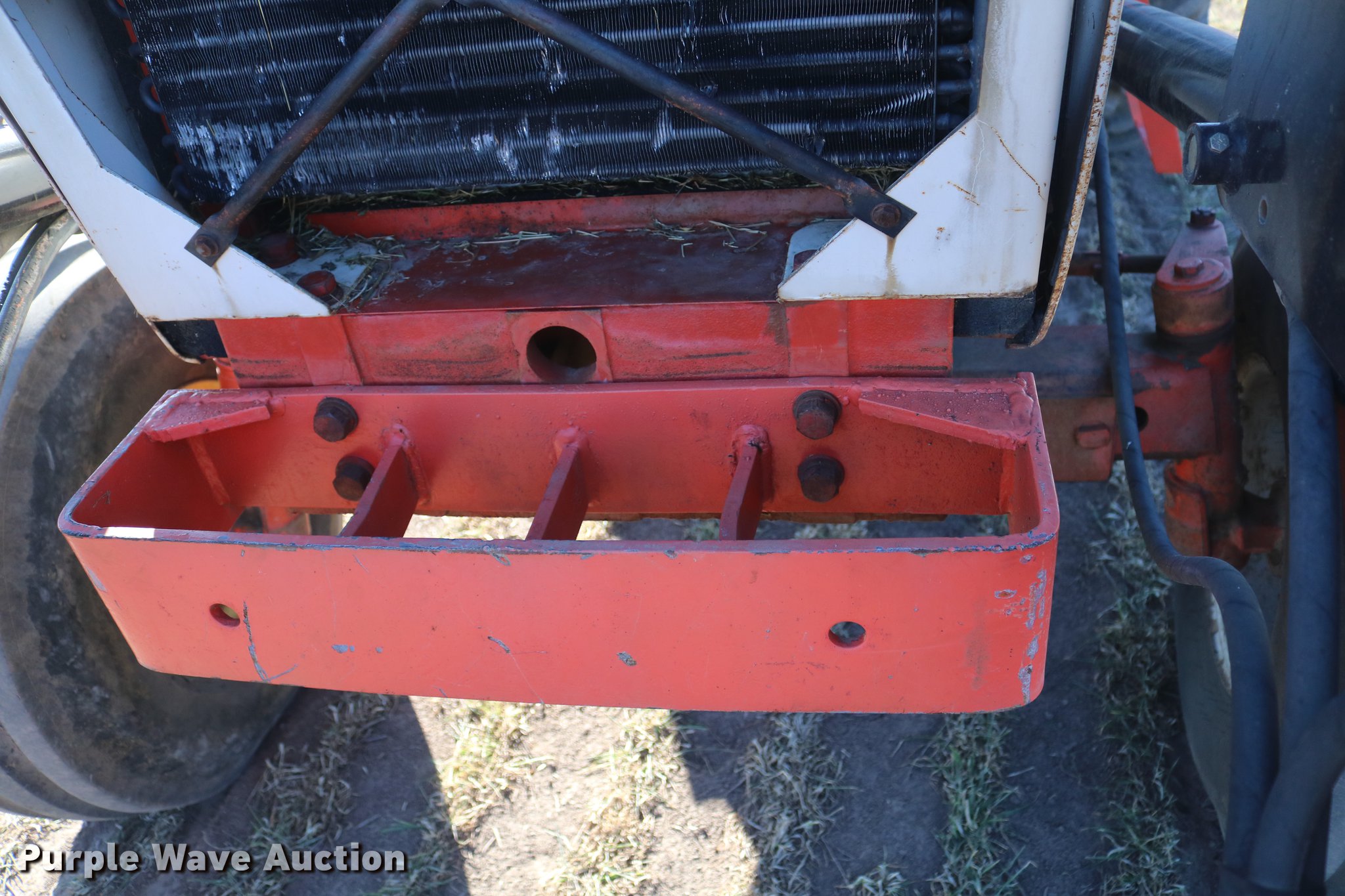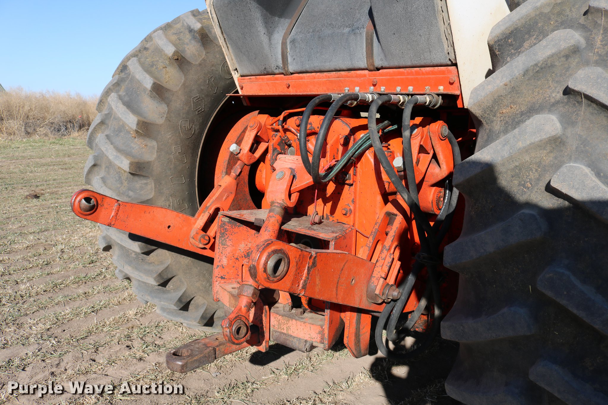 Purple Wave is selling a used Tractor in Kansas. This item is a 1975 Case 1370 tractor with the following: 531 hours on meter, J.I. Case 504BDT 8.3L six cylinder turbo diesel engine, Partial powershift transmission, 12F-3R gears, AC and heat, Tilt steering wheel, AM/FM, Suspension seat, K/D 5500 loader, 84"W grapple bucket, Bale spear, Quick attach, Joystick controls, 68.5"W carriage, Serial 55-2373, Three point, Top link, 540 PTO, (2) rear hydraulic remote sets, (2) wheel weights, 105" wheelbase, 14L-16.1 front tires, Serial 8775454