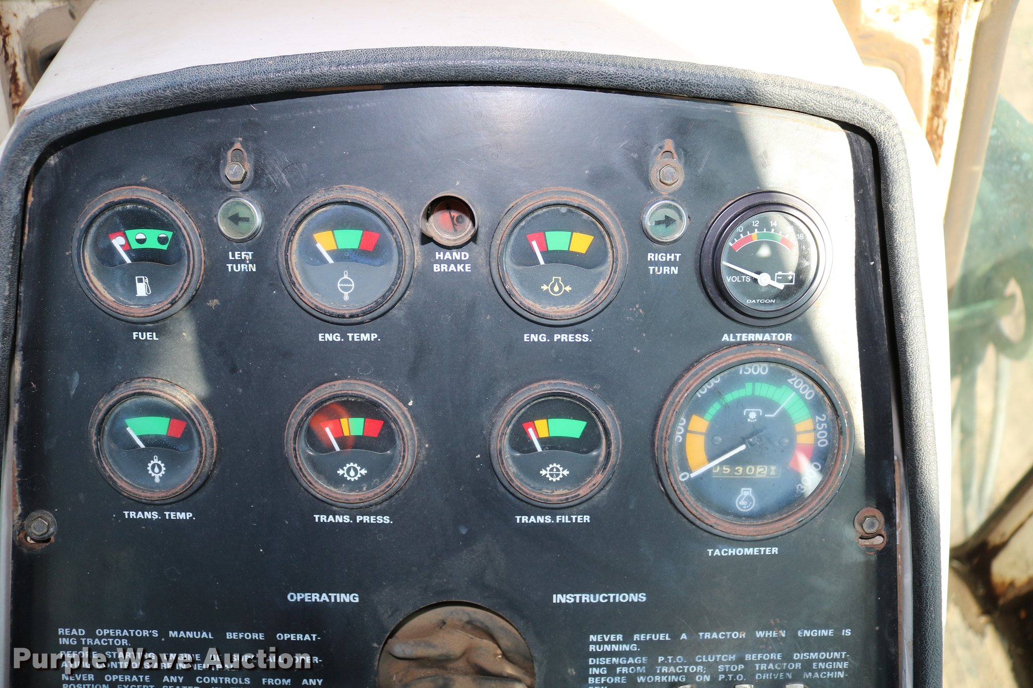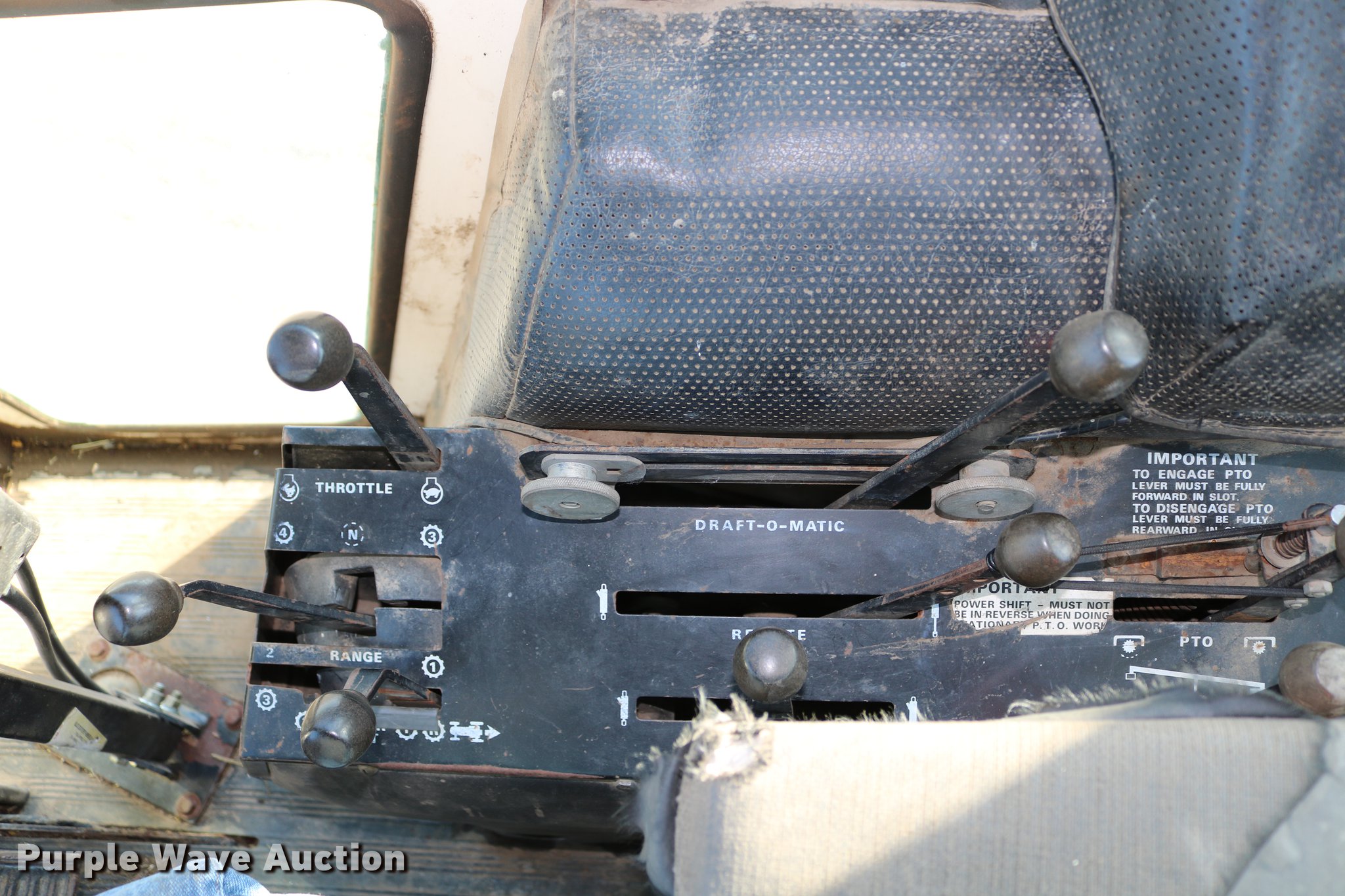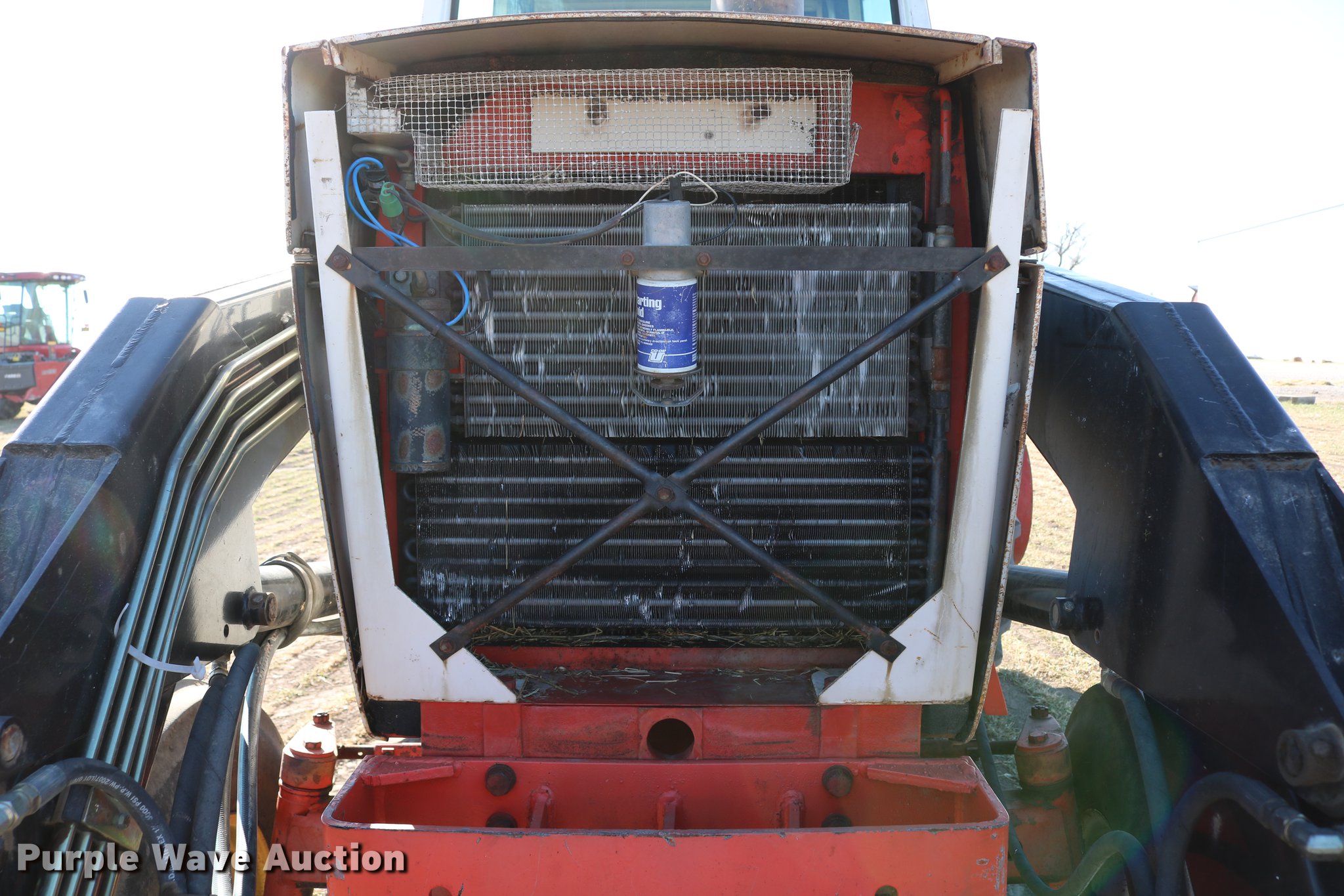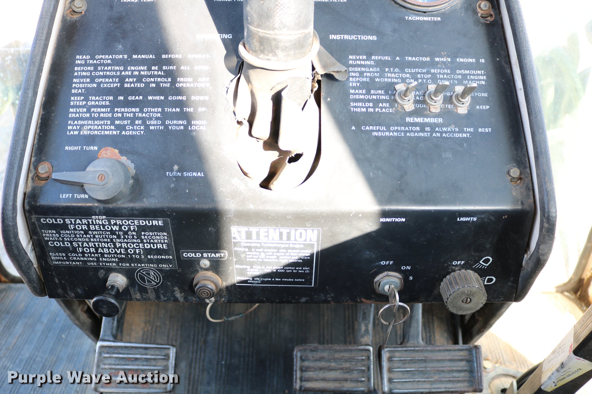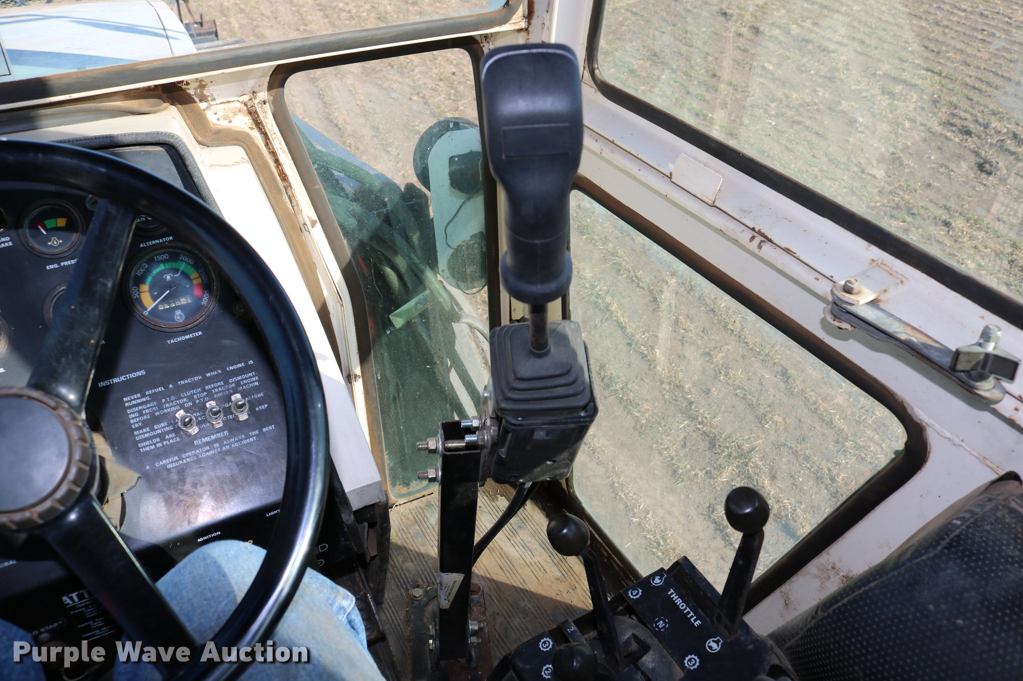 Purple Wave is selling a used Tractor in Kansas. This item is a 1975 Case 1370 tractor with the following: 531 hours on meter, J.I. Case 504BDT 8.3L six cylinder turbo diesel engine, Partial powershift transmission, 12F-3R gears, AC and heat, Tilt steering wheel, AM/FM, Suspension seat, K/D 5500 loader, 84"W grapple bucket, Bale spear, Quick attach, Joystick controls, 68.5"W carriage, Serial 55-2373, Three point, Top link, 540 PTO, (2) rear hydraulic remote sets, (2) wheel weights, 105" wheelbase, 14L-16.1 front tires, Serial 8775454